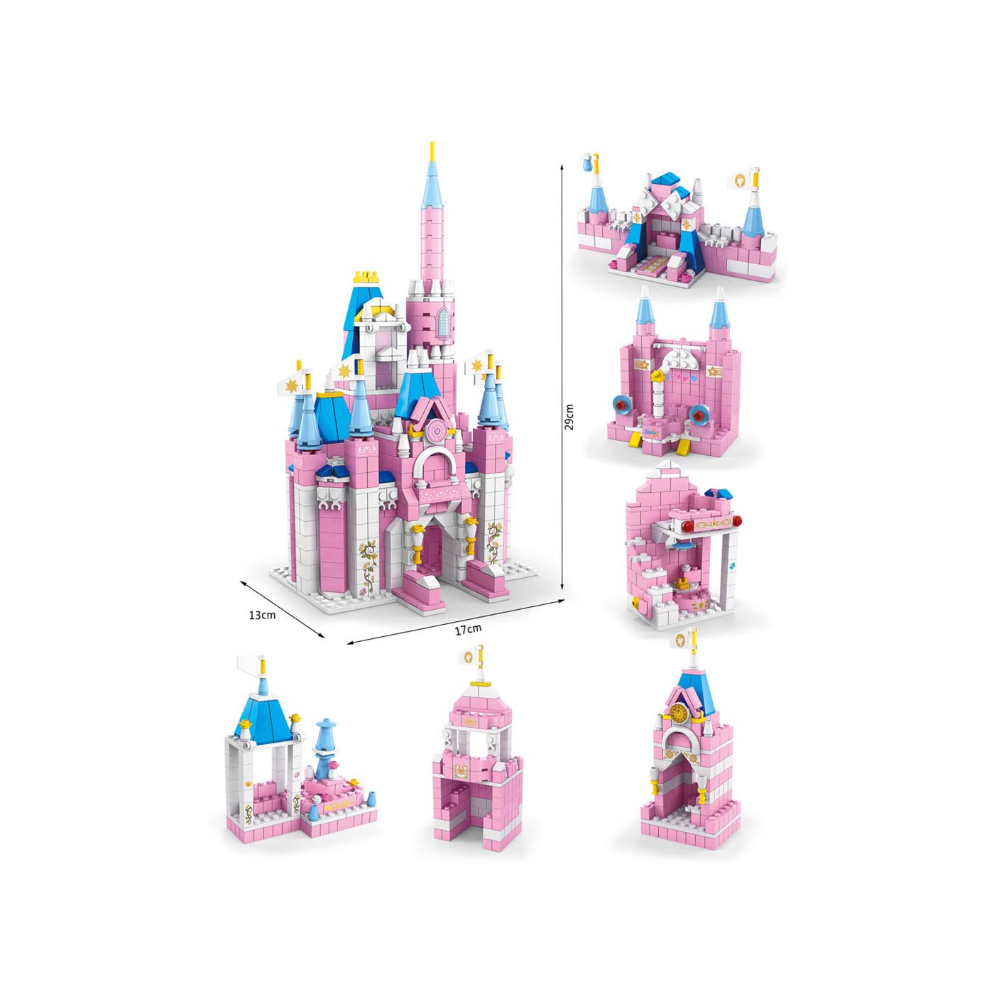 Vysokokvalitné stavebné kocky pre deti od šiestich rokov. Sada obsahuje 1 000 dielikov, ktoré vám umožnia postaviť veľký ružový princeznovský hrad alebo šesť malých hradov. Táto úžasná sada určite upúta pozornosť svojimi detailmi. Zostavený hrad sa dá použiť ako hračka alebo ako dekorácia v detskej izbe.