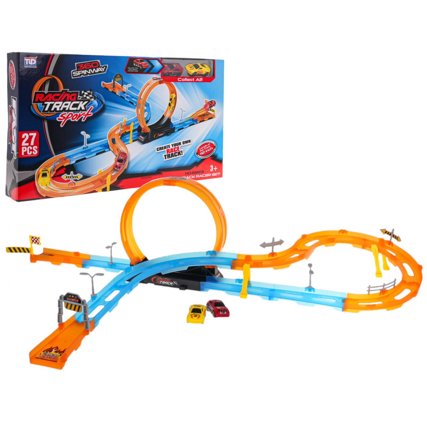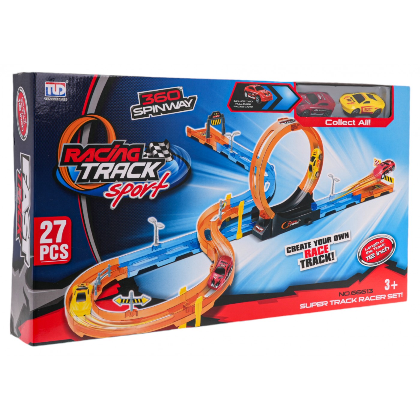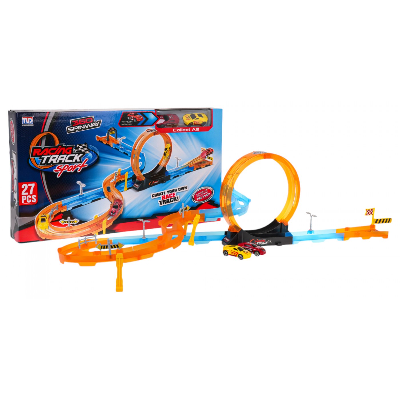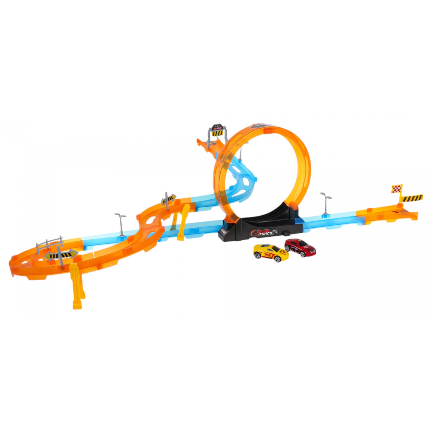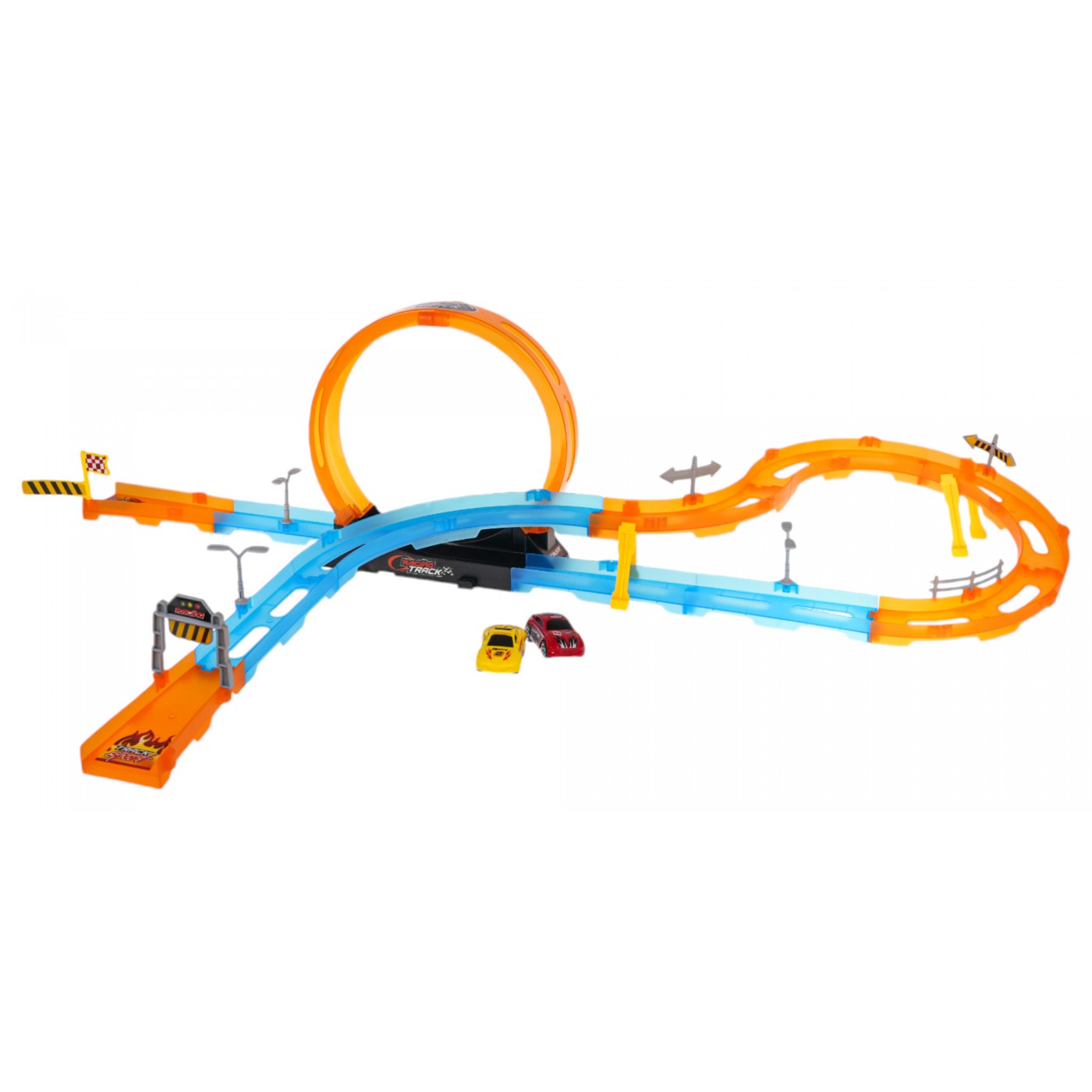 Veľká extrémna pretekárska dráha s ostrými zákrutami, slučkami a dvoma autíčkami v cene, vhodná pre deti od 3 rokov. Súprava pozostáva z 27 prvkov pre vlastnú montáž. Trať obsahuje rovné úseky, ostré zákruty so zvodidlami proti vypadnutiu vozidla z trate, dve úrovne a 360-stupňovú slučku. Vozidlá zahrnuté v súprave majú ťahový pohon späť . |