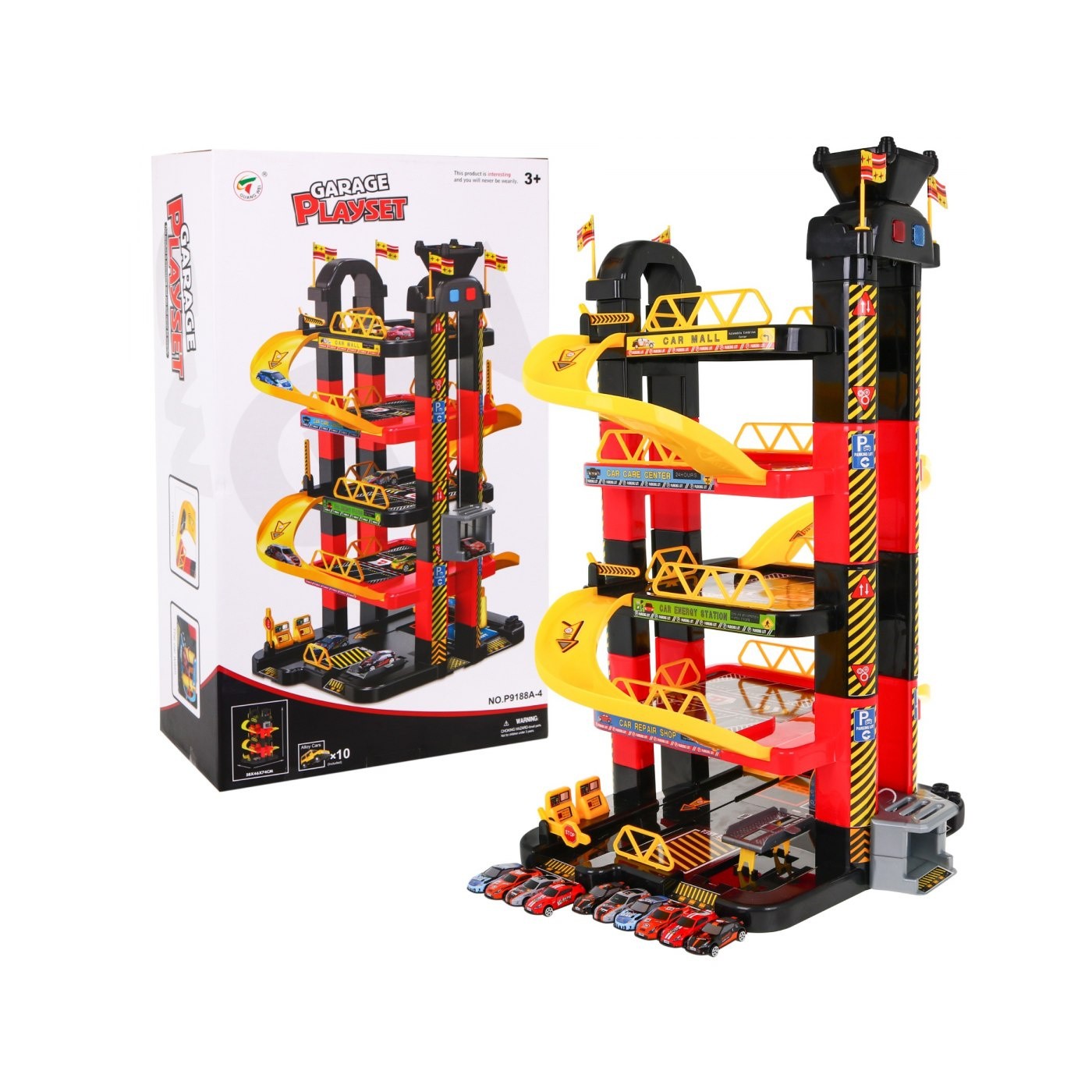5-poschodové parkovisko pre deti 3+ Pohyblivý výťah + 10 autíčok angličákov + Svetlá