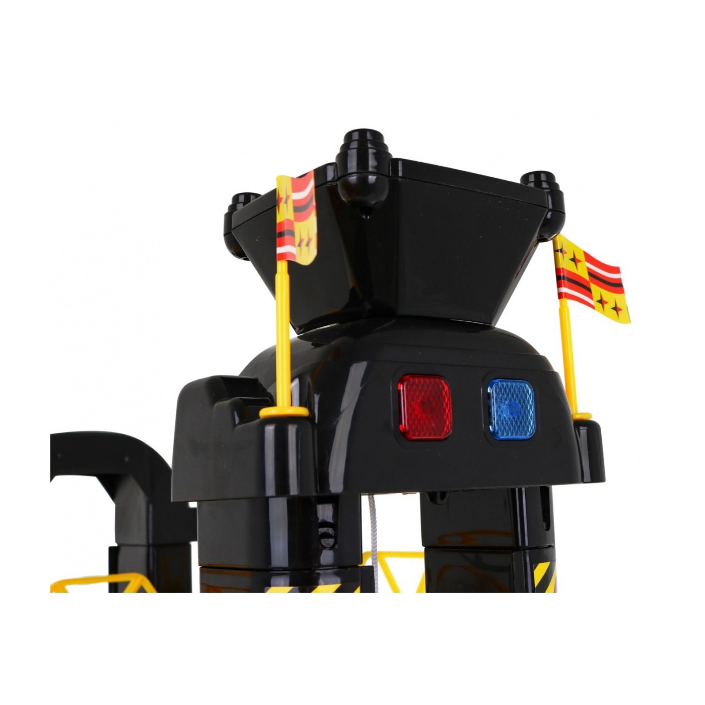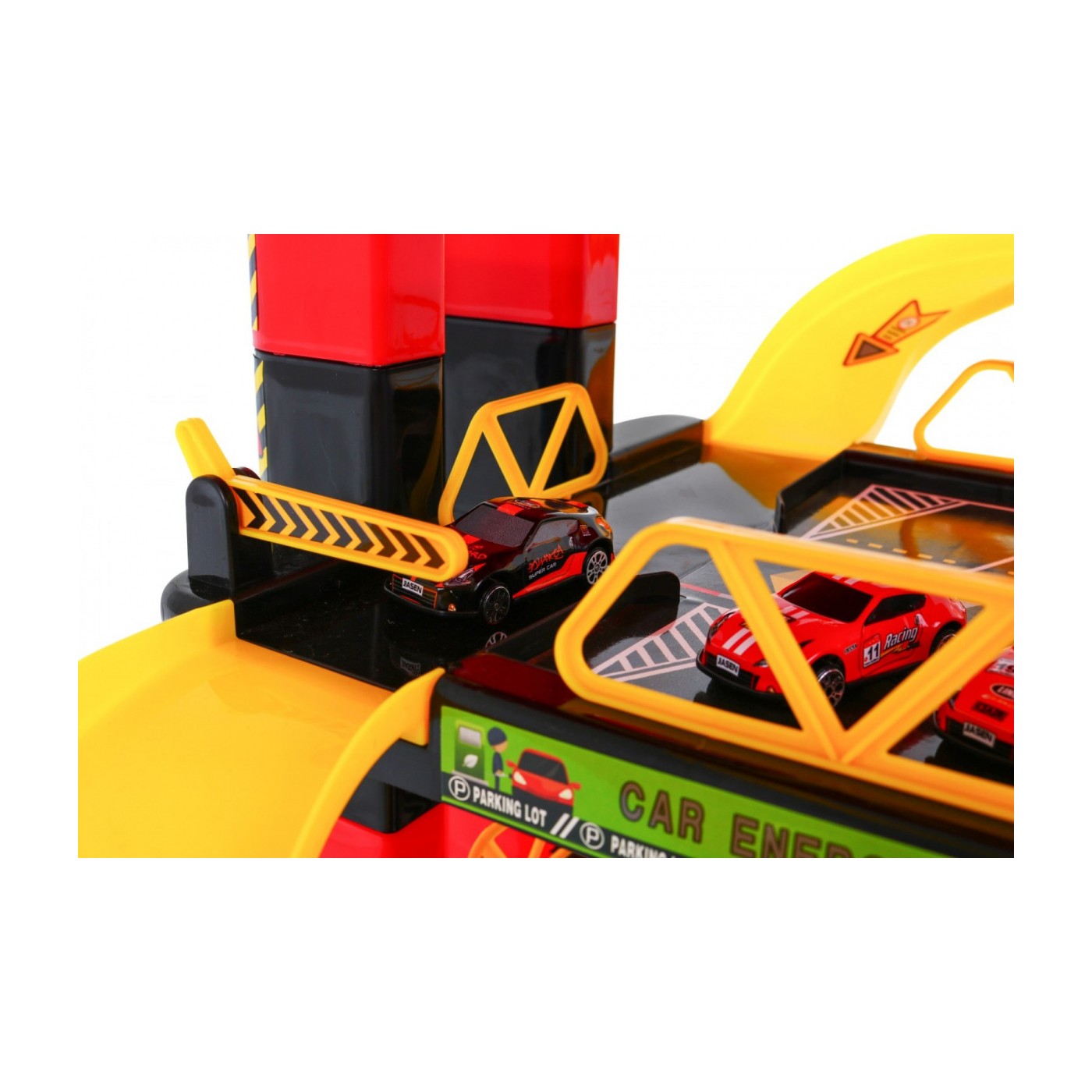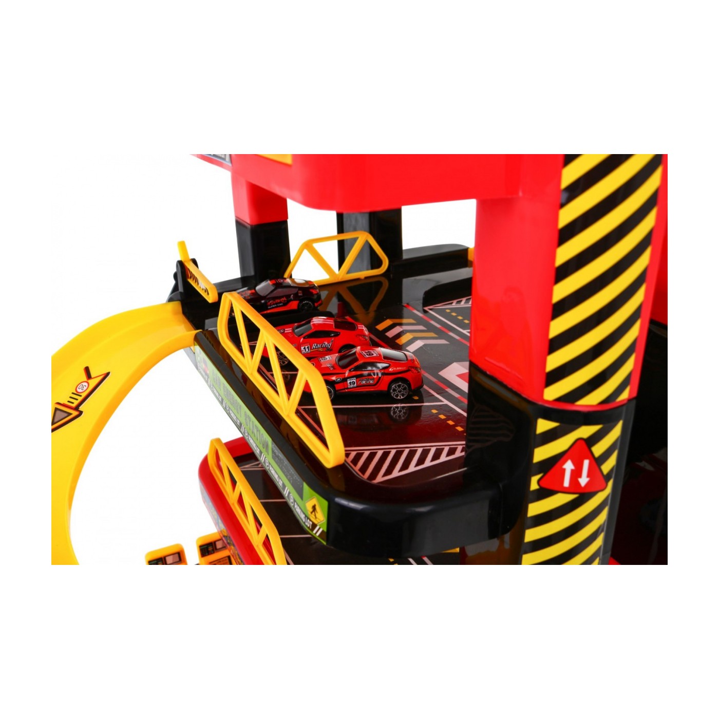 | | Wielopoziomowy duży parking, to zabawka dla dzieci od trzeciego roku życia. Parking składa się z 5 poziomów na które można dostać się za pomocą windy lub zjeżdżalni. Po drodze od poziomu do poziomu maluch napotka wiele atrakcji. Na poziomie dolnym znajduje się myjnia samochodowa, serwis samochodowy oraz stacja paliw. Poziom 2,3,4 i 5 to parkingi samochodowe. Na samej górze jest lądowisko dla helikoptera oraz winda z mrugającymi światełkami, jeżdżąca w górę i w dół, zasilana bateriami typu 3 x AA 1,5V których brak w zestawie. |