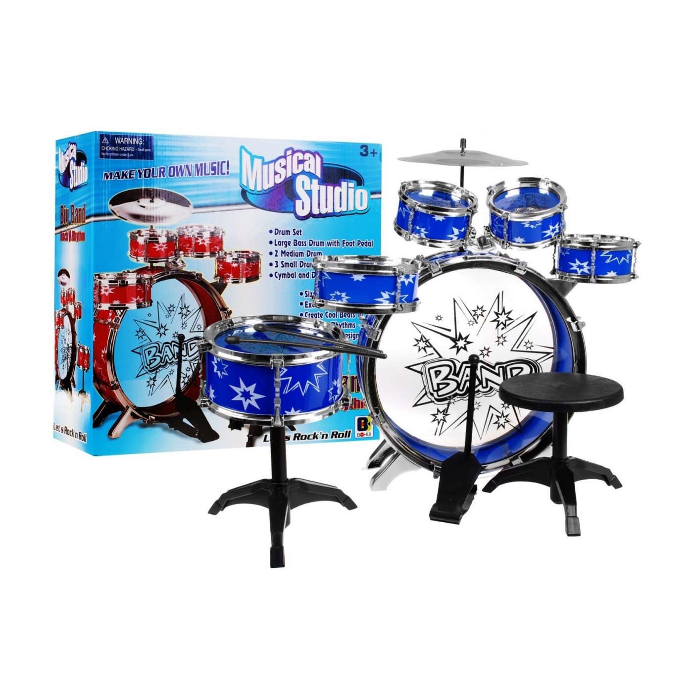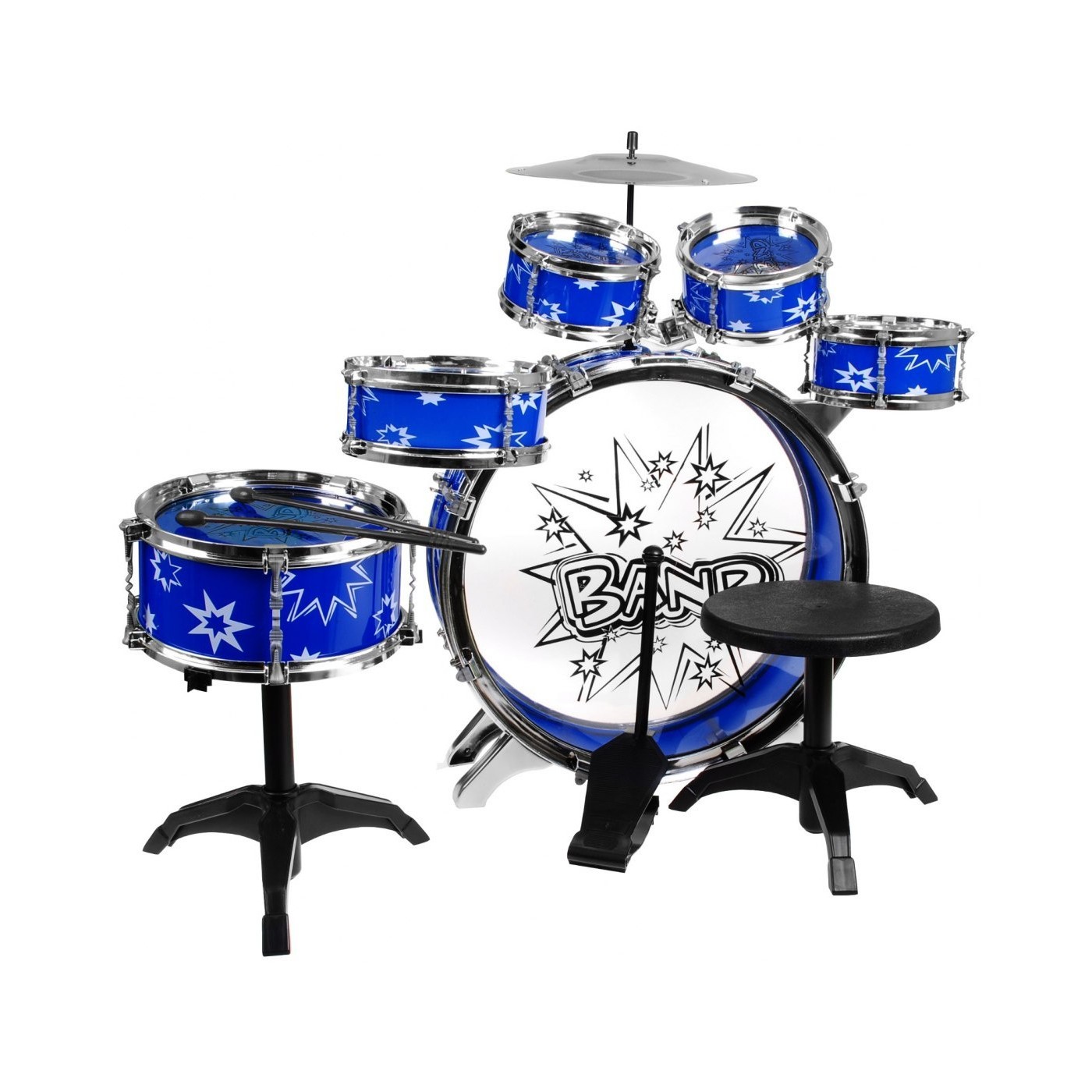 6-bubnová Bicie pre deti 3+ modrá 8 el. + Stolička Tanier 2 Palice