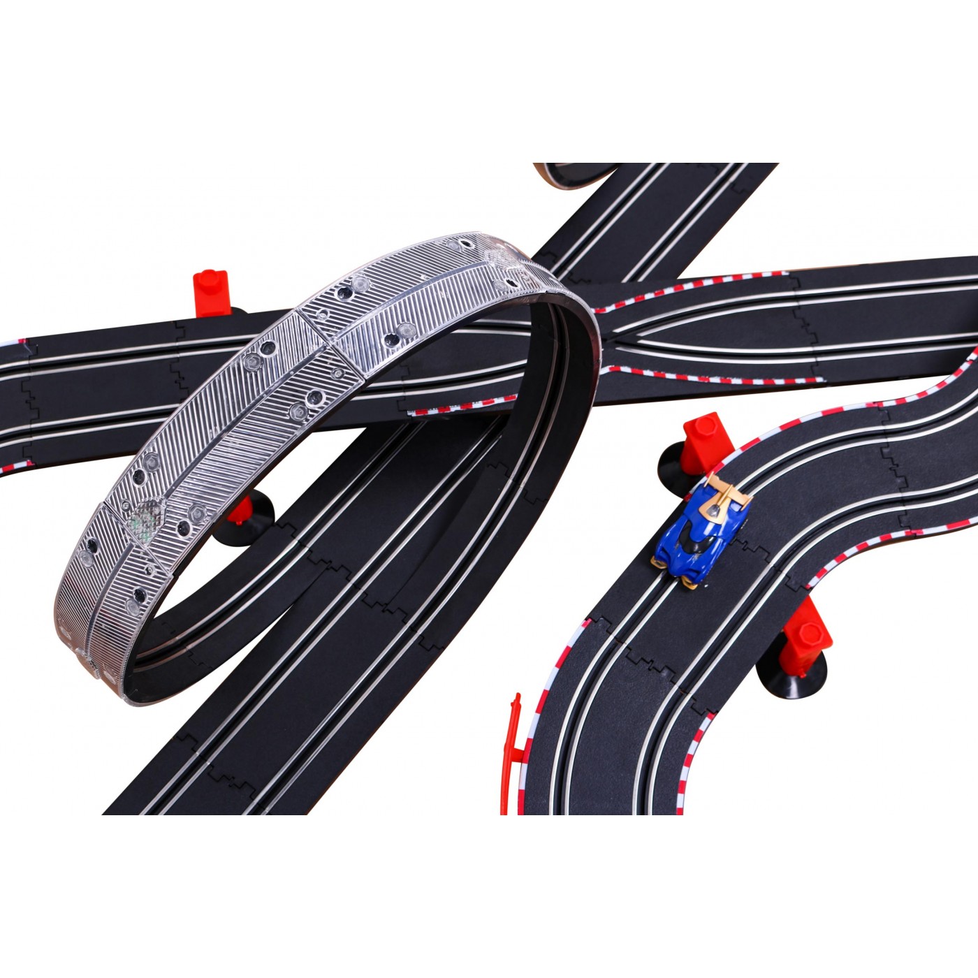 | | Poszczególne elementy konstrukcyjne pozwolą zbudować tor z ostrymi zakrętami, spiralami i odcinkami prostymi, a wszystko po to, aby maksymalnie uatrakcyjnić zabawę i dodać całej zabawie emocji. Ten niepowtarzalny zestaw to idealna zabawka dla małego amatora wyścigów samochodowych. Tor posiada 2 tryby szybkości – szybki / wolny oraz licznik przebytych okrążeń. Żywa kolorystyka, podświetlenie, dokładne i bardzo staranne wykonanie oraz dbałość o szczegóły na pewno przyciągnie uwagę dziecka na dłużej i nie pozwoli mu się nudzić. |