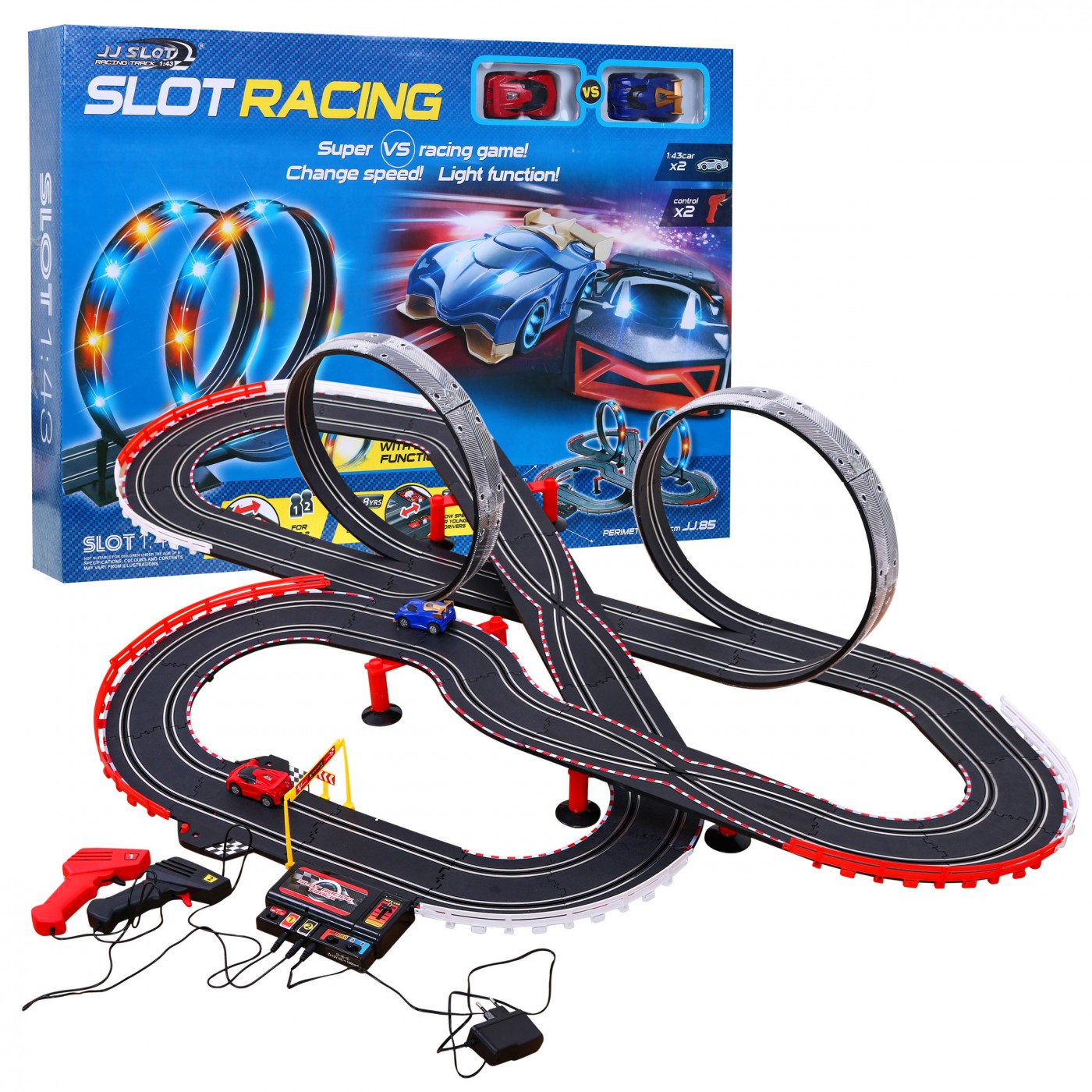 7-metrová pretekárska dráha pre deti 3-8 + Funkcia zmeny rýchlosti + 2 autíčka + Svieti