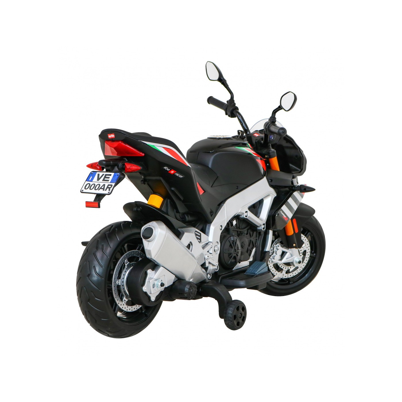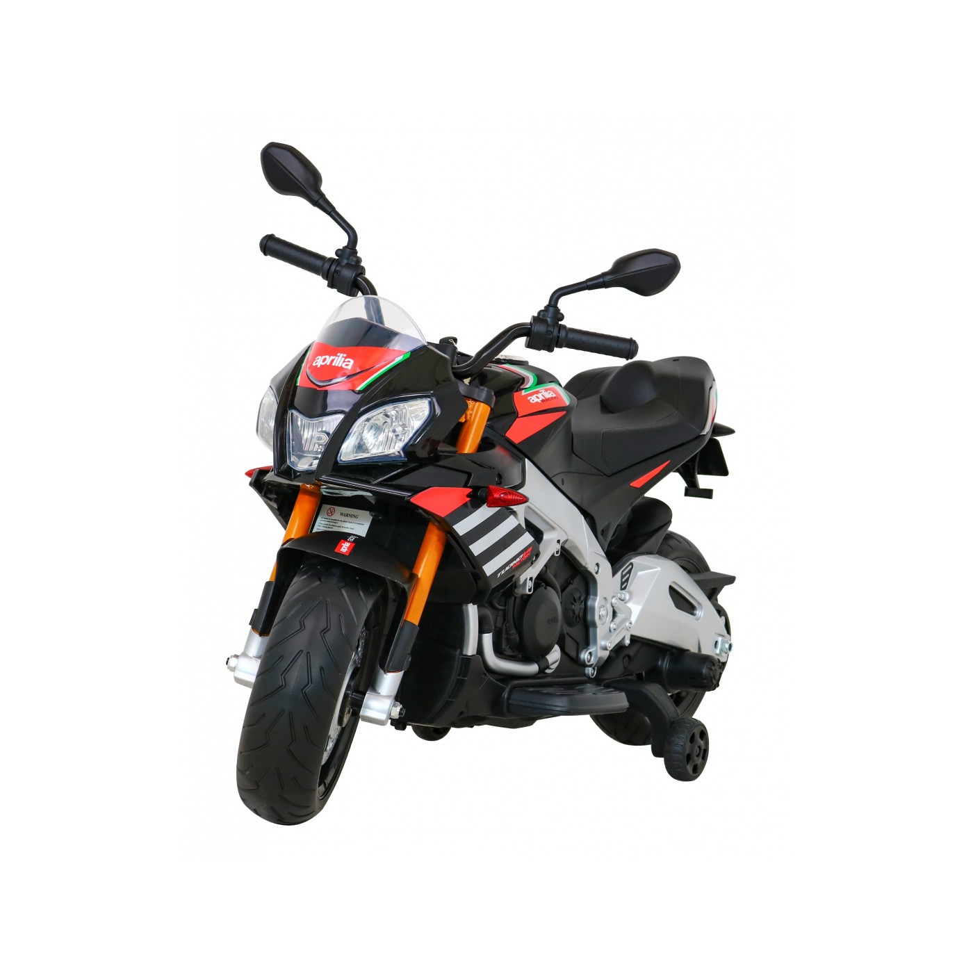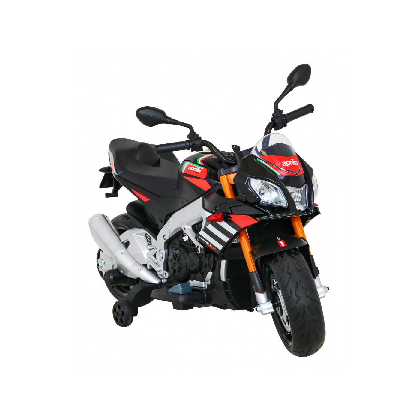 Aprilia Tuono V4 Motorka na batériu pre deti Čierny + Panel MP3 + Pomocné kolieska + Pomalý štart