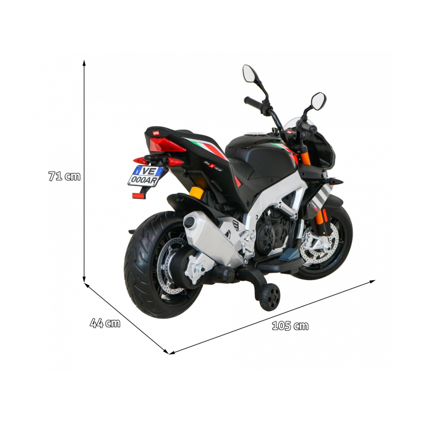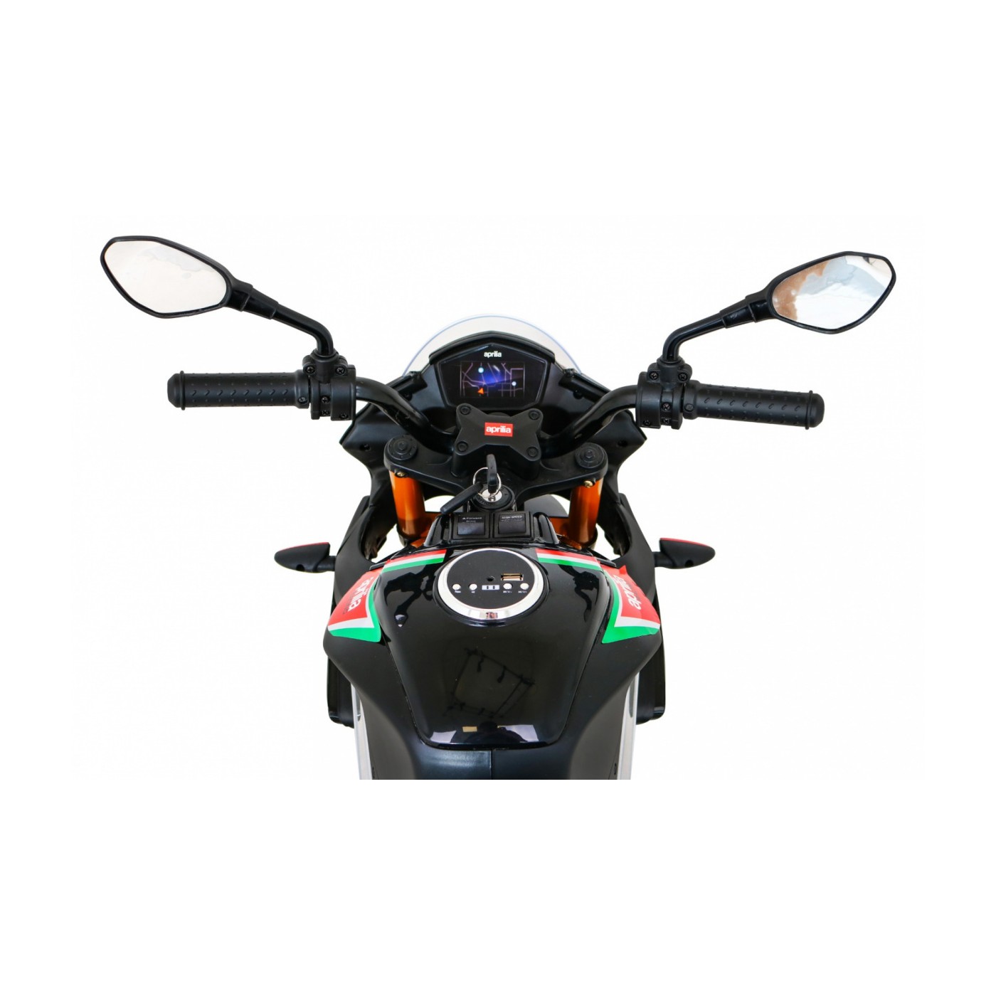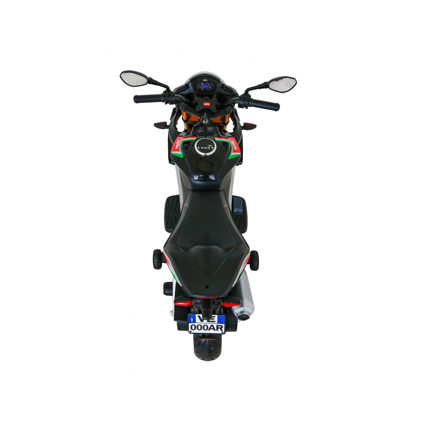 Aprilia Tuono V4 Motorka na batériu pre deti Čierny + Panel MP3 + Pomocné kolieska + Pomalý štart