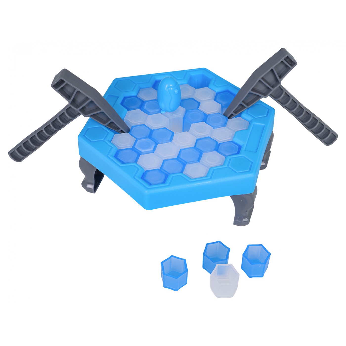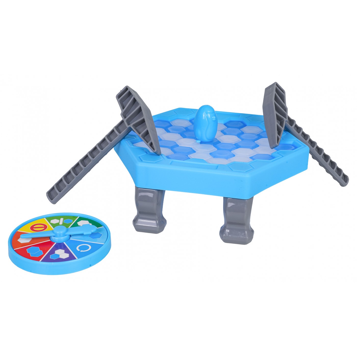 - 2 x kladivo, - figúrka tučniaka, - rotujúci disk, - 19 x bielych kociek ľadu, - 19 x modrých kociek ľadu, - herný stôl. |