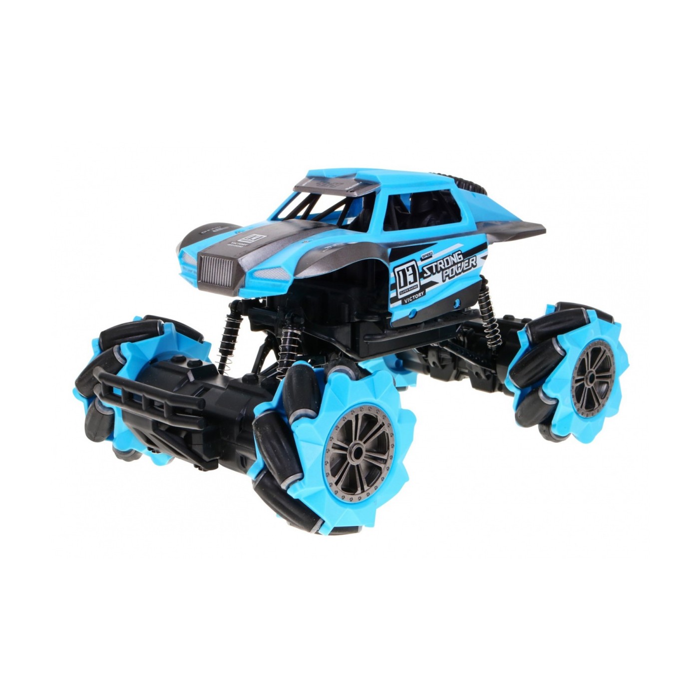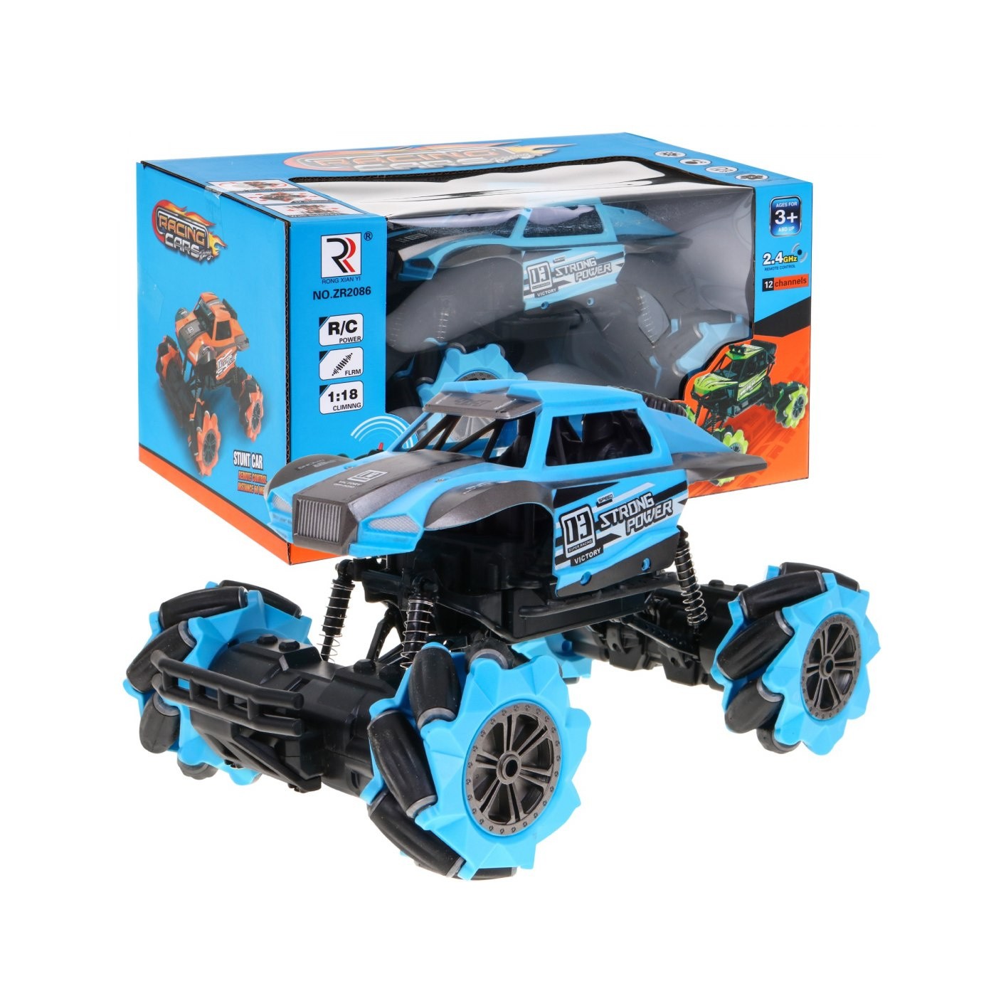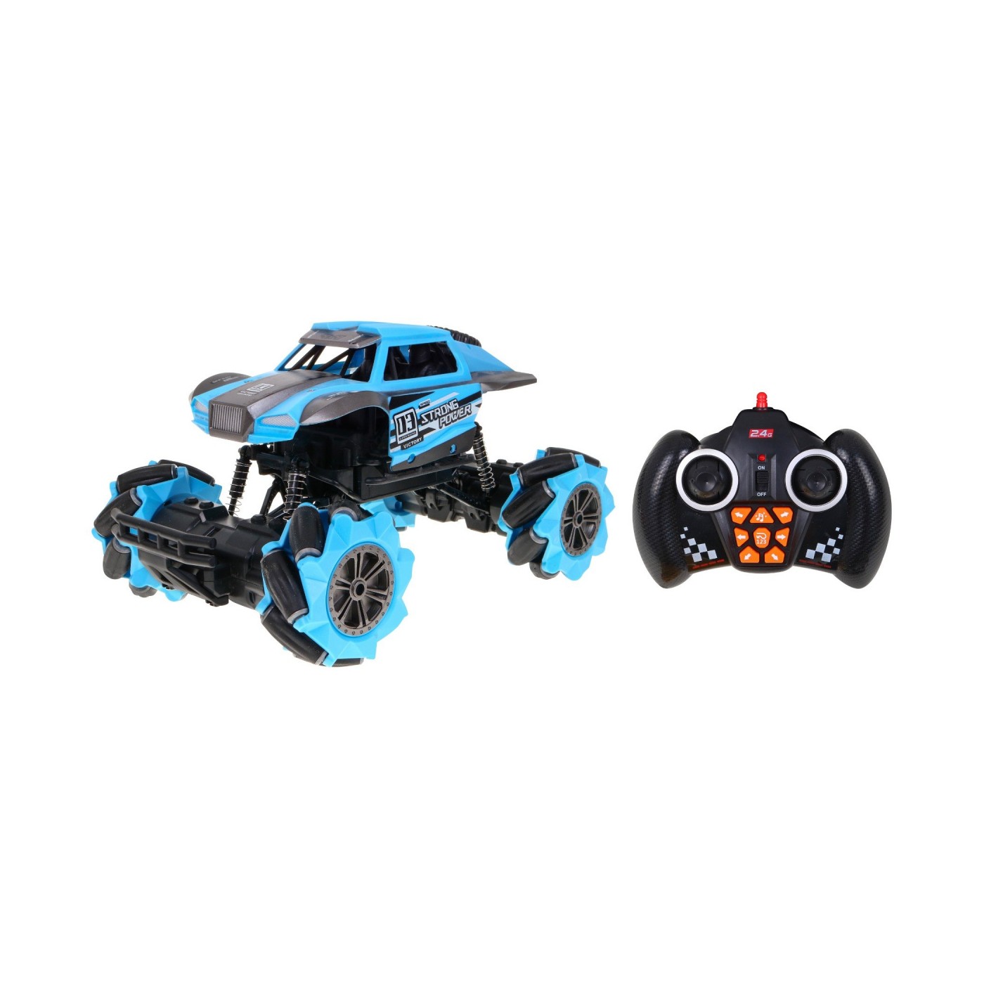 | Pojazd | - skala 1:18, - częstotliwość pracy 2,4GHz, - napęd na cztery koła, - szybki start, - amortyzatory na wszystkich kołach – każde koło ma swój oddzielny amortyzator. - włącznik ON/OFF, - wysoka i wzmocniona jakość plastiku, - jazda przód-tył, - skręty prawo-lewo, - duże zderzaki, chroniące przed uszkodzeniami, - koła z tworzywa nie niszczącego podłoża - jazda w 12 kanałach - wyjątkowa jazda w bok - obrót o 360 stopni |