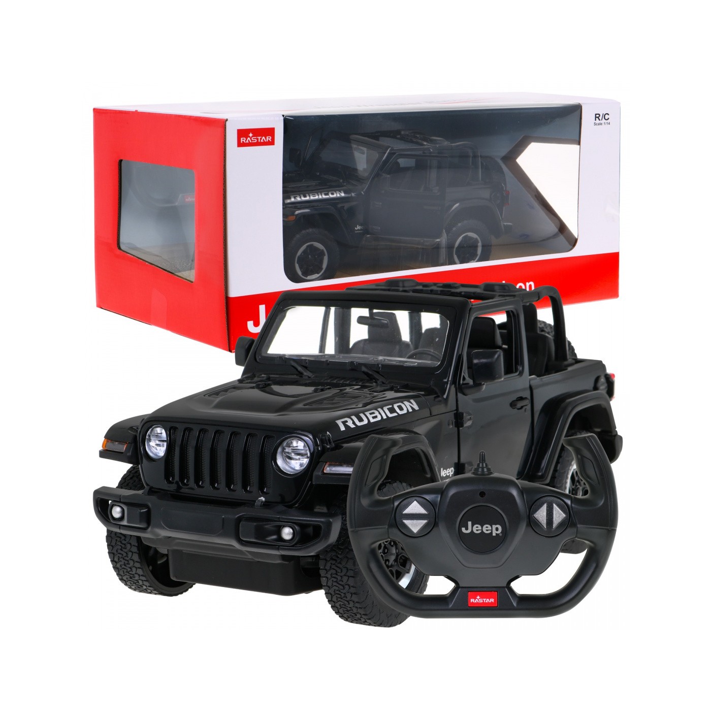 Jeep Wrangler Rubicon čierny RASTAR model 1:14 Diaľkovo ovládané auto + ovládač 2,4 GHz