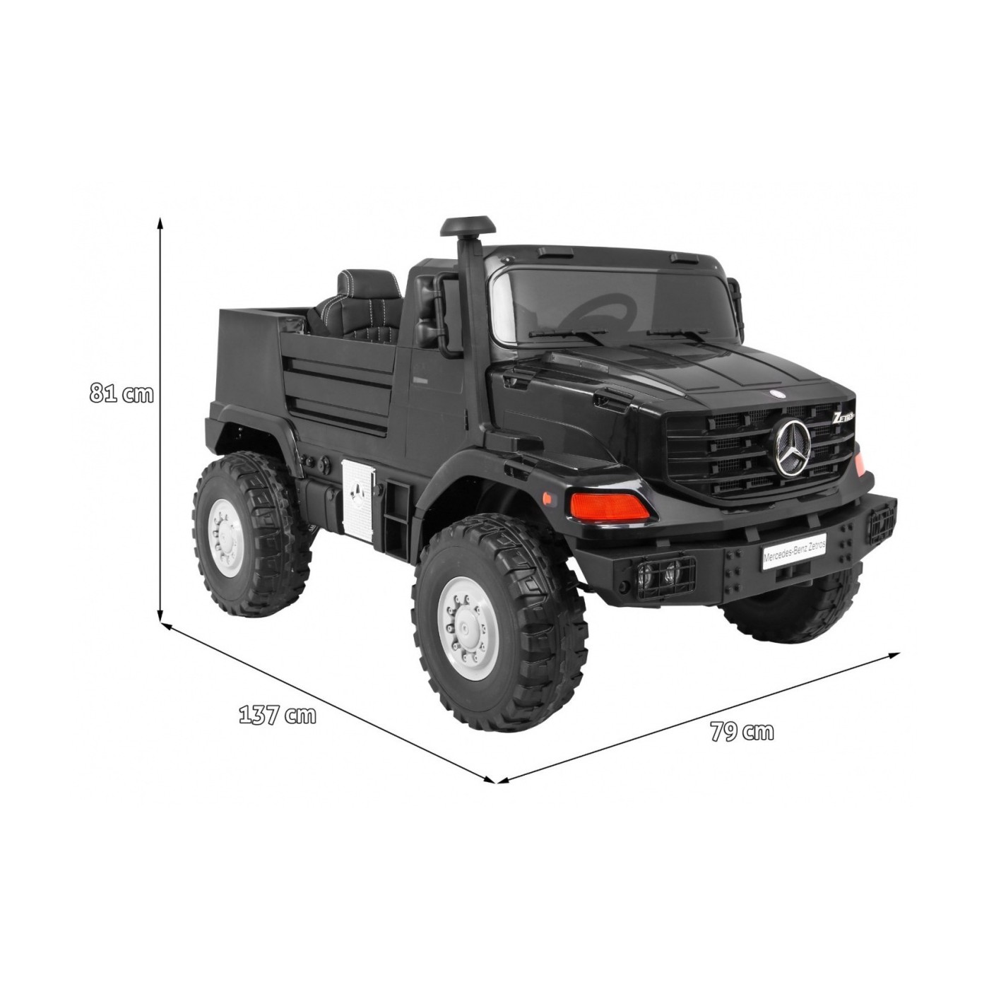 Auto na batériu Mercedes-Benz Zetros pre deti Čierny + 2-miestny + Batožinový priestor + Diaľkové ovládanie