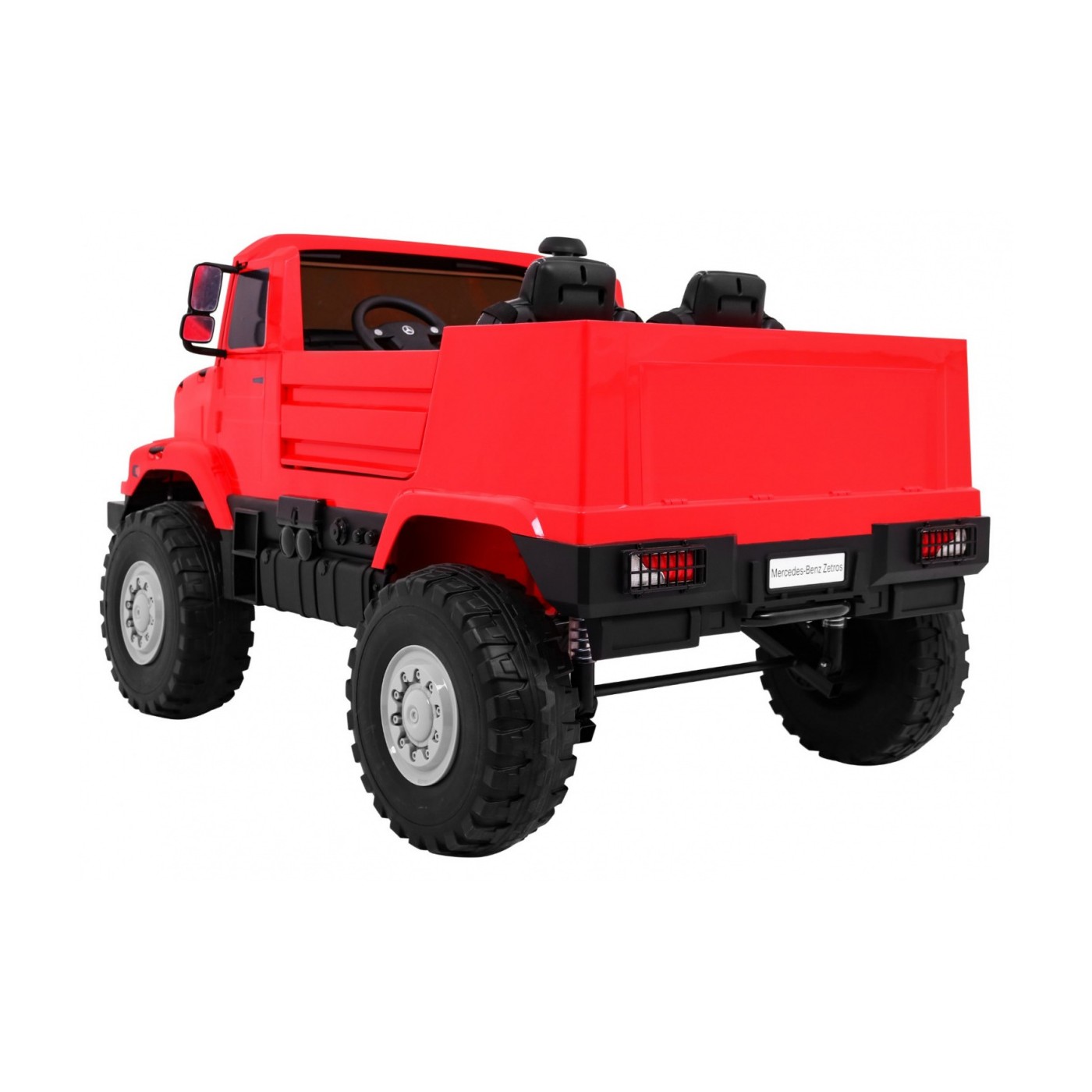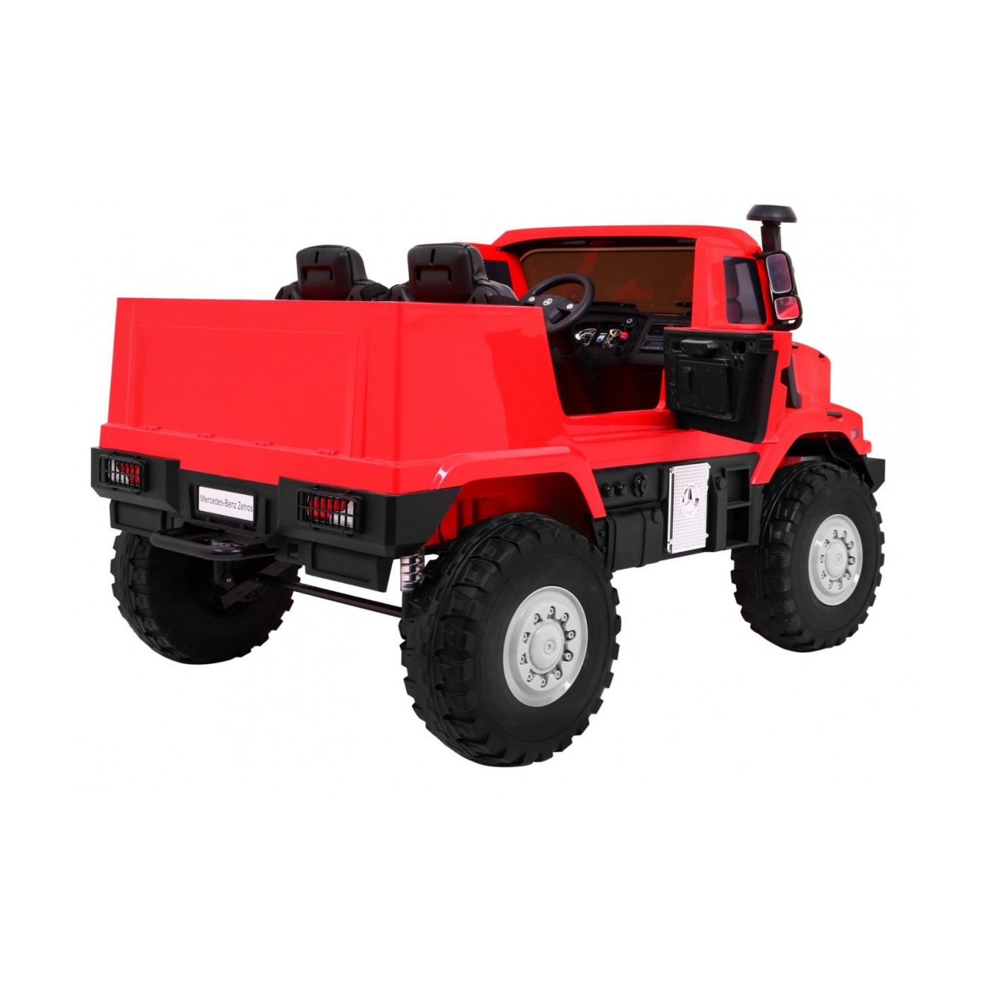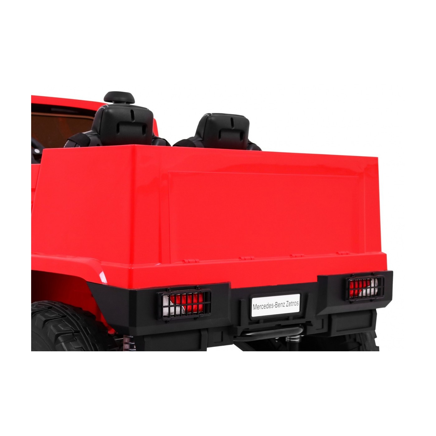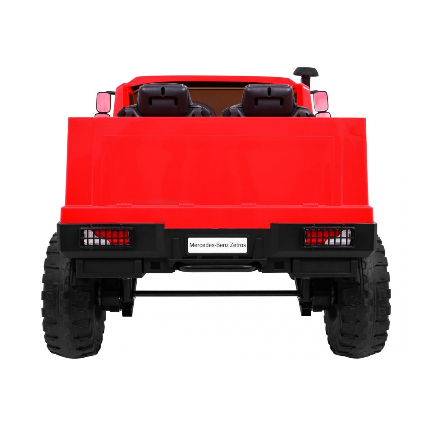 Auto na batériu Mercedes-Benz Zetros pre deti Červený + 2-miestny + Batožinový priestor + Diaľkové ovládanie