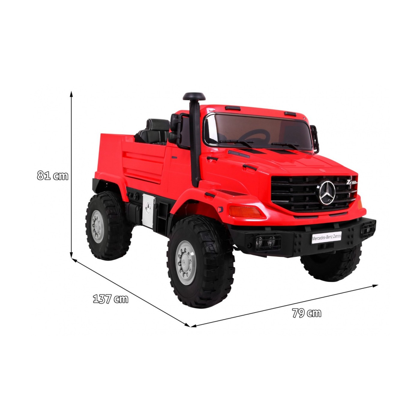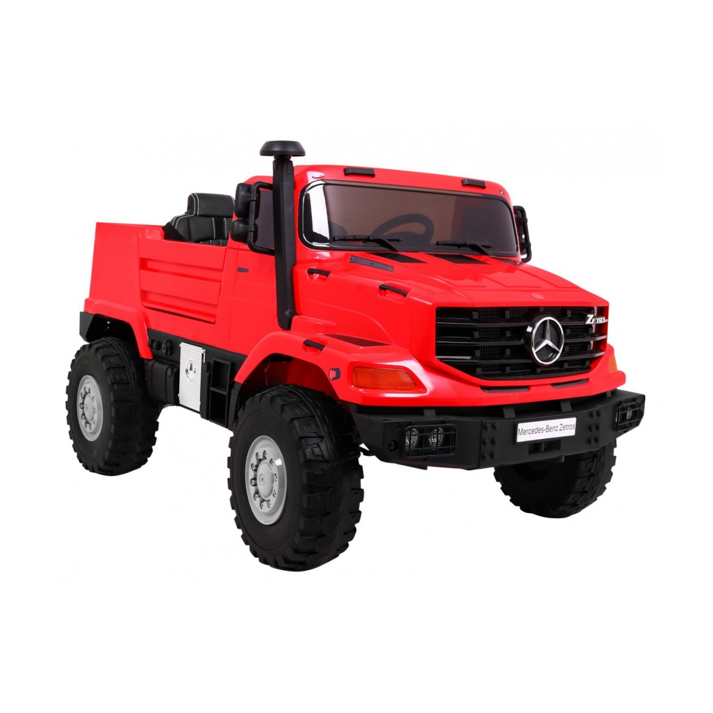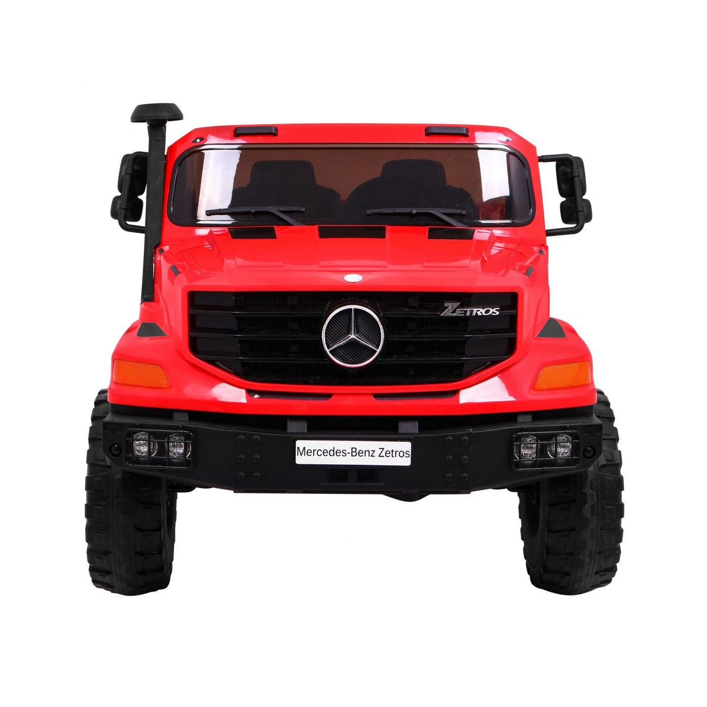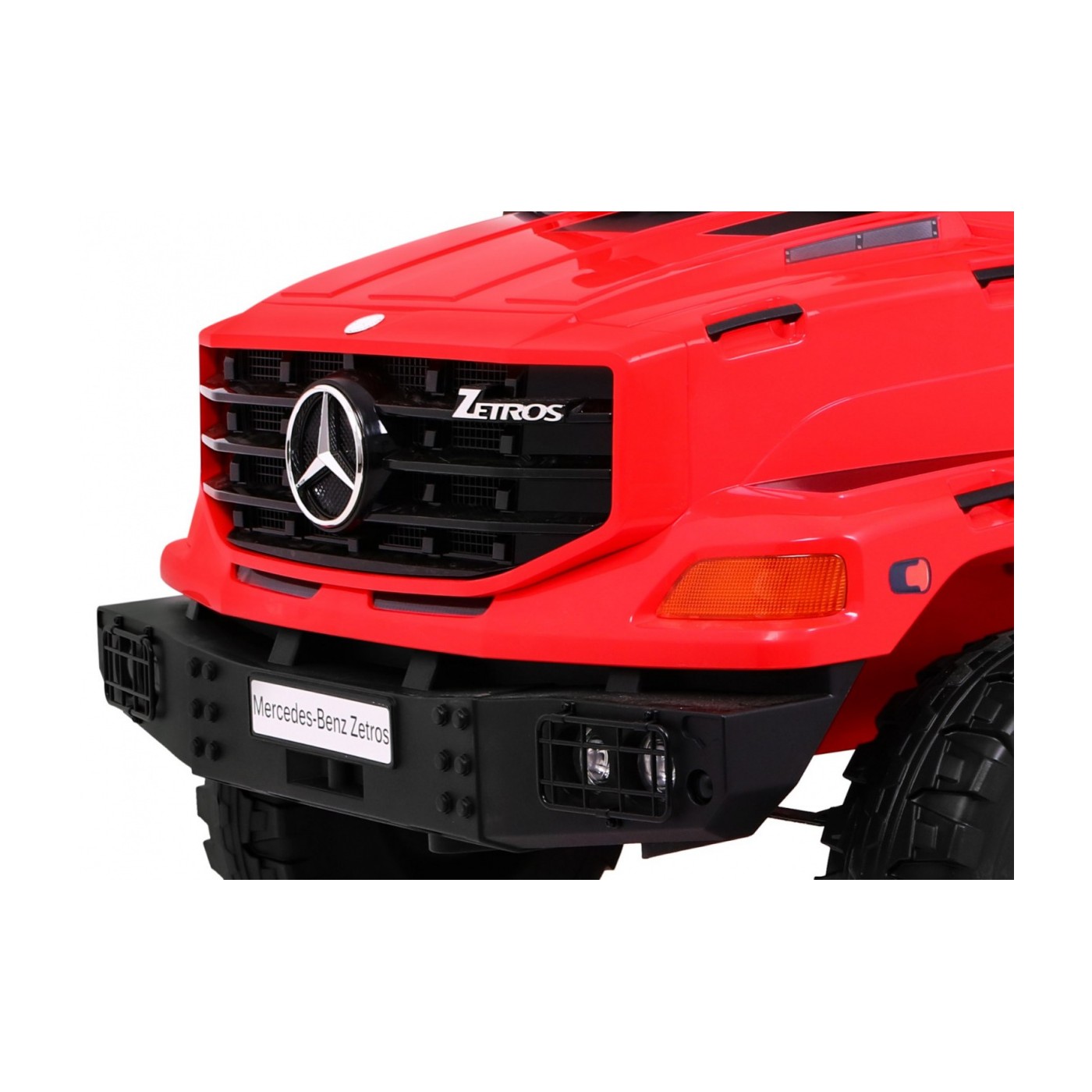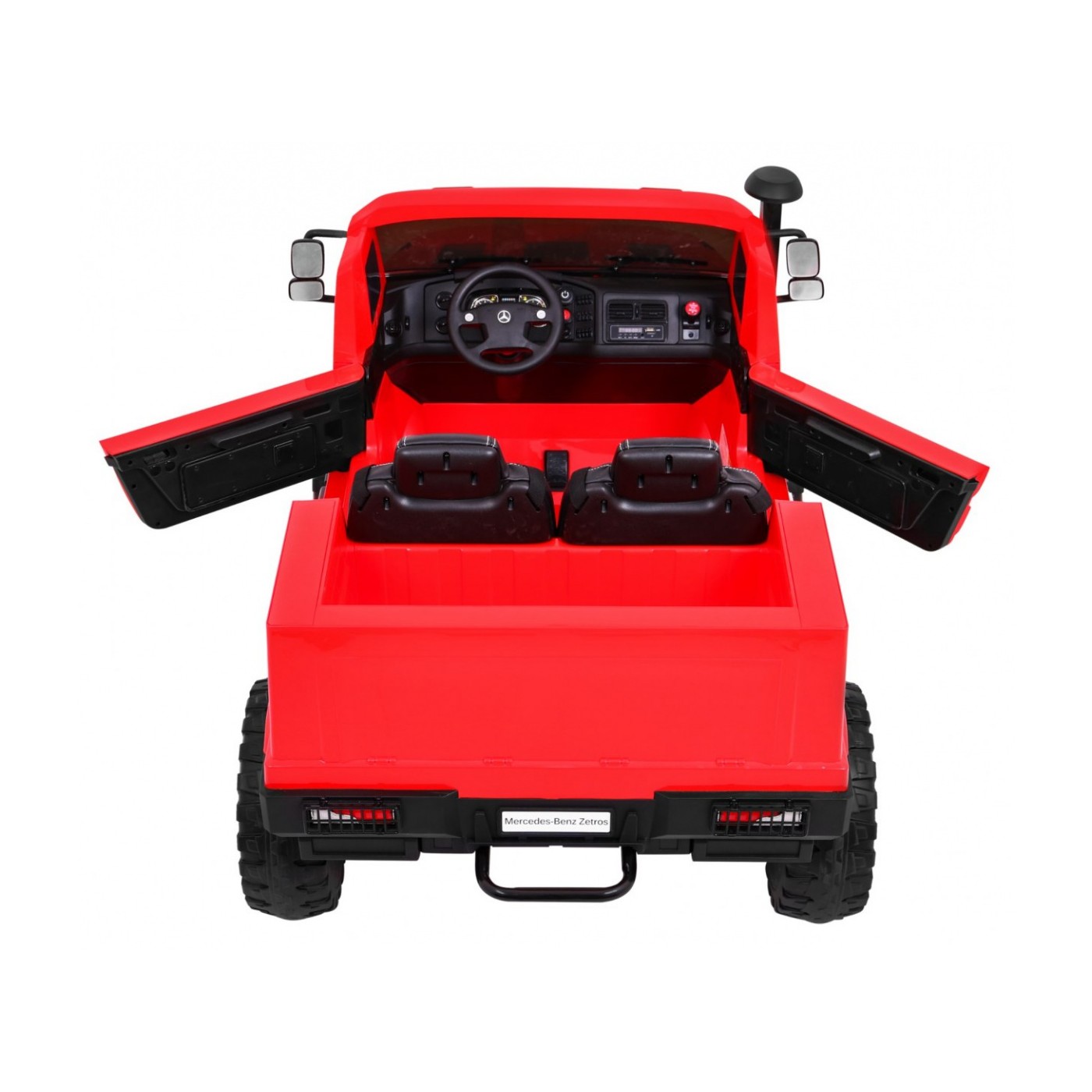 Auto na batériu Mercedes-Benz Zetros pre deti Červený + 2-miestny + Batožinový priestor + Diaľkové ovládanie