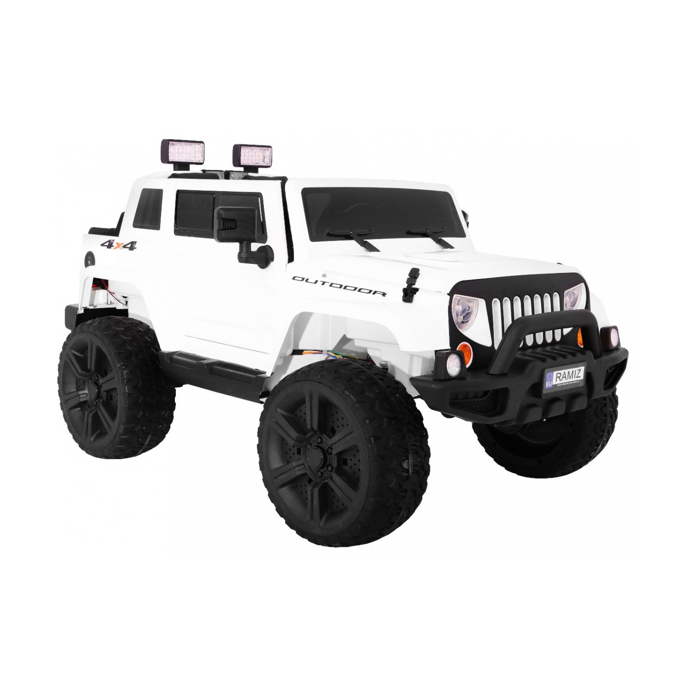 Auto na batériu Mighty Jeep pre deti Biely + 2-miestny + Pohon 4x4 + 2 batožinové priestory