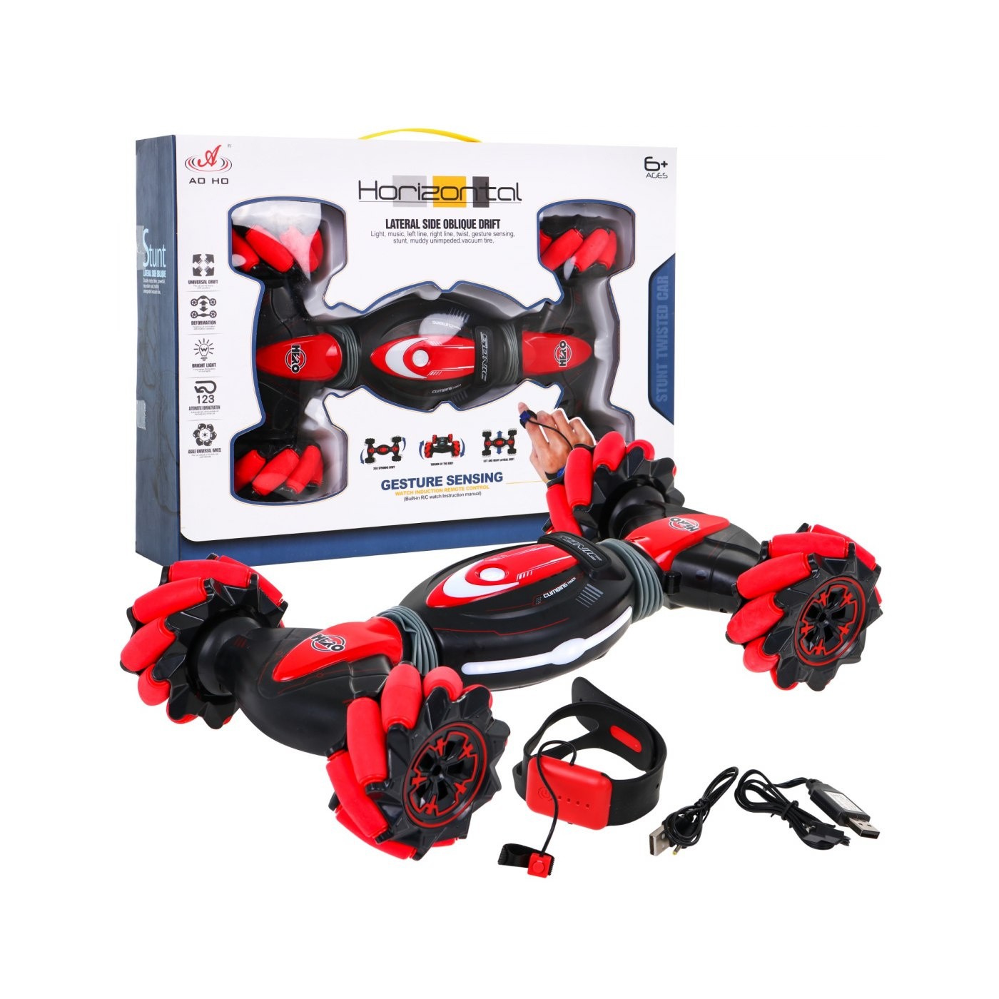 | - pojazd, - panel sterujący znajdujący się na dłoni, - akumulator 7,4V - ładowarka USB do akumulatora w pojeździe i panelu sterującego , - kolorowe opakowanie. | |