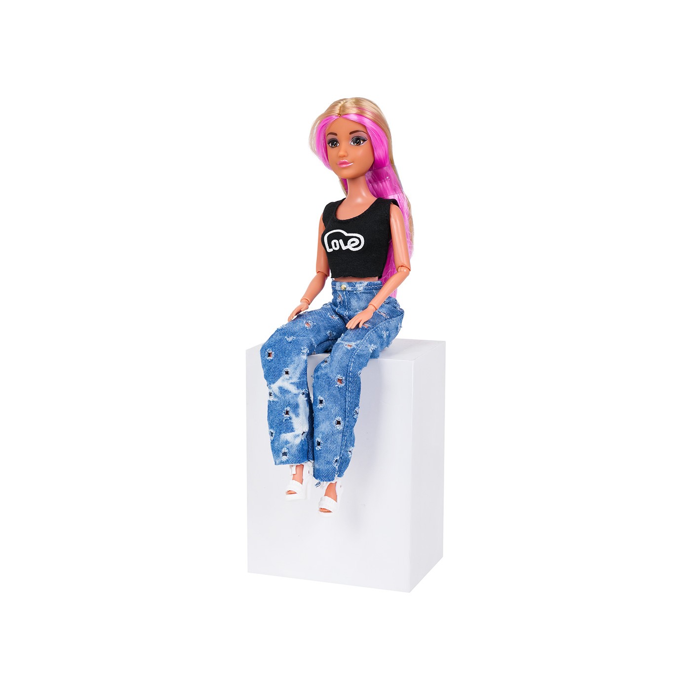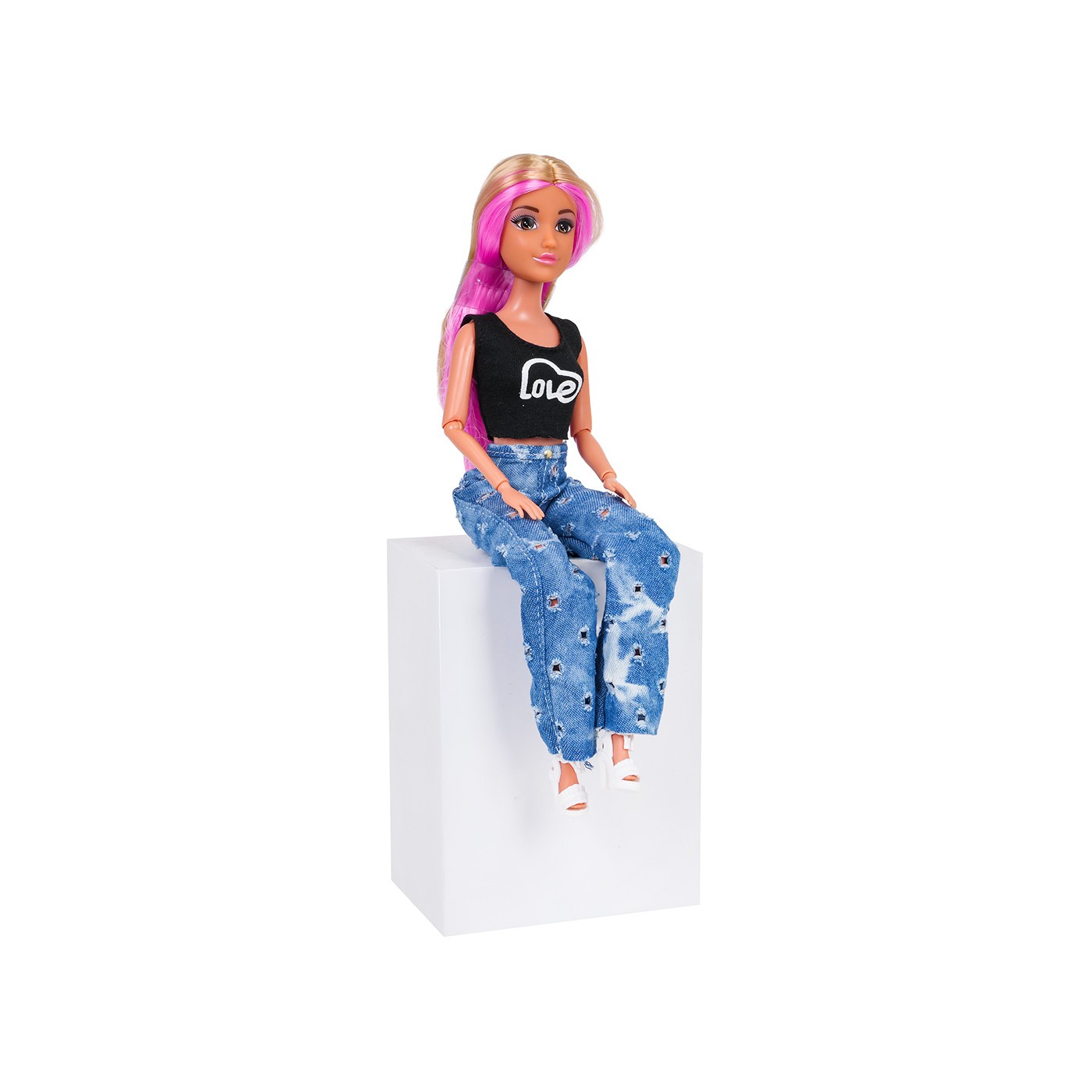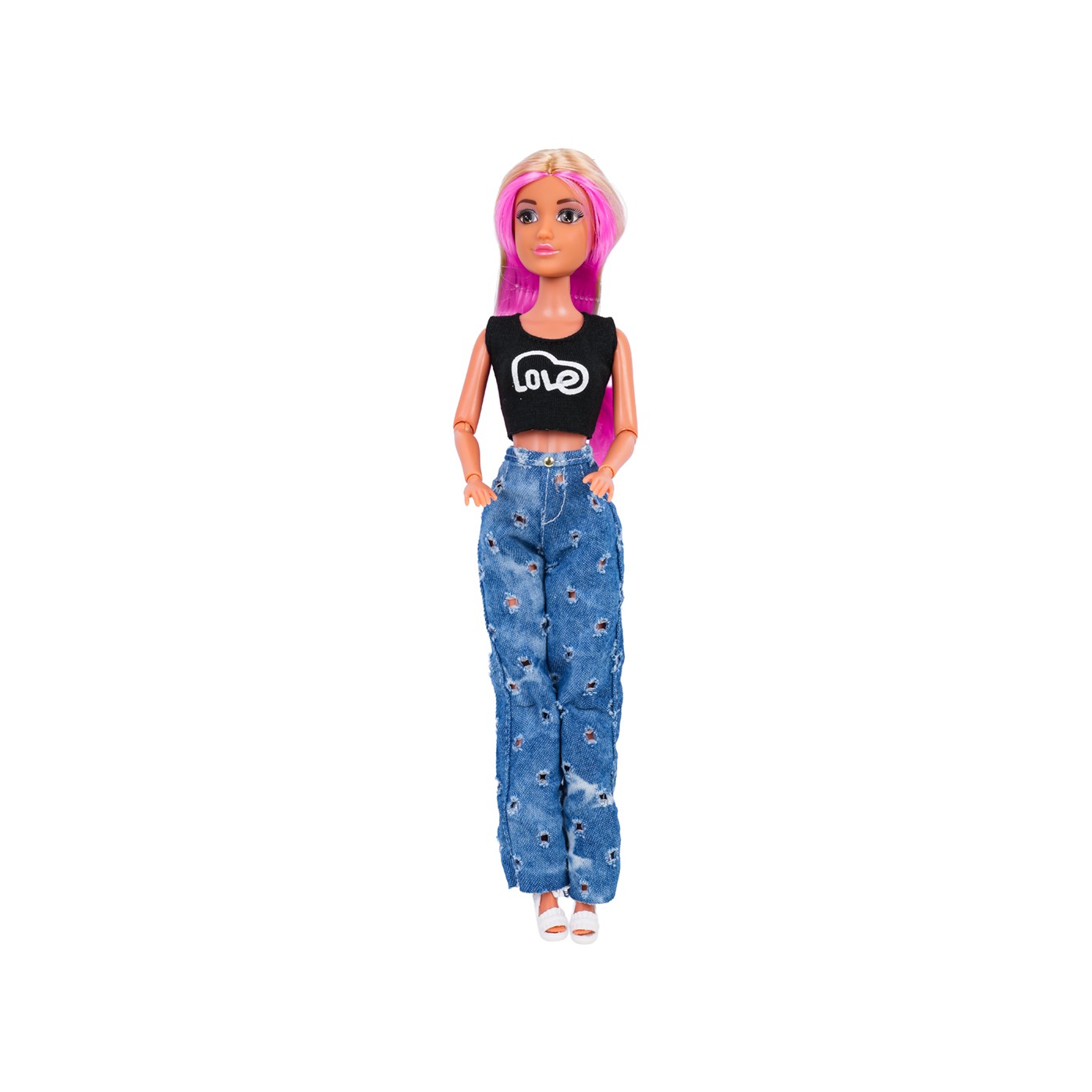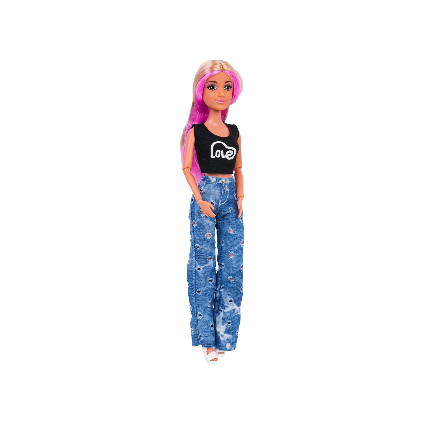 Krásna bábika pre deti od troch rokov. Bábika je bezchybne vyrobená s dôrazom na každý detail a je úplne bezpečná pre deti. Má na sebe blúzku, nohavice a vysoké podpätky. Oblečenie sa dá vyzliecť a bábika sa môže prezliecť do iného oblečenia. Pohyblivé nohy a ruky, ako aj ohybné lakte a kolená, uľahčujú nastavenie rôznych polôh bábiky.