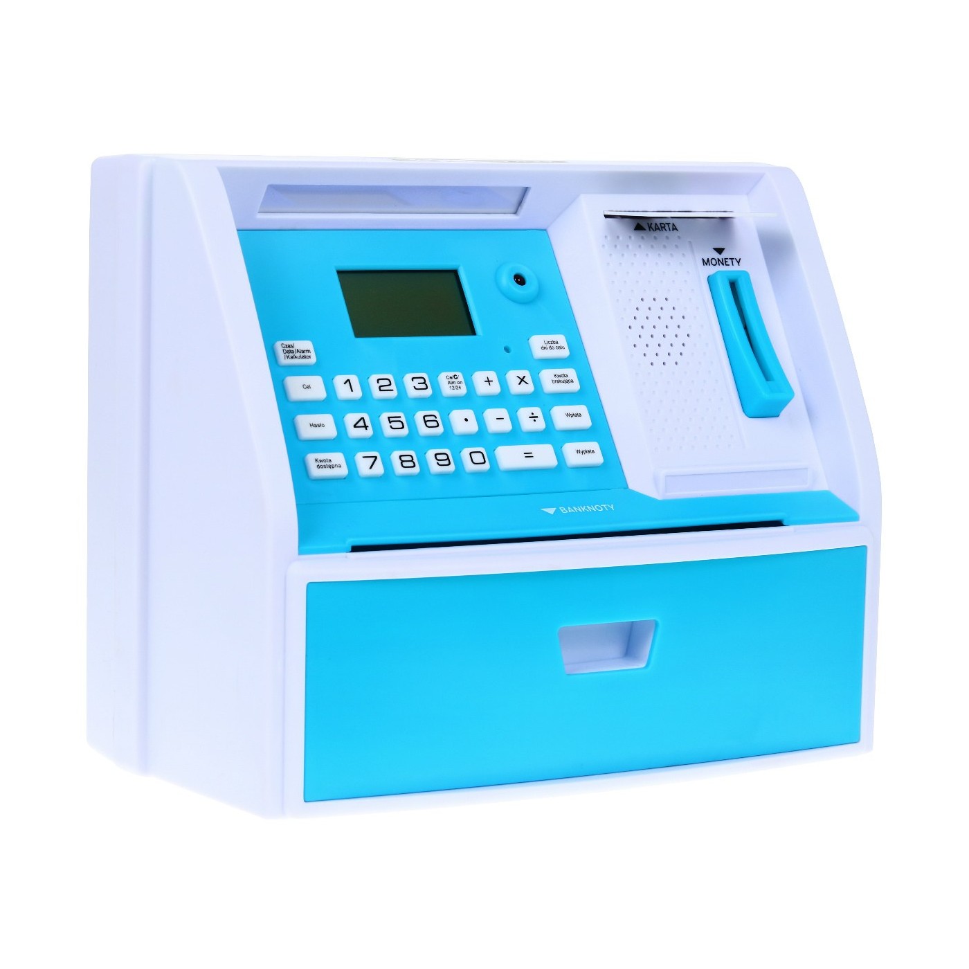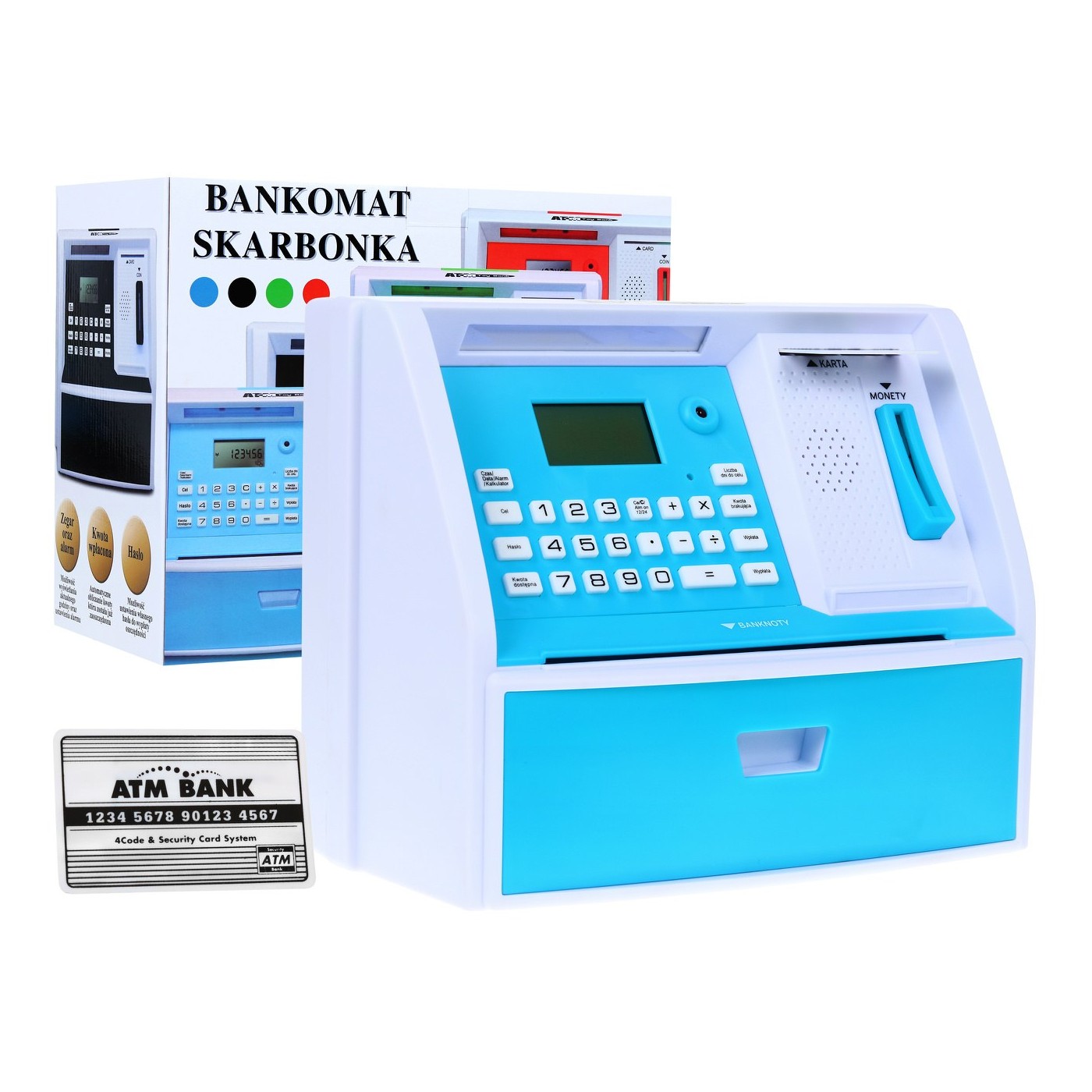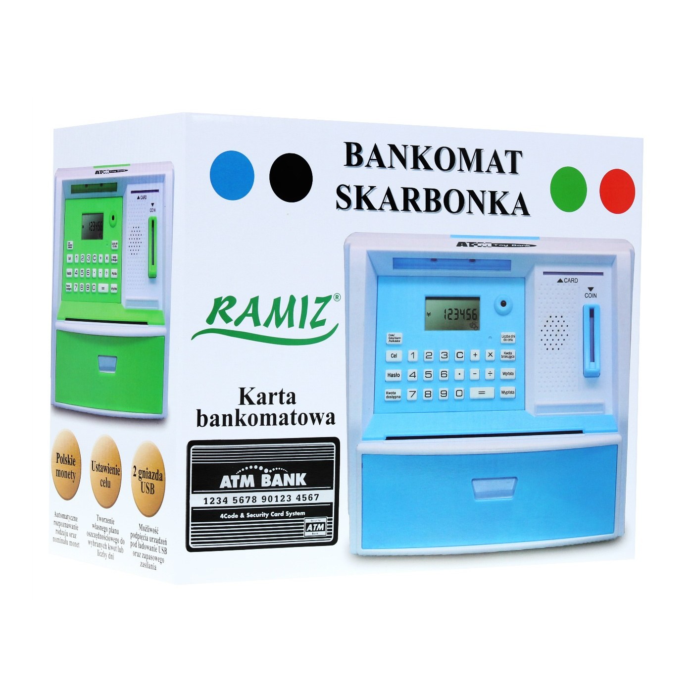 | | Skarbonka w kształcie bankomatu z kartą bankomatową i blokadą na PIN. Skarbonka bankomat to nie tylko świetny pomysł na prezent dla wszystkich gotowych do oszczędzania, a zarazem doskonała zabawka edukacyjna dla dzieci, które dzięki niemu nauczą się zasad działania bankomatu. Należy włożyć kartę, wstukać PIN i wybrać, operację którą chcemy wykonać. Skarbonka nalicza nominały w PLN (polskie monety). |