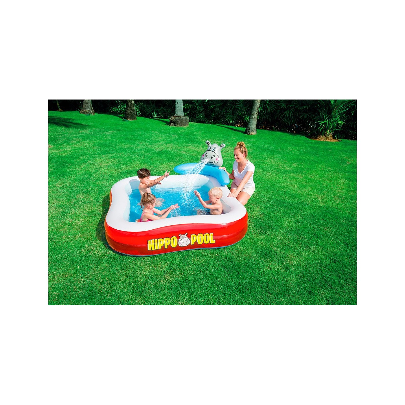 | | - oddzielne komory powietrzne, - tryskający wodą hipopotam podłączany do węża ogrodowego, - zalecane napełnienie 316 l (83 galonów), - wytrzymałe, łatwe w obsłudze zawory. |