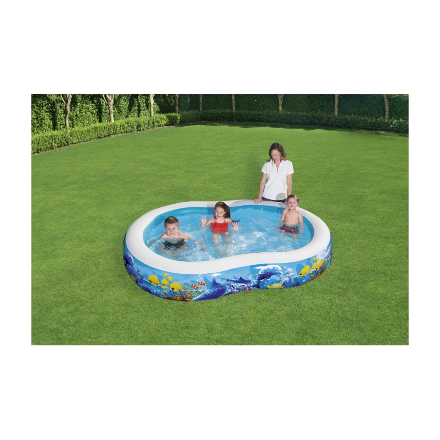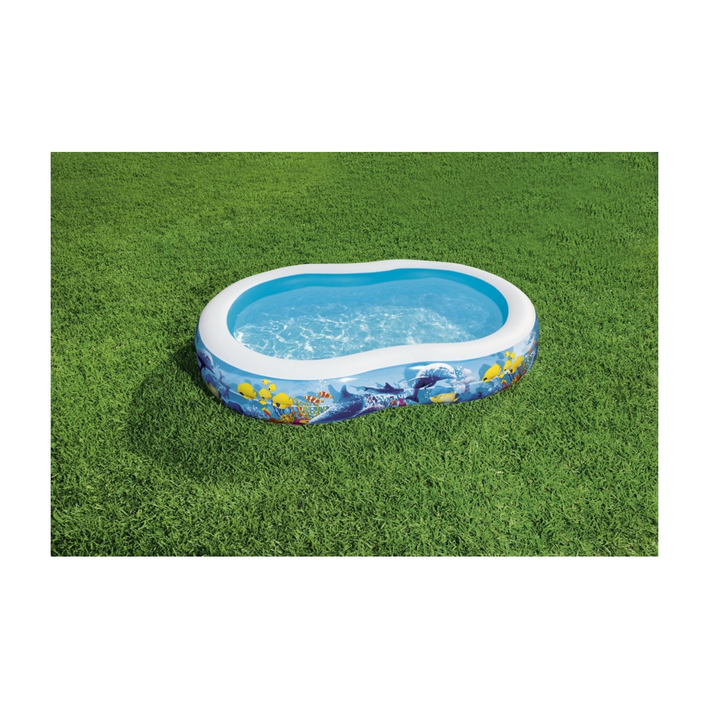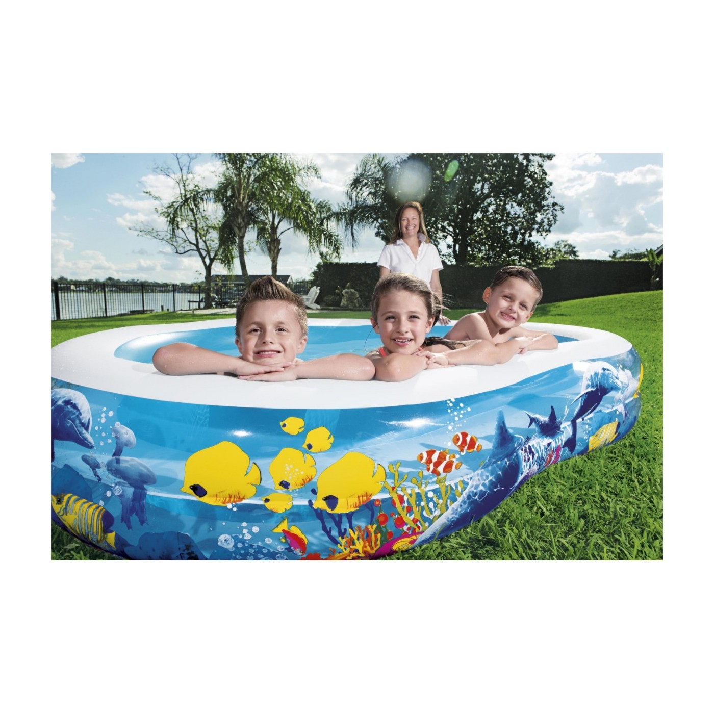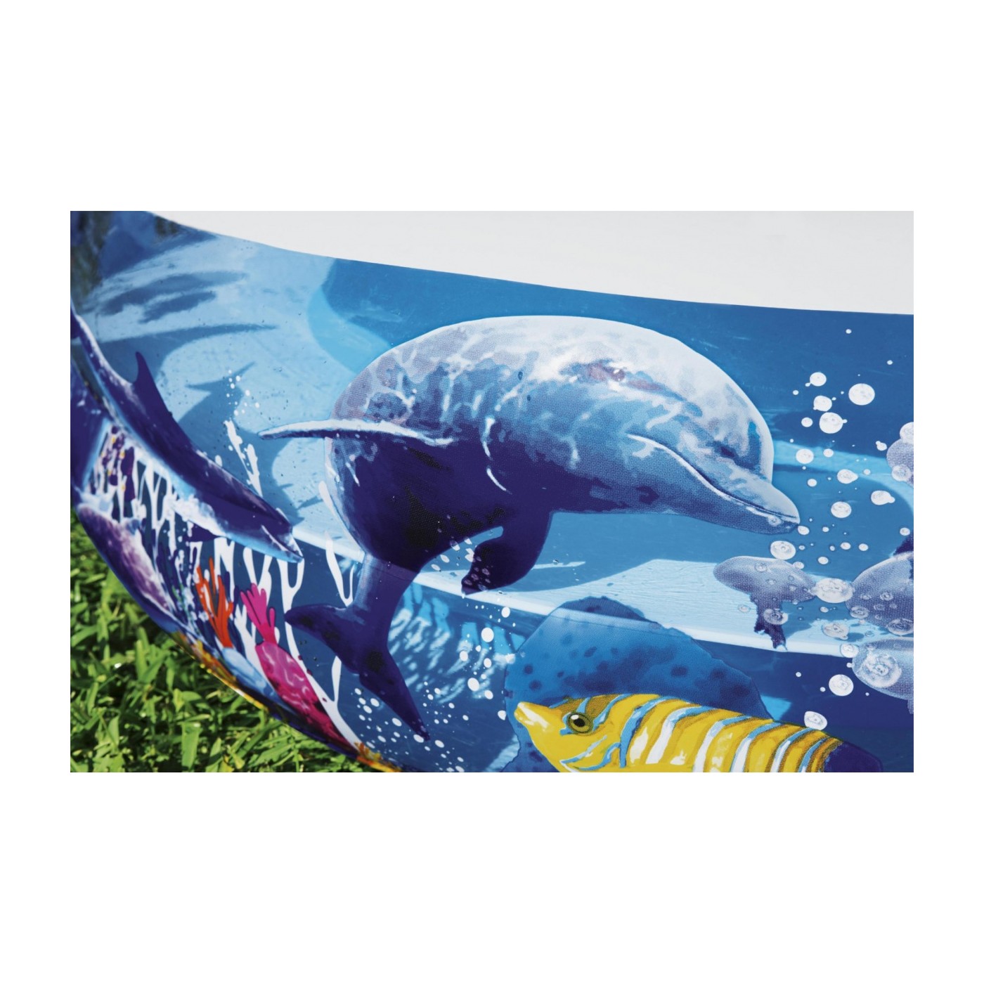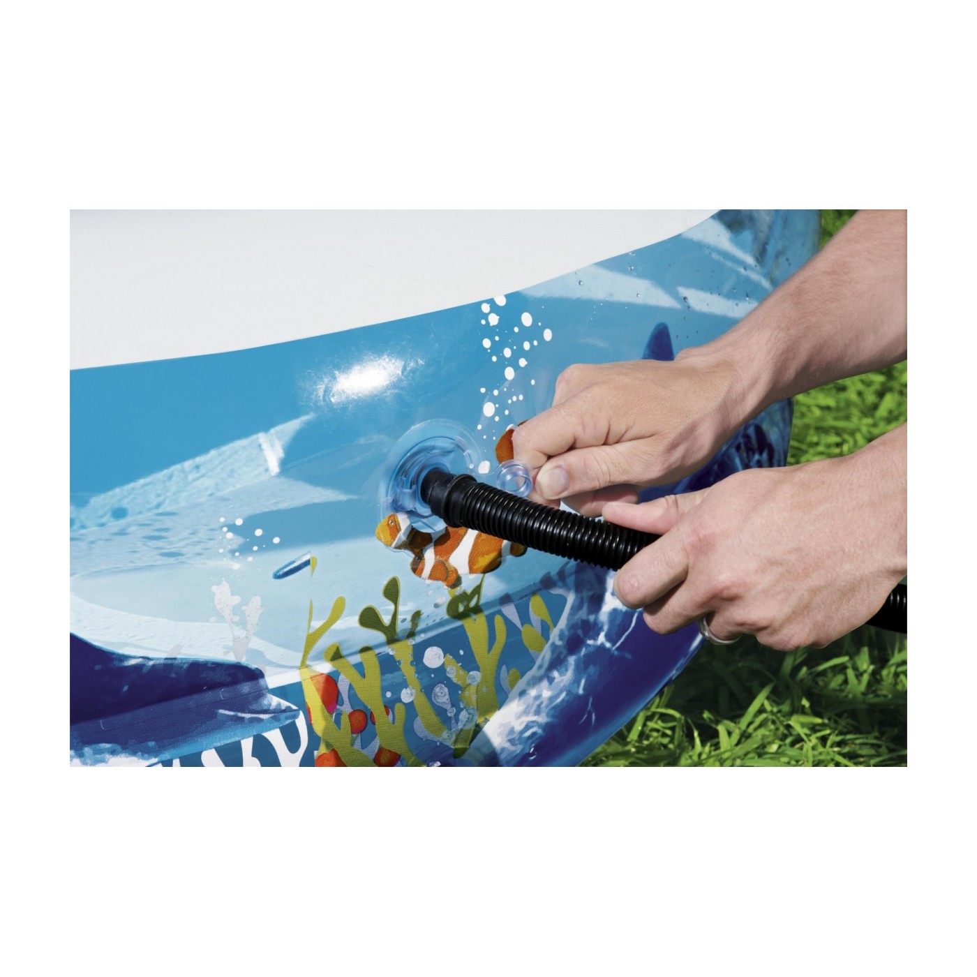 | | - 2 wytrzymałe komory powietrzne, - ścianki basenu pokryte kolorową morską grafiką, - zalecane napełnienie 544 litrów (144 galonów), - wytrzymałe, łatwe w obsłudze zawory. |