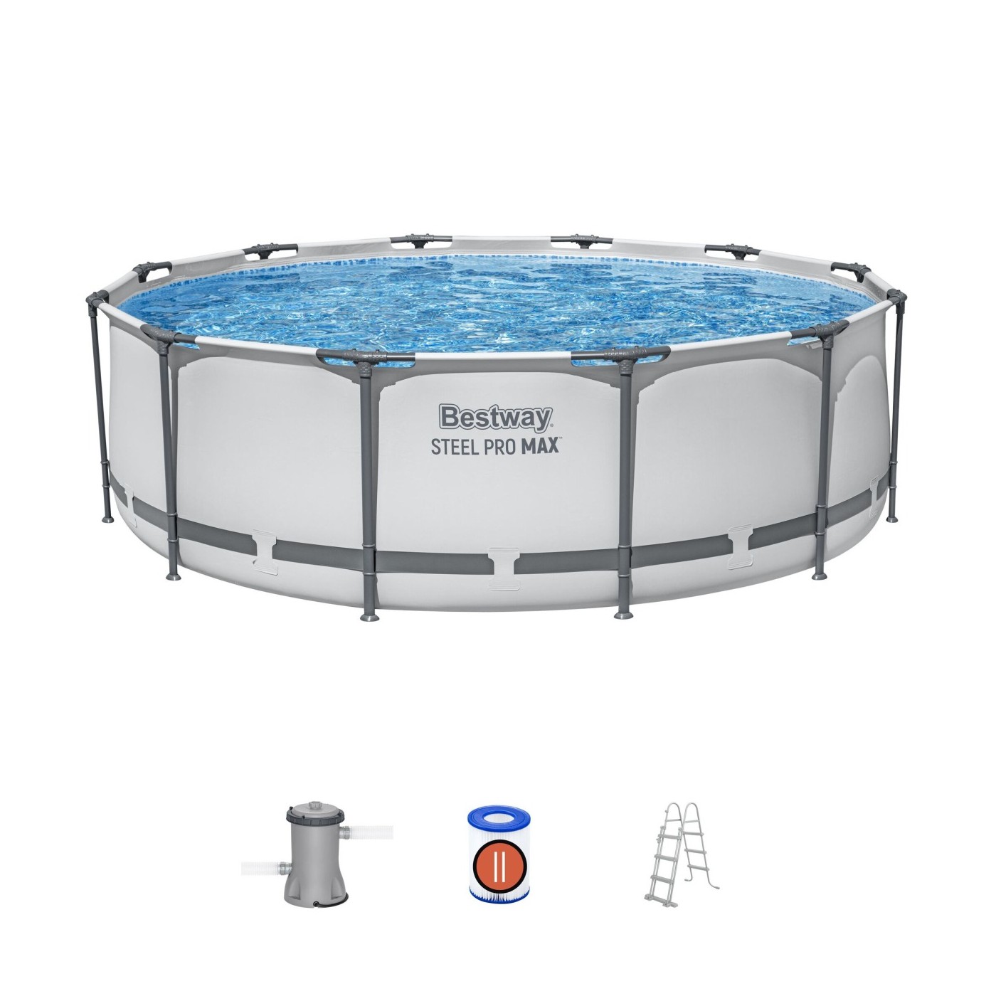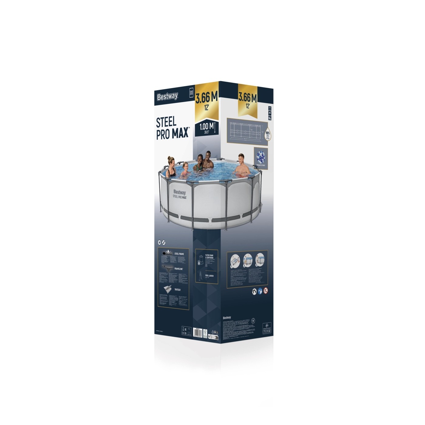 Bazén rámový Steel Pro MAX 366x100 Sivý 12FT BESTWAY 4w1 + Čerpadlo Filter + Rebrík