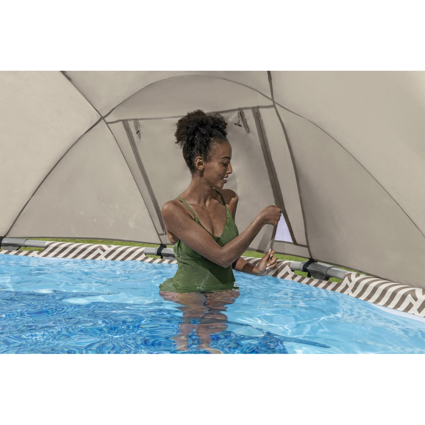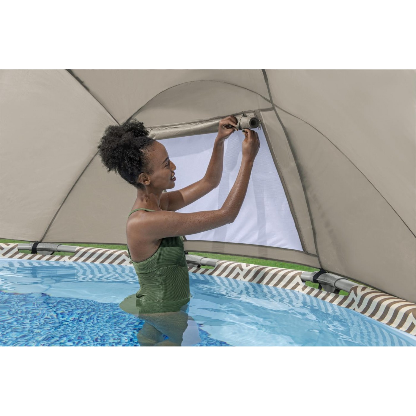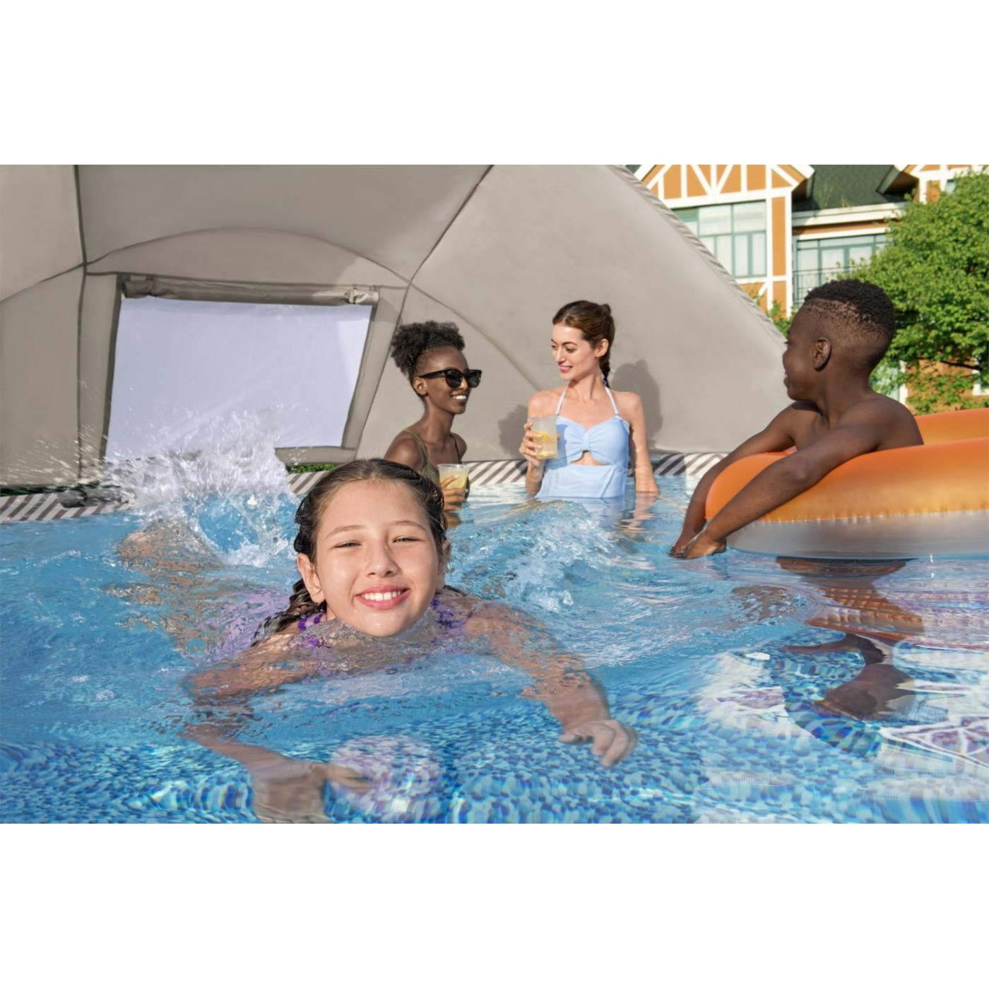 | - odporny na korozje stelaż, - powłoka basenu PVC wykonana w technologii DURAPLUS™, - zawór spustowy, - ścianki basenu pokryte mozaikową grafiką, - basen wyposażony w Seal & Lock System™ zabezpieczający połączenie między elementami stelażu, - system FrameLink System, zabezpieczający złączki przed korozją, - uchwyt na napoje, - łatwy montaż, - konstrukcja objęta patentem. |