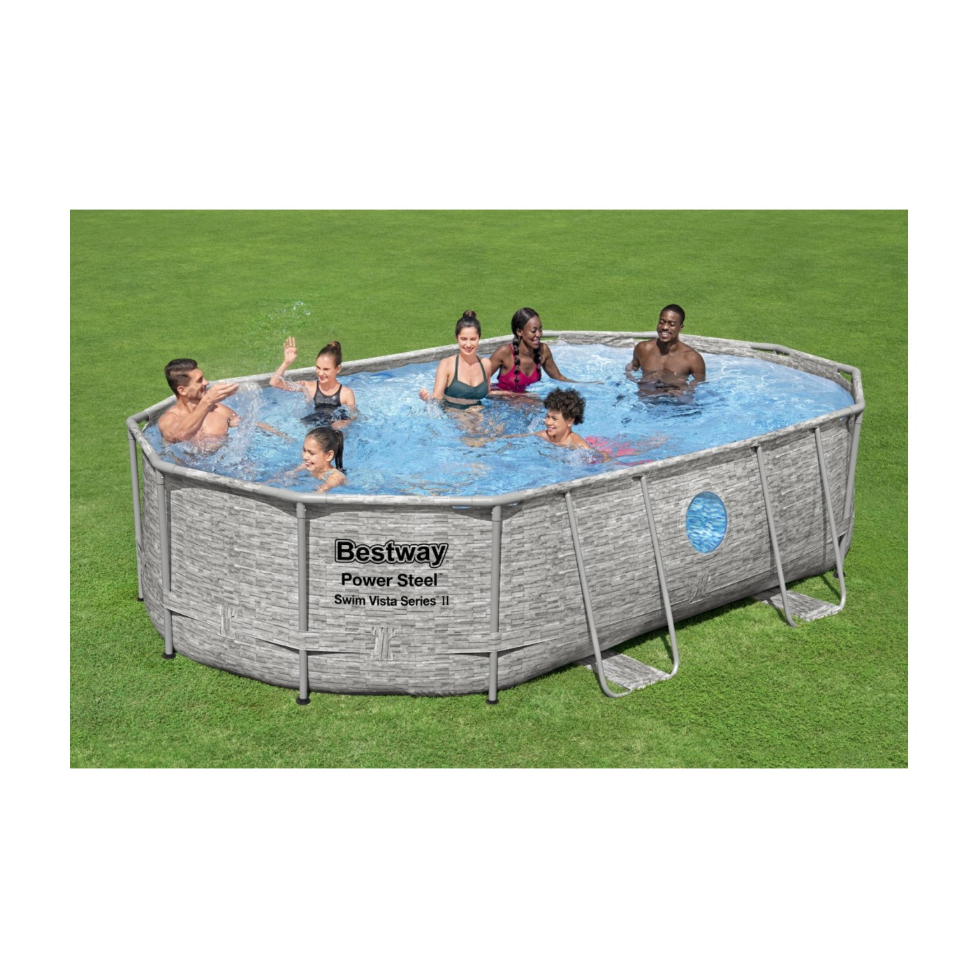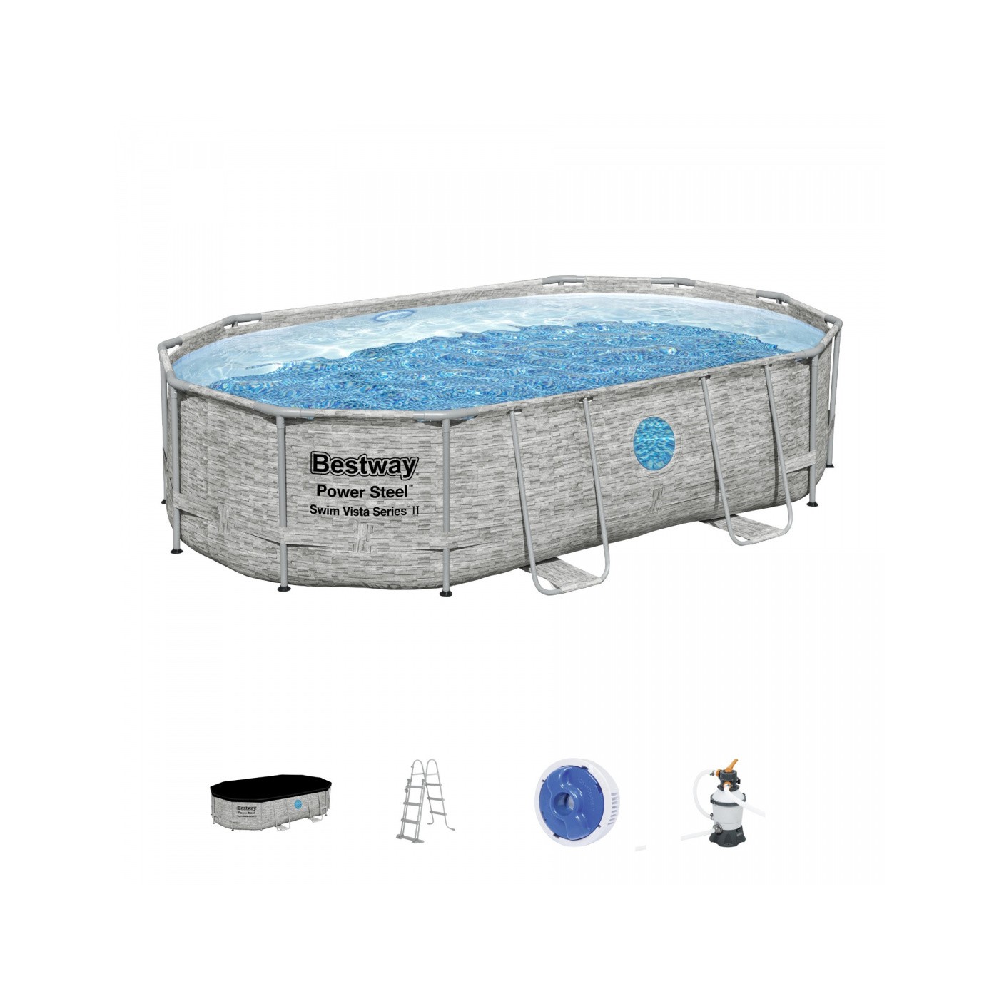 Bazén rámový Power Steel Swim Vista s oknom 488x305x107 16x10FT BESTWAY 6w1 + Pieskový filter
