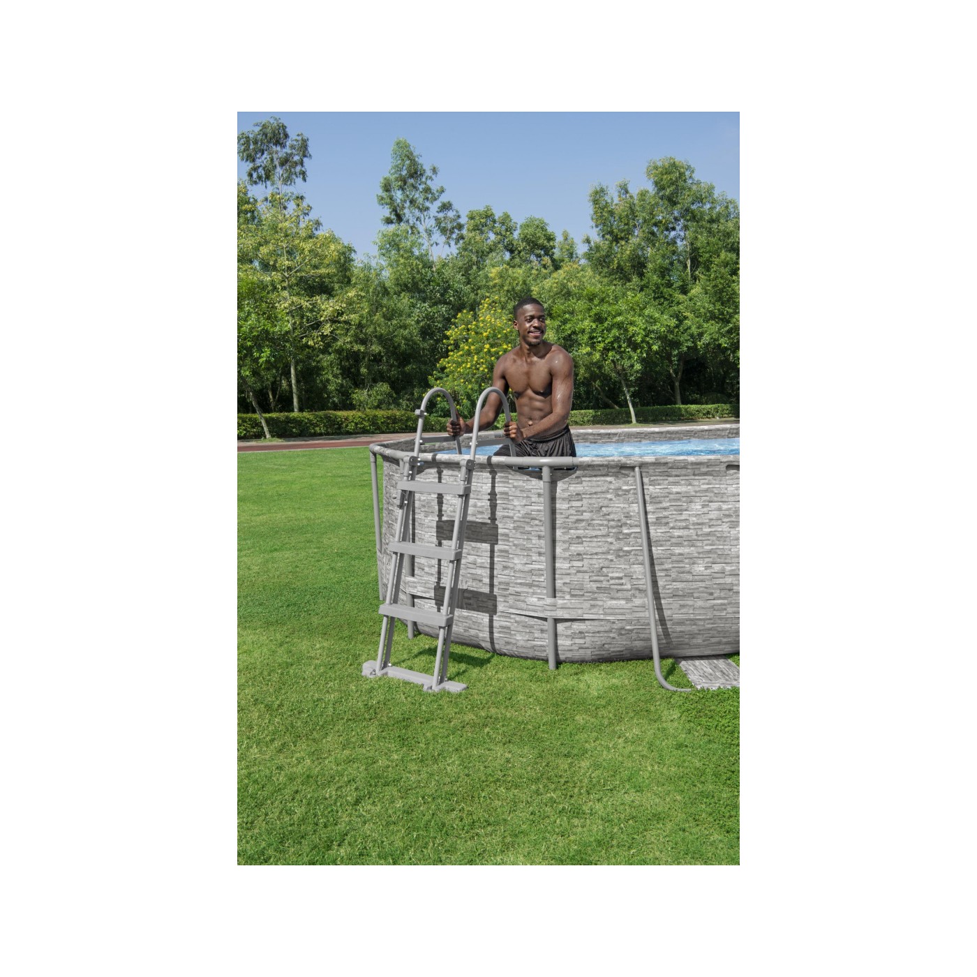 | - odporny na korozje stelaż z owalnymi rurkami, - 2 przezroczyste okienka wykonane w technologii SWIM VISTA, - wyjątkowa wytrzymałość ścian bocznych basenu uzyskiwana jest dzięki zastosowaniu technologi Tritech ™. Trójwarstwowy materiał wzmocniony rdzeniem z siatki poliestrowej umieszczonej między dwiema warstwami odpornego materiału PVC tworzy całkowitą grubość 0.40-0.80mm (16-32 gauge) w zależności od wielkości basenu, zapewniając doskonałą wytrzymałość i trwałość. - wbudowany zawór spustowy, - dozownik chemii montowany na dysze doprowadzającą wodę z pompy w systemie CHEMCONNECT, - basen wyposażony w Seal & Lock System™ zabezpieczający połączenie między elementami stelażu, - wbudowany zawór spustowy w połączeniu z dołączonym adapterem pozwala na łatwe odprowadzanie wody przy użyciu węża ogrodowego, - ścianki wewnętrzne basenu pokryte mozaikową grafiką, - zewnętrzne ścian pokryte grafiką, - złącza kontrolujące przepływ, - łatwy montaż, |