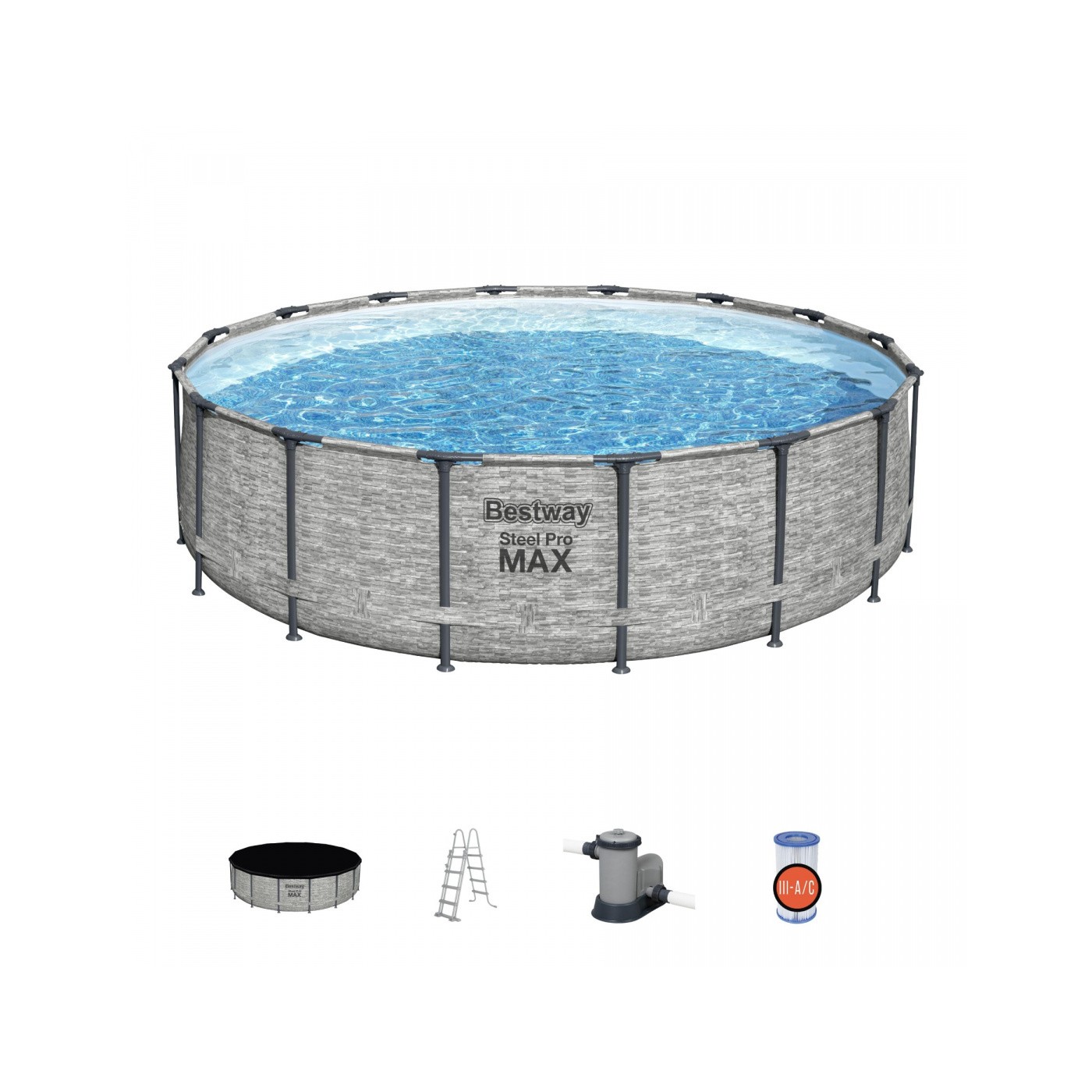 Bazén rámový Steel Pro MAX 488x122 Imitácia Kamene 16FT BESTWAY 5w1 + Príslušenstvo