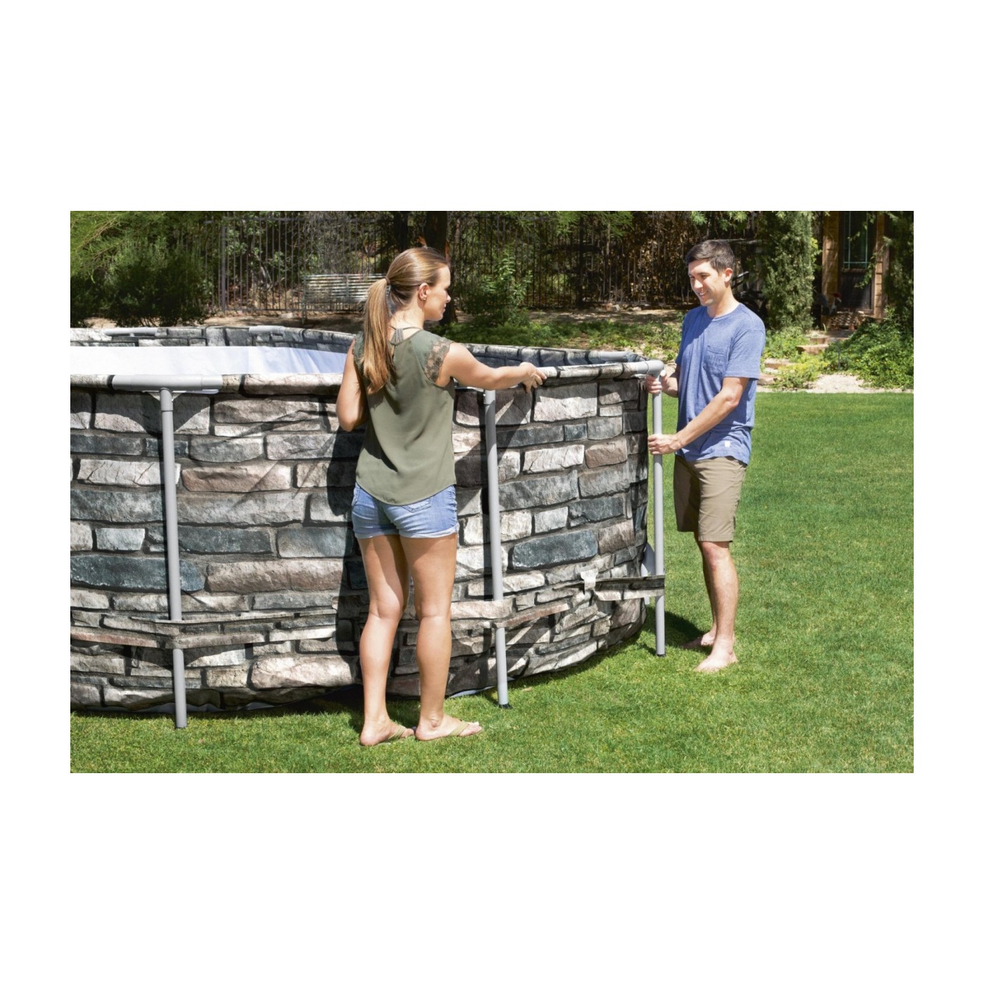 | - odporny na korozje stelaż z owalnymi rurkami, - powłoka basenu PVC wykonana w technologii TRITECH™, - zawór spustowy, - ścianki basenu pokryte mozaikową grafiką, - specjalna powłoka uniemożliwiająca przywieranie materiału FROSTED FINISH™ - basen wyposażony w Seal & Lock System™ zabezpieczający połączenie między elementami stelażu, - łatwy montaż, | |