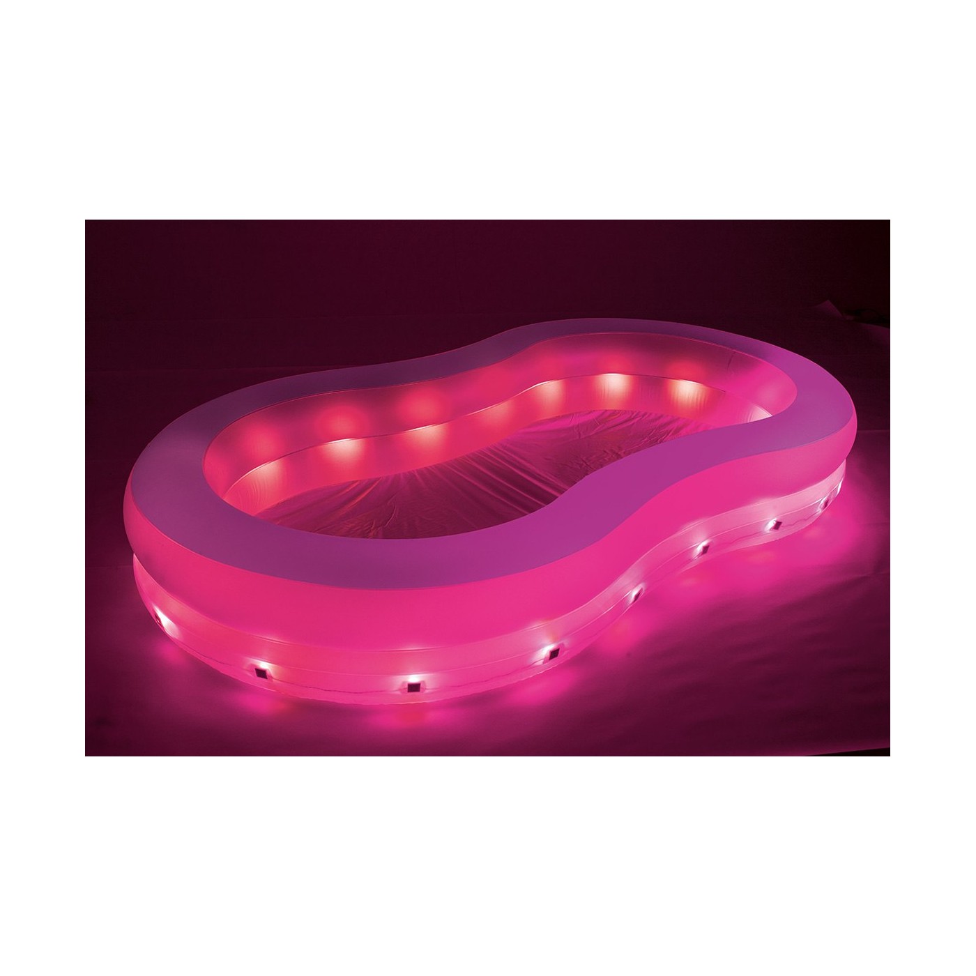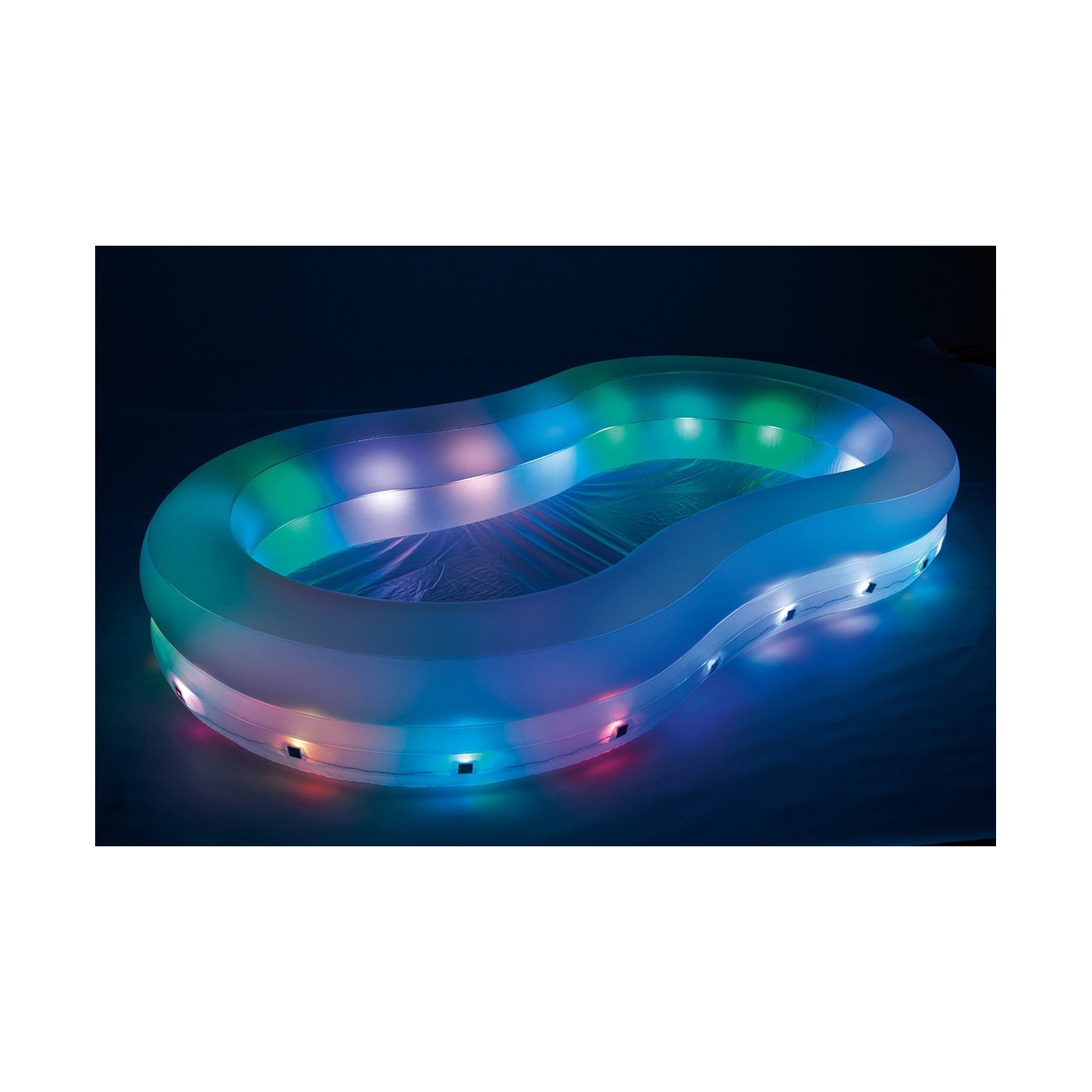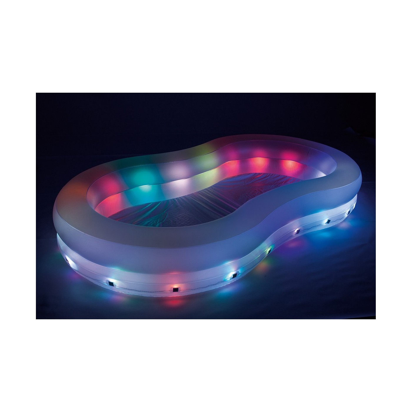 | | - zalecane napełnienie 556 litrów (147 galonów), - basen posiada 3 oddzielne komory powietrzne w kształcie pierścieni, - w zestawie znajduje się wbudowane kolorowe oświetlenie LED, - wytrzymałe łatwe w użyciu zawory, - zasilanie bateriami 4 x AAA (1.5V) (brak w zestawie). |