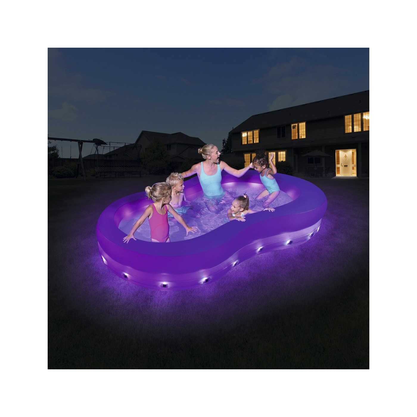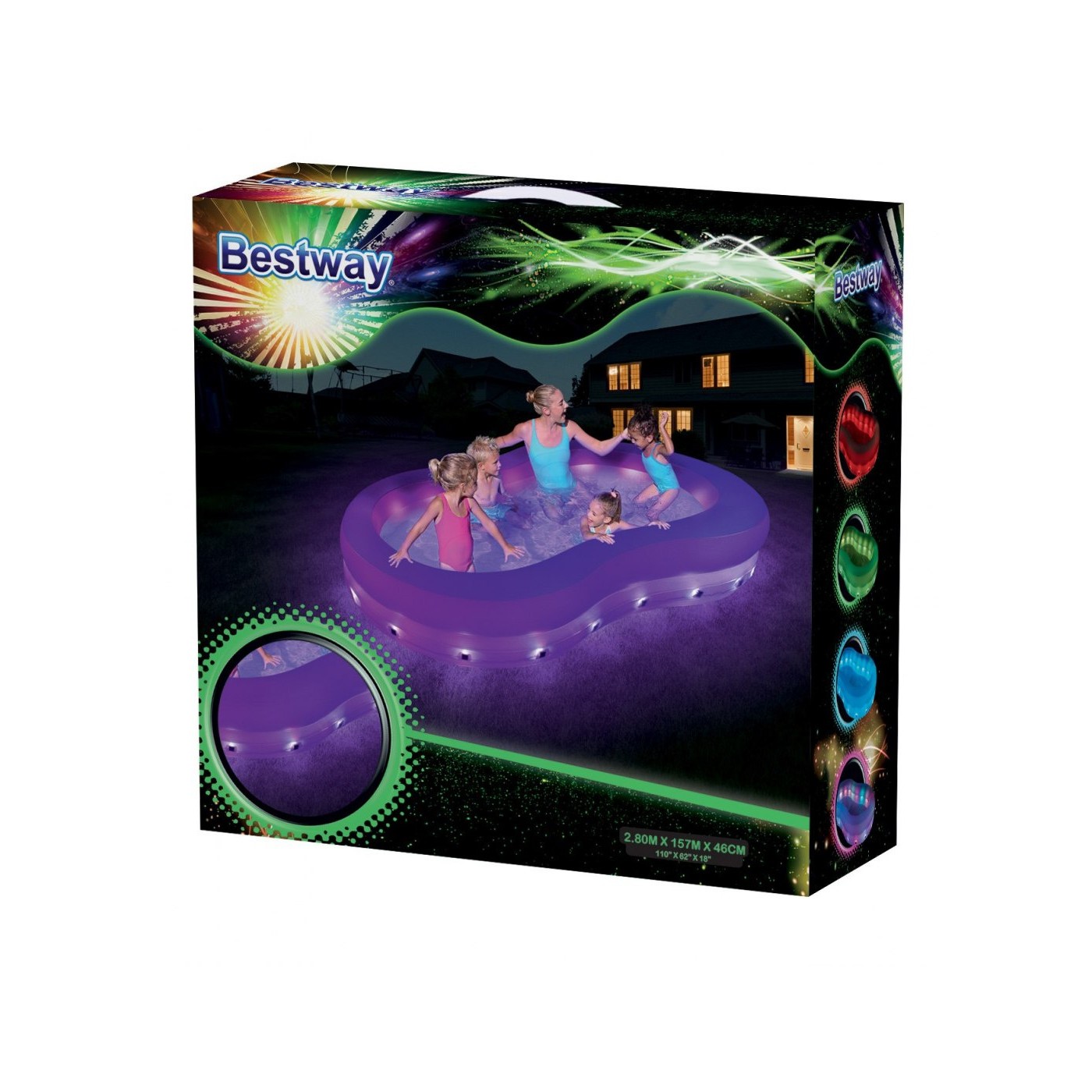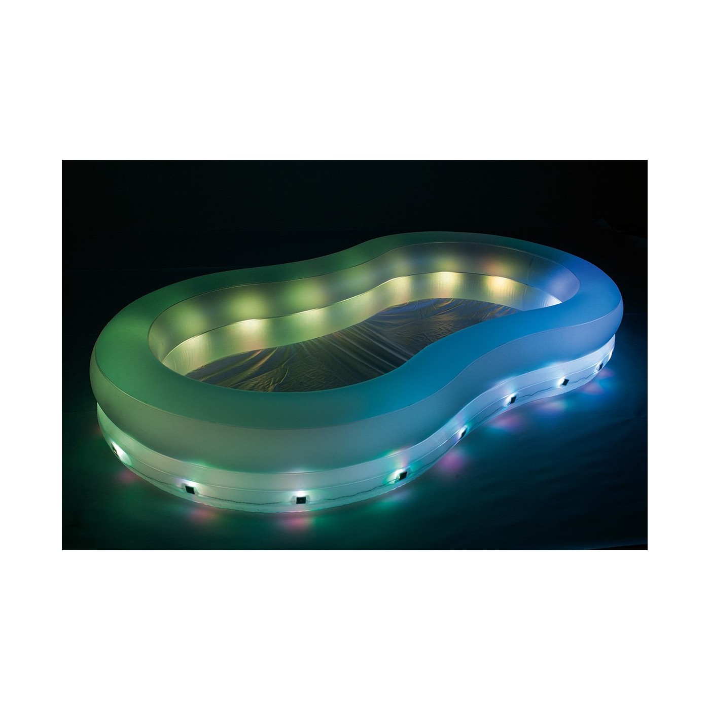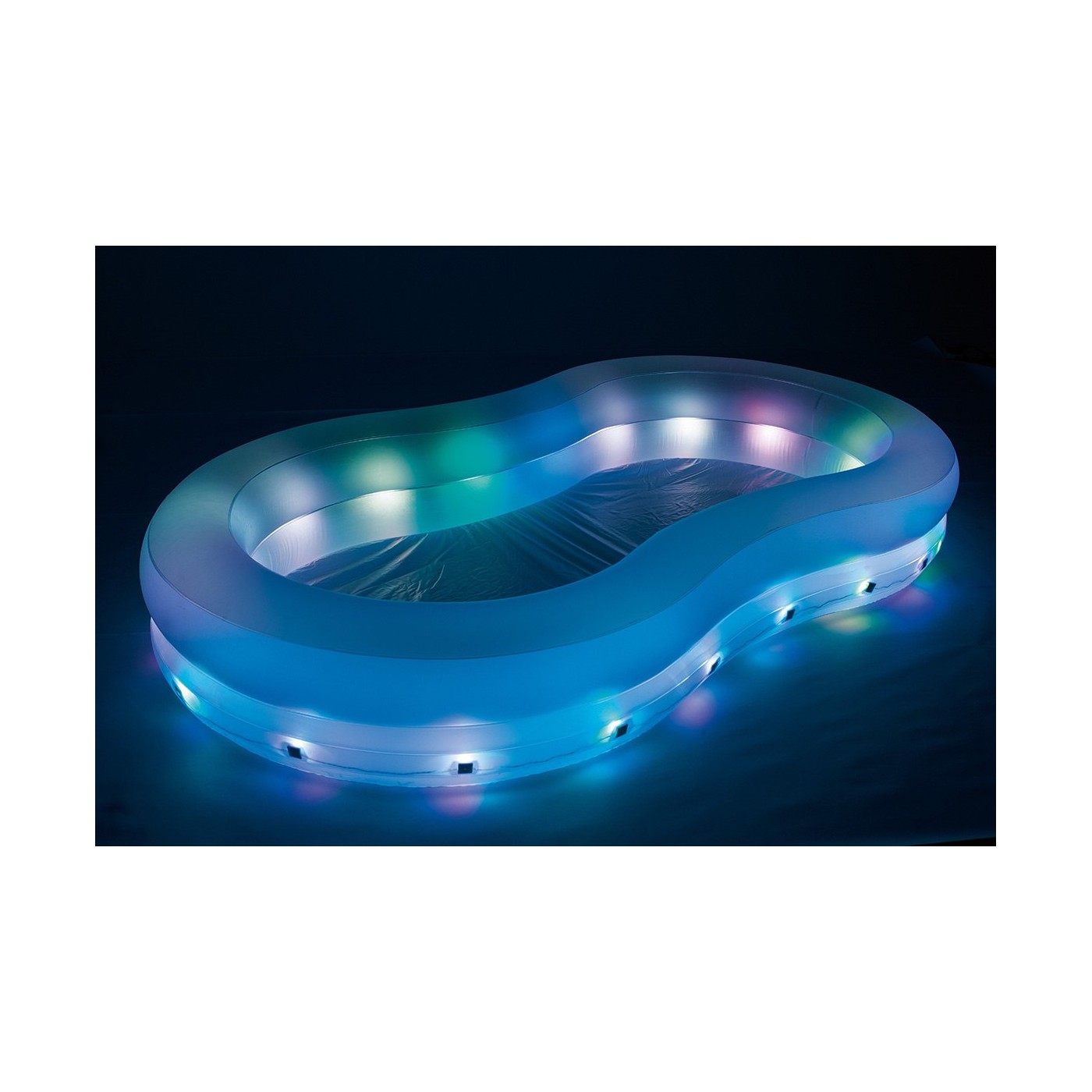 | | - zalecane napełnienie 556 litrów (147 galonów), - basen posiada 3 oddzielne komory powietrzne w kształcie pierścieni, - w zestawie znajduje się wbudowane kolorowe oświetlenie LED, - wytrzymałe łatwe w użyciu zawory, - zasilanie bateriami 4 x AAA (1.5V) (brak w zestawie). |