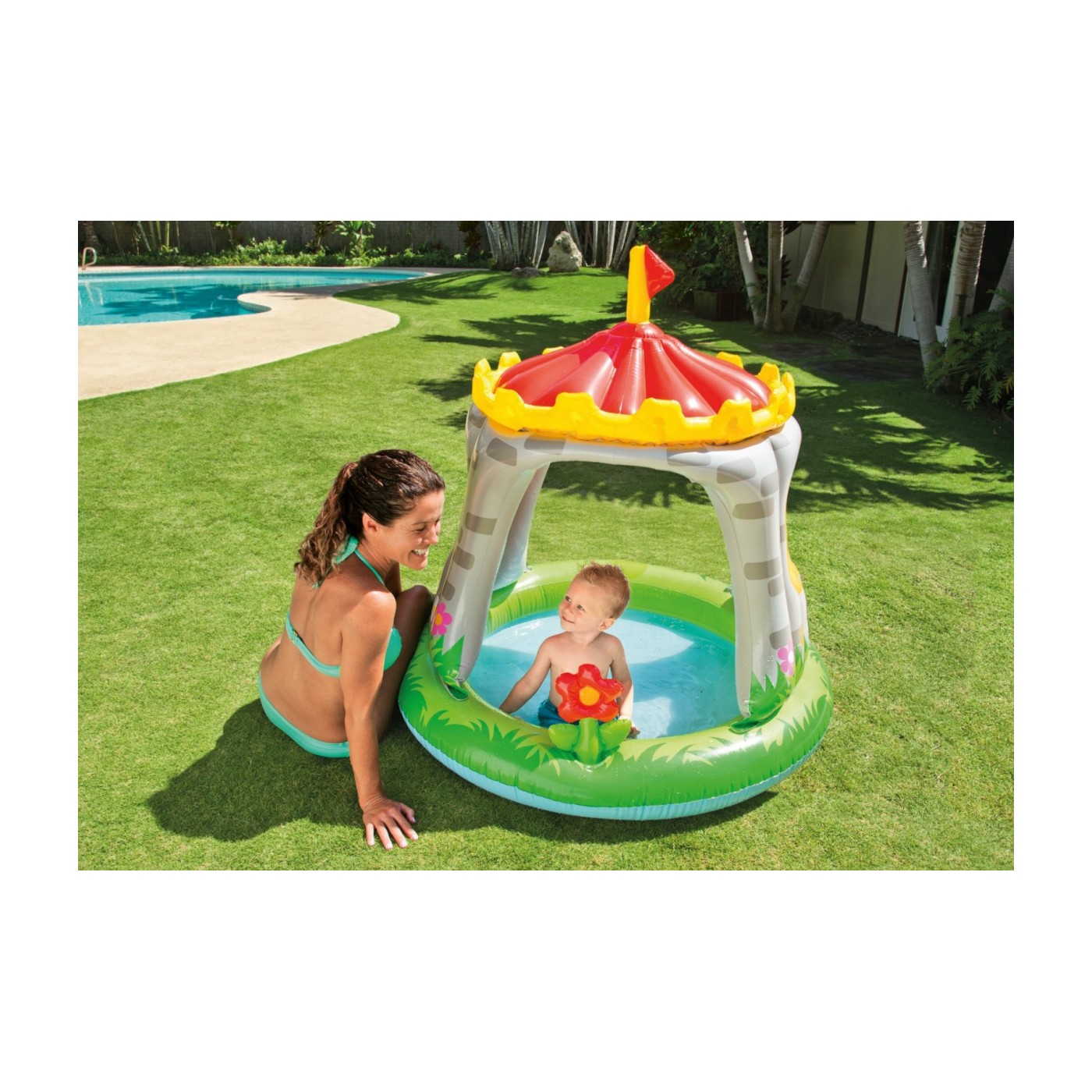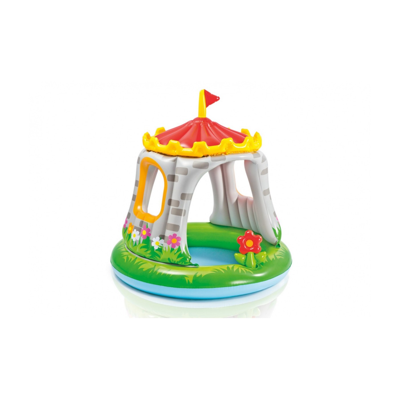 | - dmuchane miękkie dno brodzika, - wbudowany daszek w kształcie grzybka, - napełnienie przy 13 cm / 45L, - efektowna kolorystyk basenu z dodatkowym kwiatkiem, | |