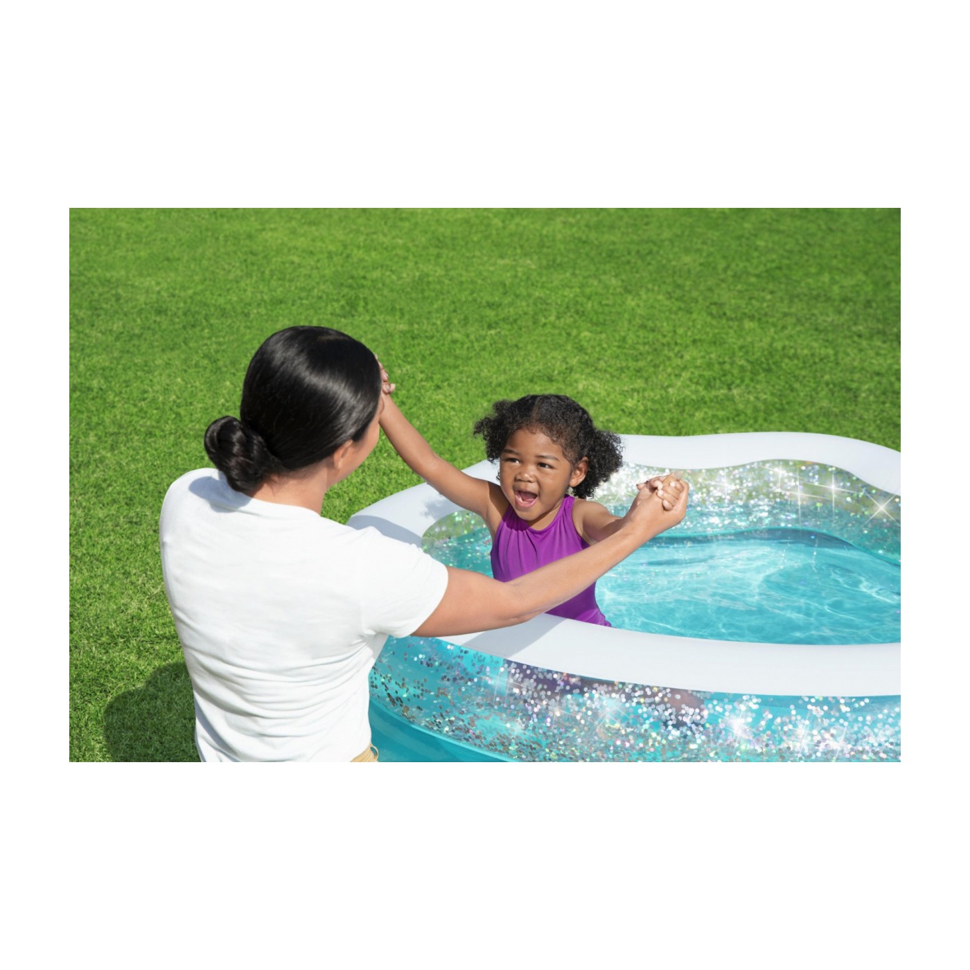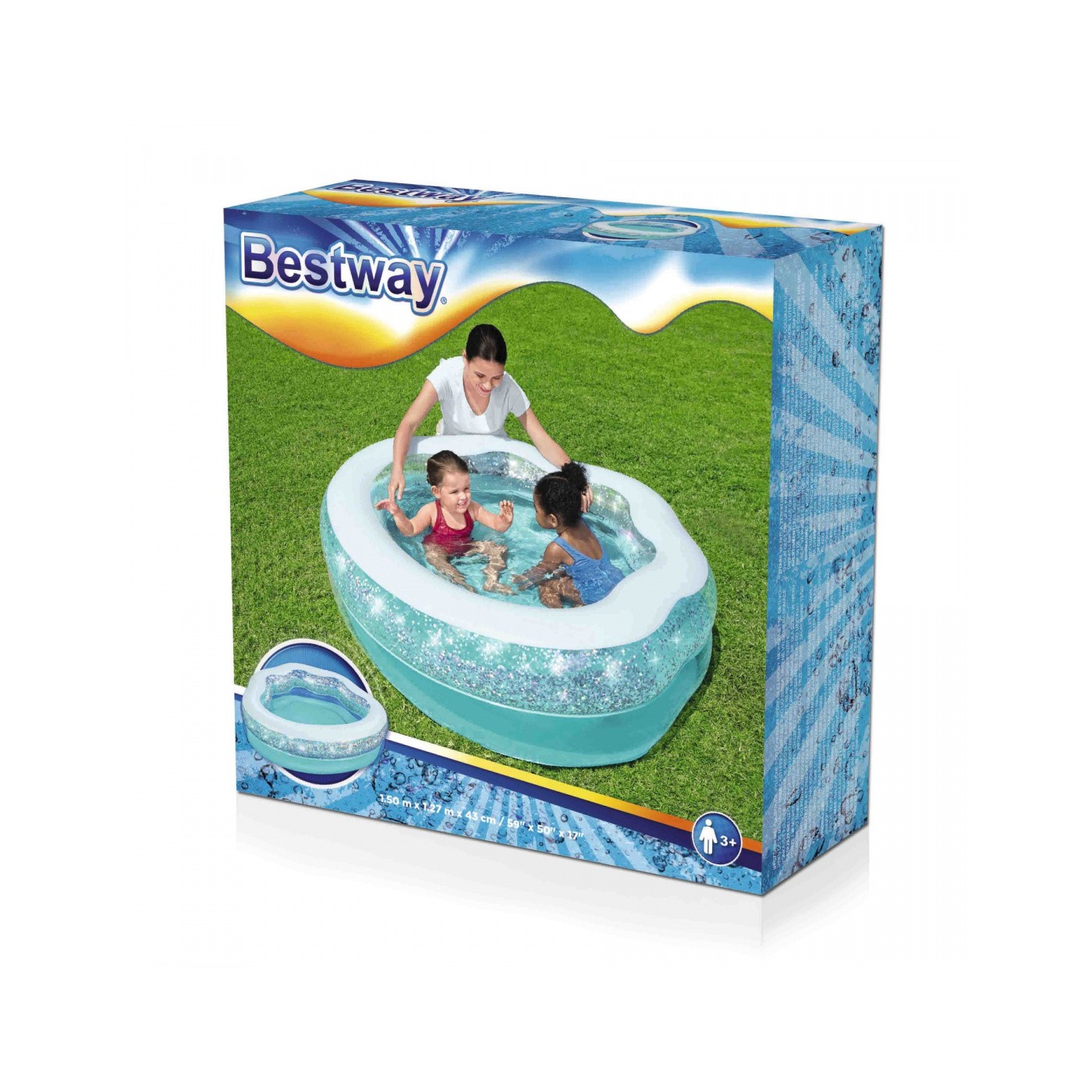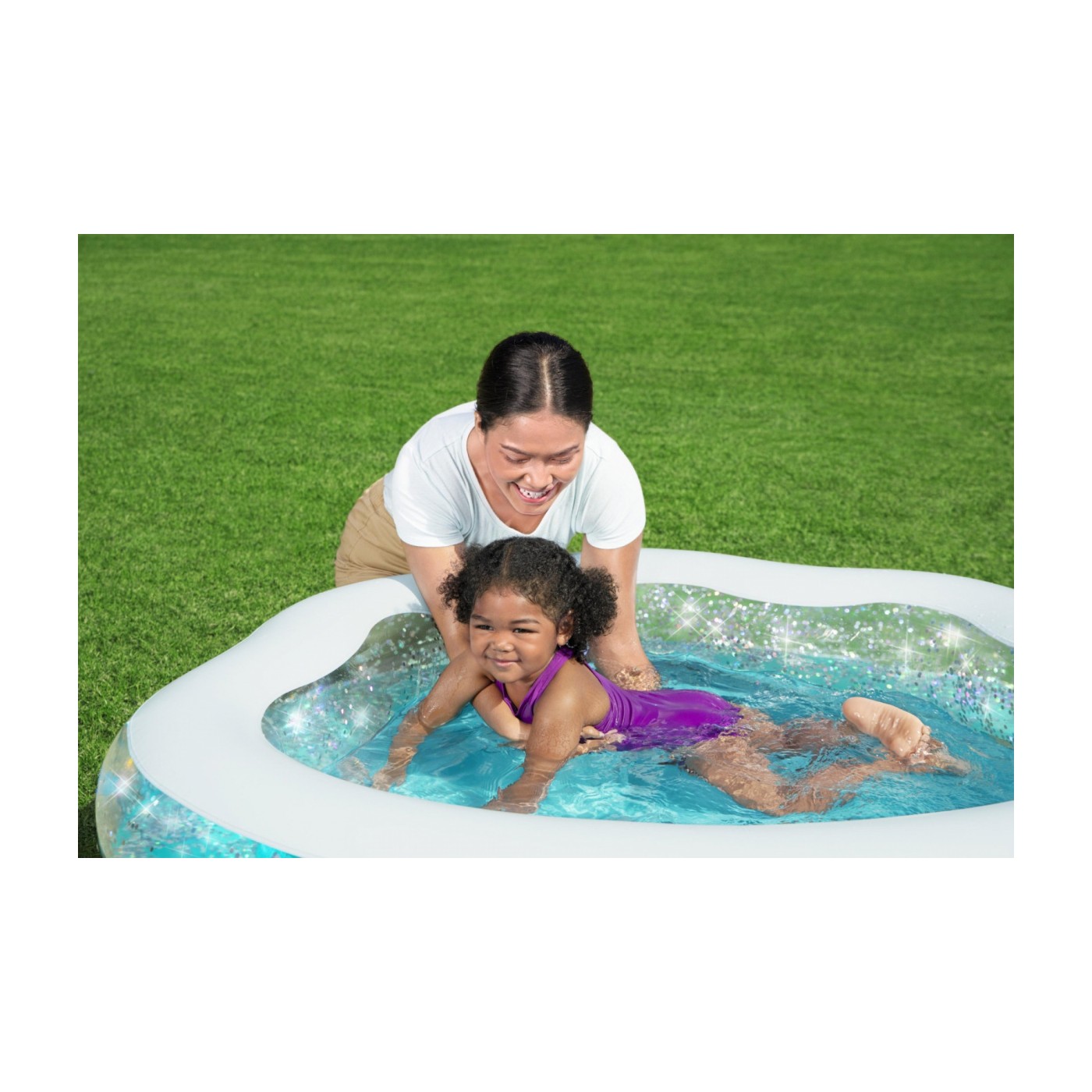 | | - 2 oddzielne komory powietrzne, - kolorowe przeźroczyste ścianki basenu z efektami brokatu, - zalecane napełnienie 230 l (61 galony) - wytrzymałe łatwe w obsłudze zawory. |