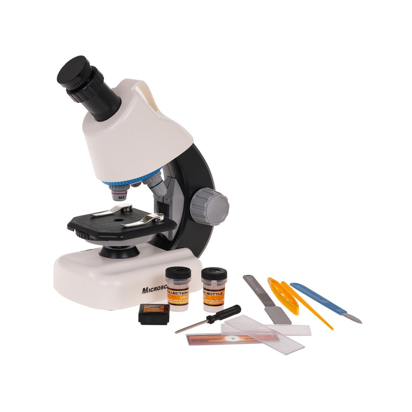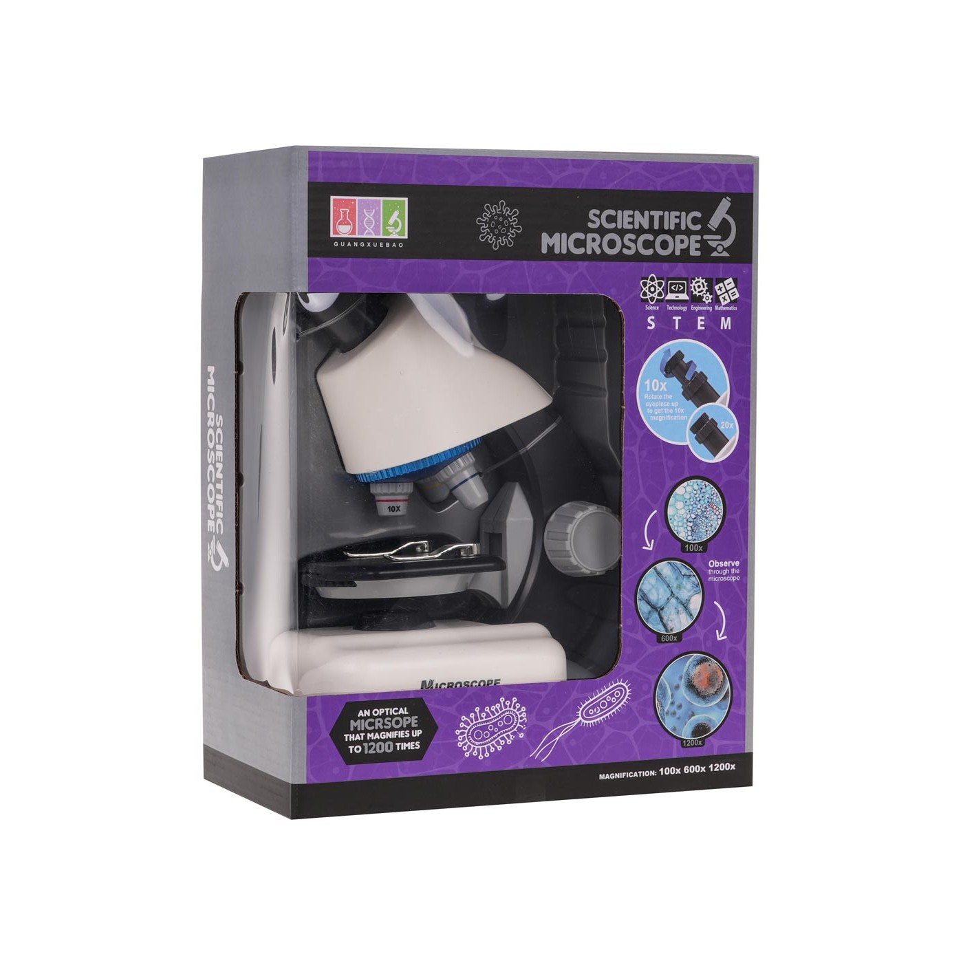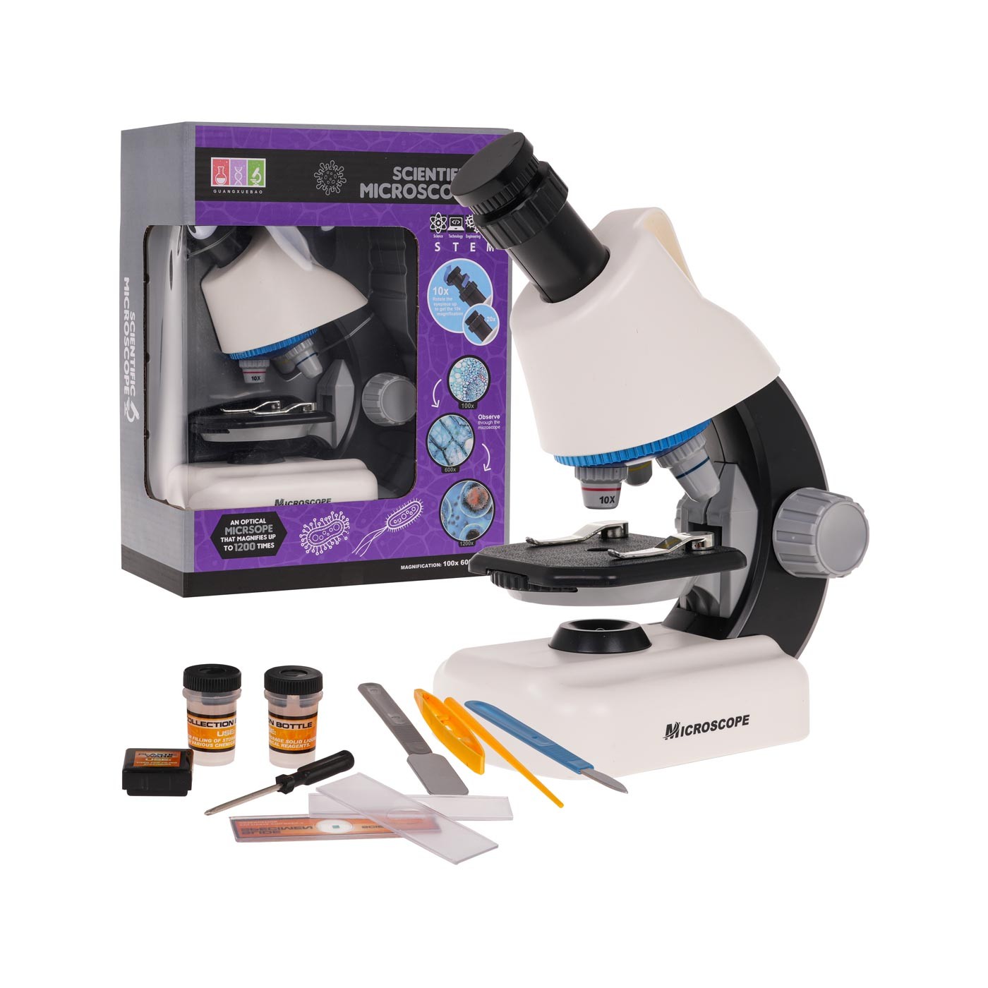 Mikroskop pre malého vedca od 6 rokov. Mikroskop je vyrobený z najkvalitnejších materiálov a umožňuje pozorovať objekty až s 1200-násobným zväčšením. Súčasťou súpravy mikroskopu je aj príslušenstvo ako skúmavky, hotový prípravok, 2 sklíčka na preparát, krabička na mikroorganizmy a pinzeta. Mikroskop je napájaný 2 x AA 1,5 V batériami (nie sú súčasťou balenia).