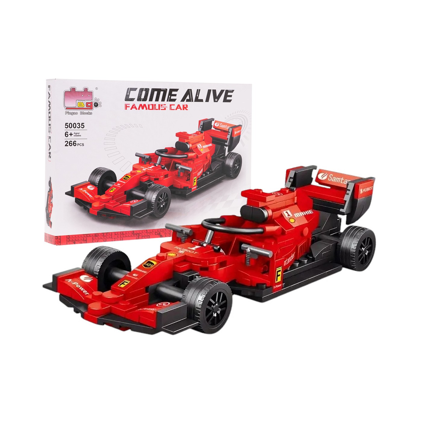 Sada 266 stavebných kociek na vlastnú stavbu červeného pretekárskeho auta. Hračka je určená pre deti od 6 rokov. Bloky a prvky auta sú vyrobené z vysoko kvalitného plastu. Bolid má pohyblivé prvky, ako je spojler a otočné kolesá. Sada obsahuje obrázkový návod. Skladanie stavebných kociek rozvíja u detí manuálne zručnosti, priestorovú predstavivosť a trpezlivosť.