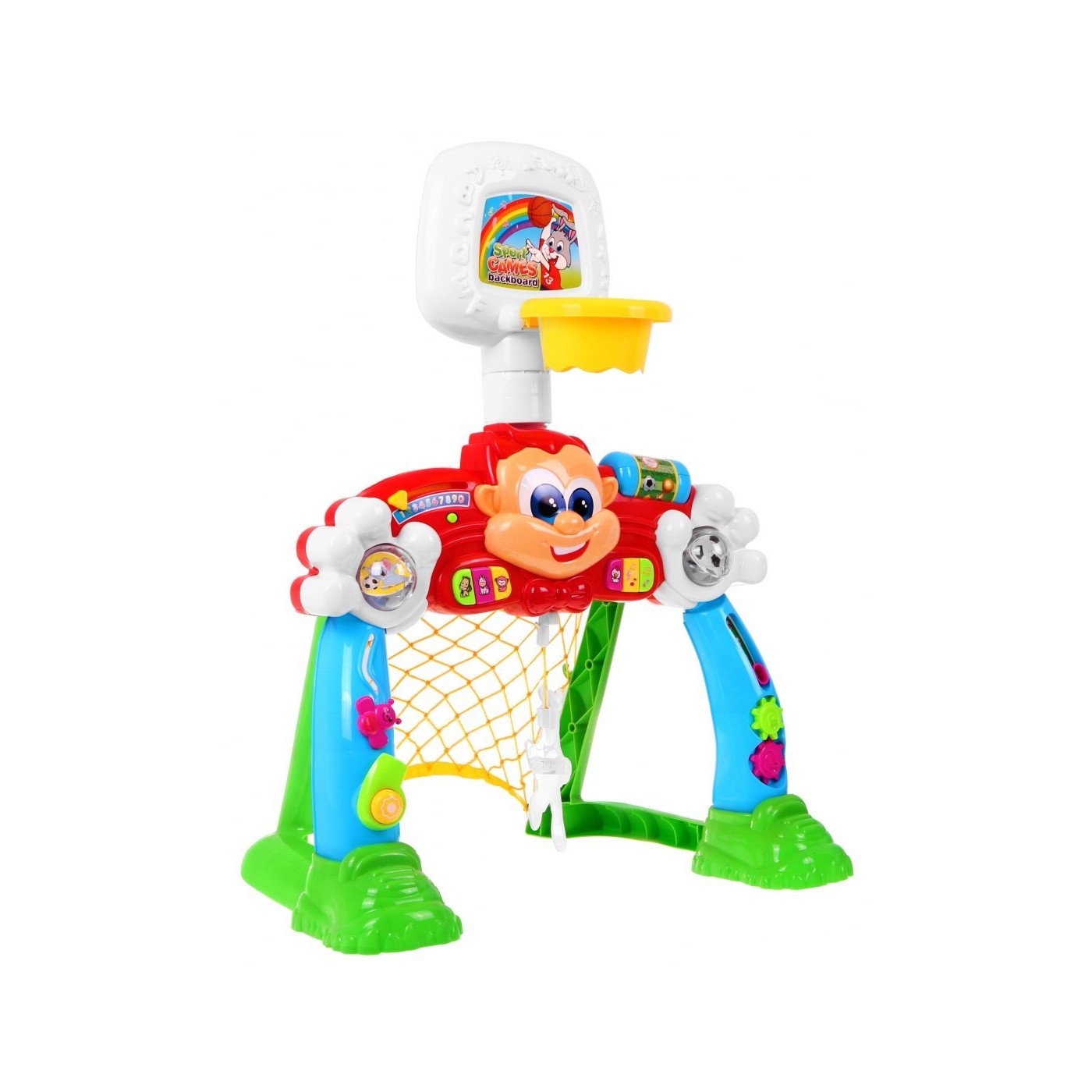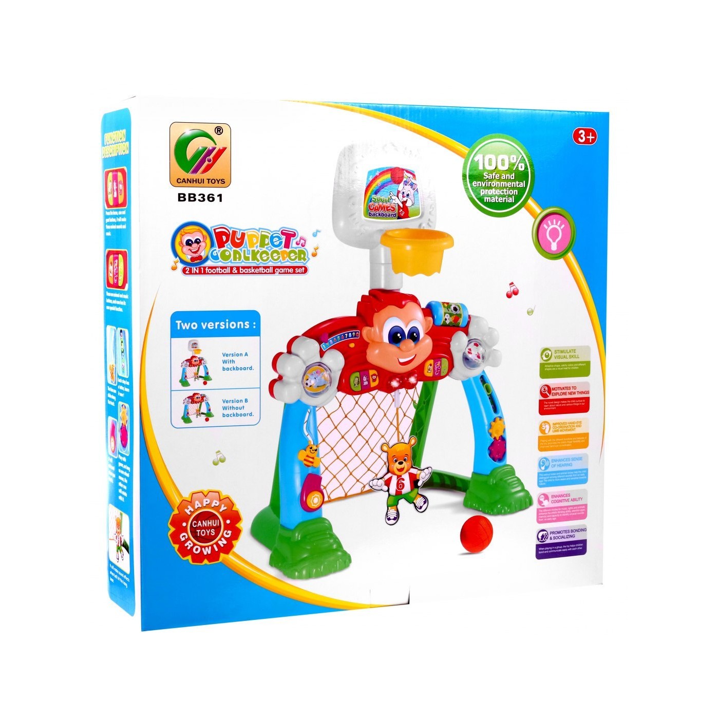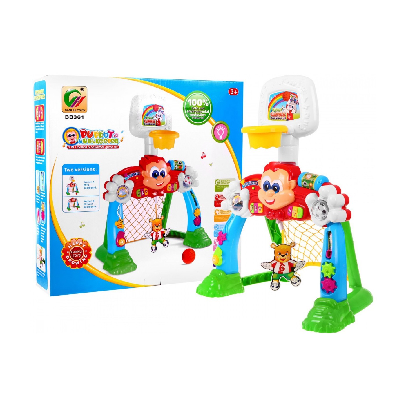 | - duża interaktywna bramka dźwiękowo-świetlna, - kosz, - gumowa piłeczka do koszykówki, - bramkarz misiek, - siatka do bramki, - kolorowe opakowanie idealnie nadające się na prezent. | |