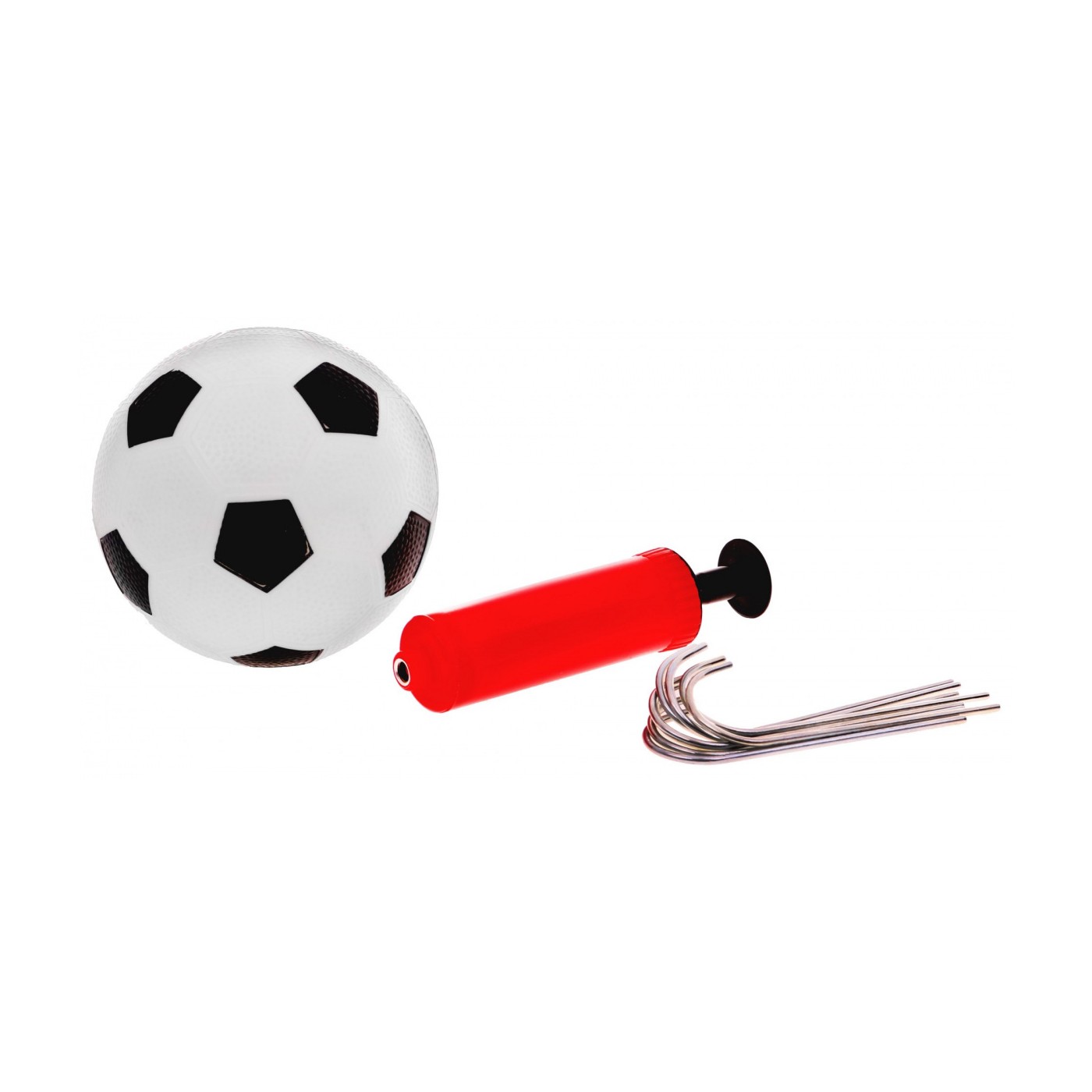 | - bramka z siatką, - 2 x siatka do mniejszej bramki, - piłka, - pompka, - 8 śledzi do zamocowania bramki. | |