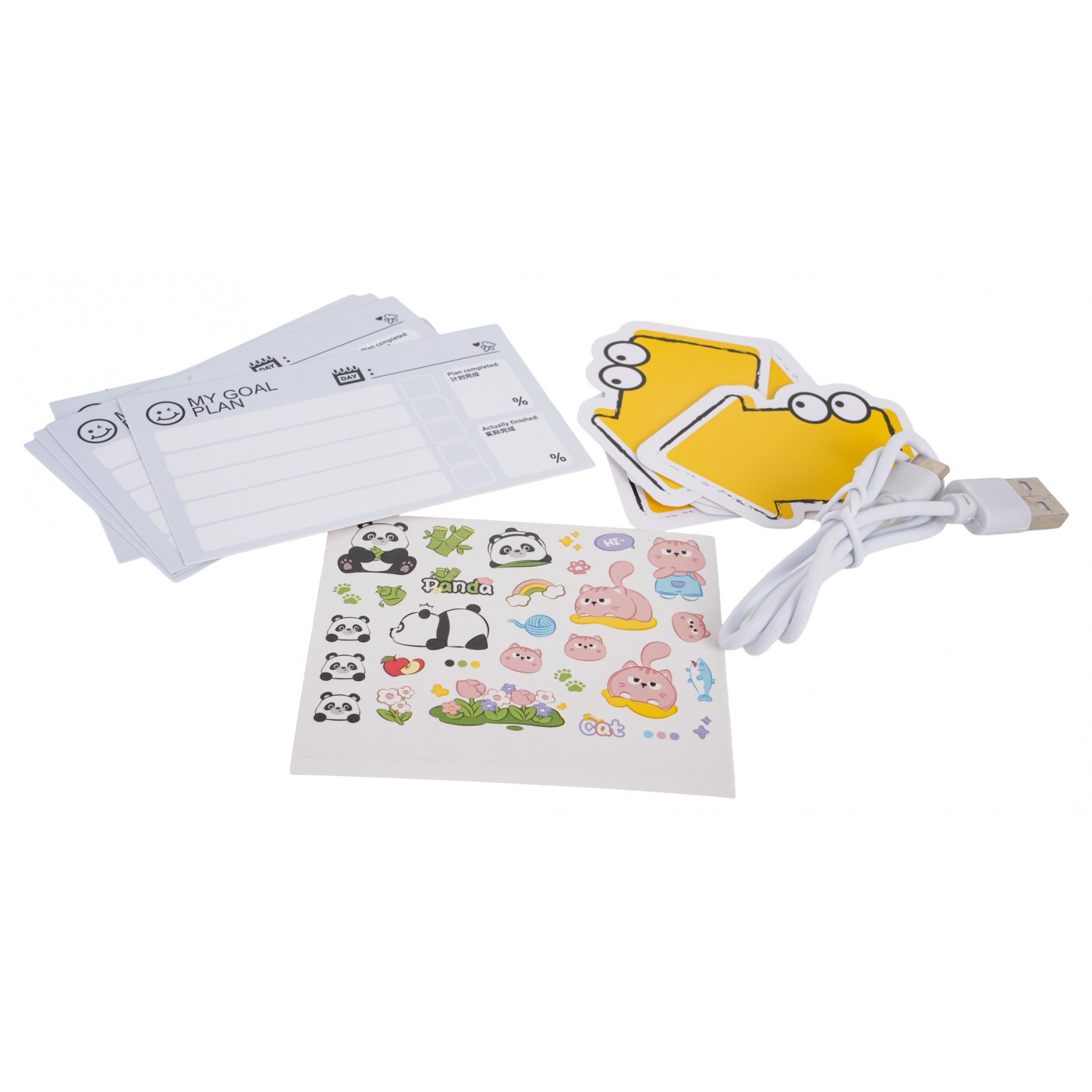 - alarm, - Nabíjací kábel typu C, - používateľská príručka (angličtina a čínština), - 5 kariet s denným plánom, - 5 kariet so šípkami, - ozdobné nálepky. |