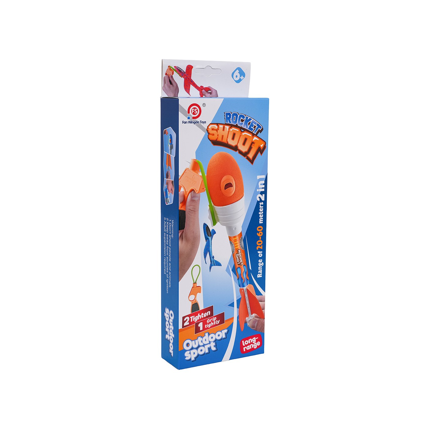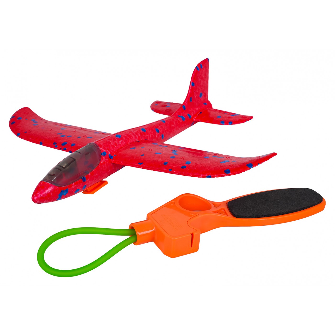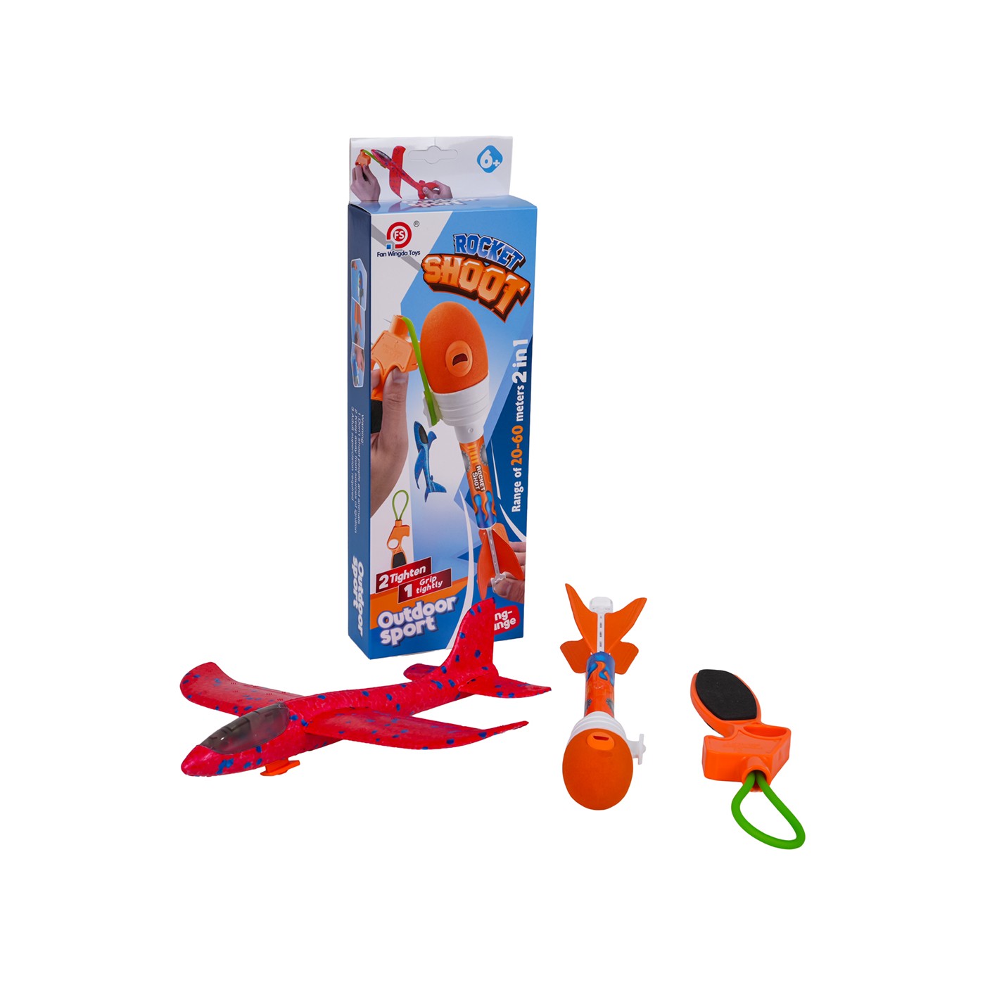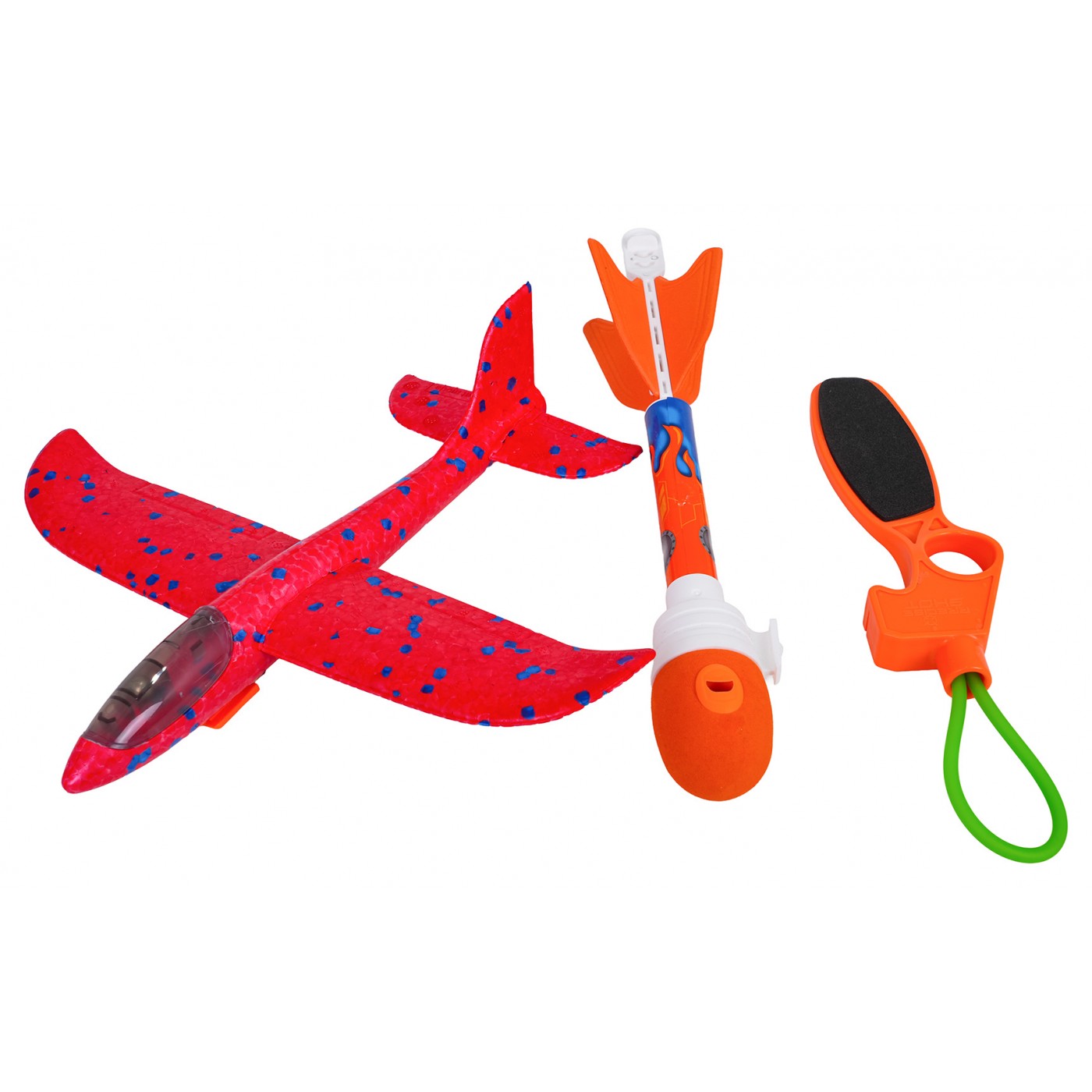 Perfektná vonkajšia hracia sada: ľahké, aerodynamicky tvarované lietadlo, prak a raketa pre deti od troch rokov. Lietadlo je vyrobené z ľahkého polystyrénu, je odolné a vďaka svojej ľahkosti dokáže po štarte letieť 20 až 60 metrov. Raketa má gumenú špičku pre väčšiu bezpečnosť. Sada obsahuje prak s gumičkou. Gumičku jednoducho pripevnite k lietadlu alebo rakete a vypustite ich na veľkú vzdialenosť. Skvelá zábava je zaručená. Sada nemá ostré hrany, ľahko sa používa a je bezpečná pre deti. Raketa je napájaná batériami (súčasťou balenia). Keď zasiahne cieľ, jej telo sa rozsvieti farbami. Vrchná časť rakety má aj píšťalku.