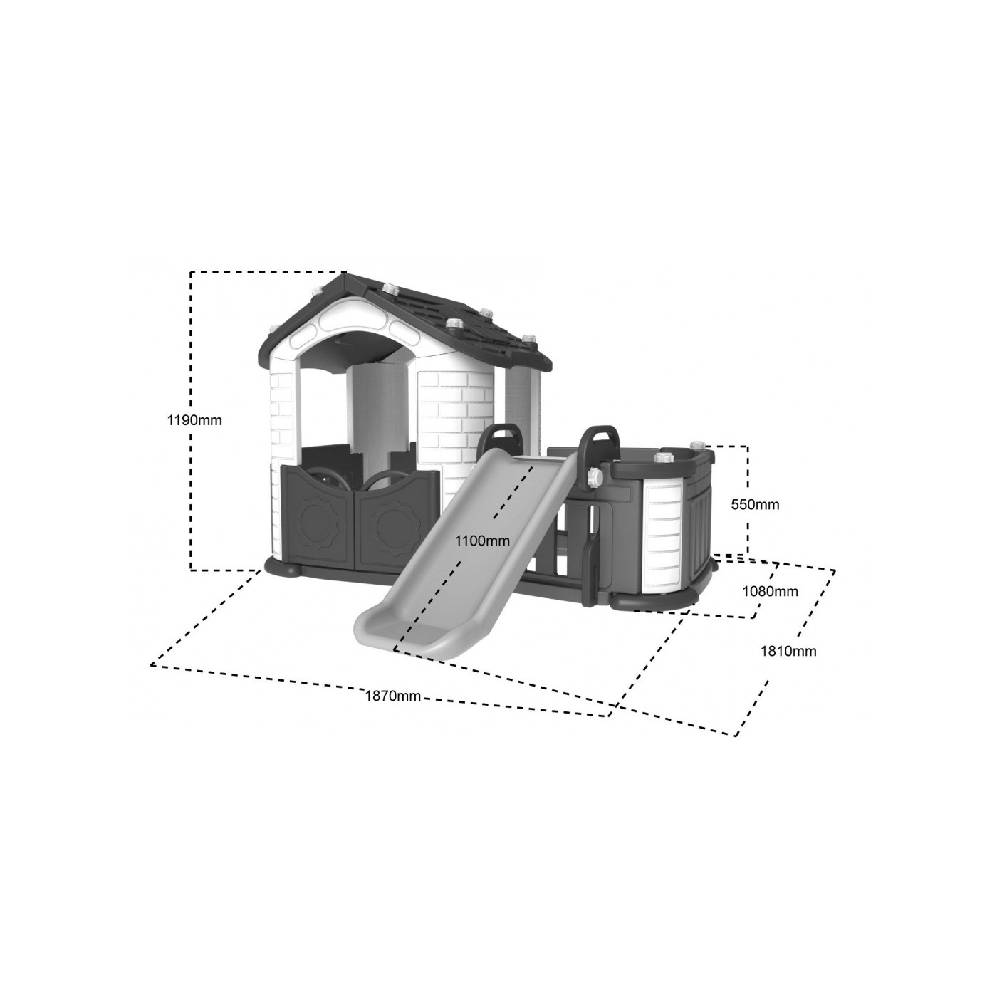 | Specyfikacja | Domek ogrodowy ze zjeżdżalnią i ogródkiem [ZOG.CHD-803] |