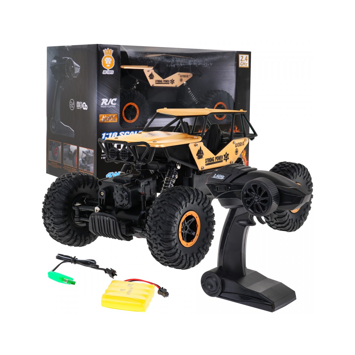 | | Terenowy pojazd wykonany w skali 1:18, z napędem na 4 koła to propozycja dla dzieci od 6-go roku życia. Pojazd posiada duże gumowe opony i amortyzatory, poradzi sobie nawet w ciężkim terenie. Konstrukcja pojazdu jest antykolizyjna, odporna na wstrząsy i upadki oraz sprawia, że samochód ma lepsze osiągi podczas jazdy. Zabawka sterowana jest pilotem na falach 2,4 GHz. Zasilanieakumulatorem 4,8V 700 mAh (w zestawie)- samochód oraz 3 x AA(brak w zestawie) – pilot. |
