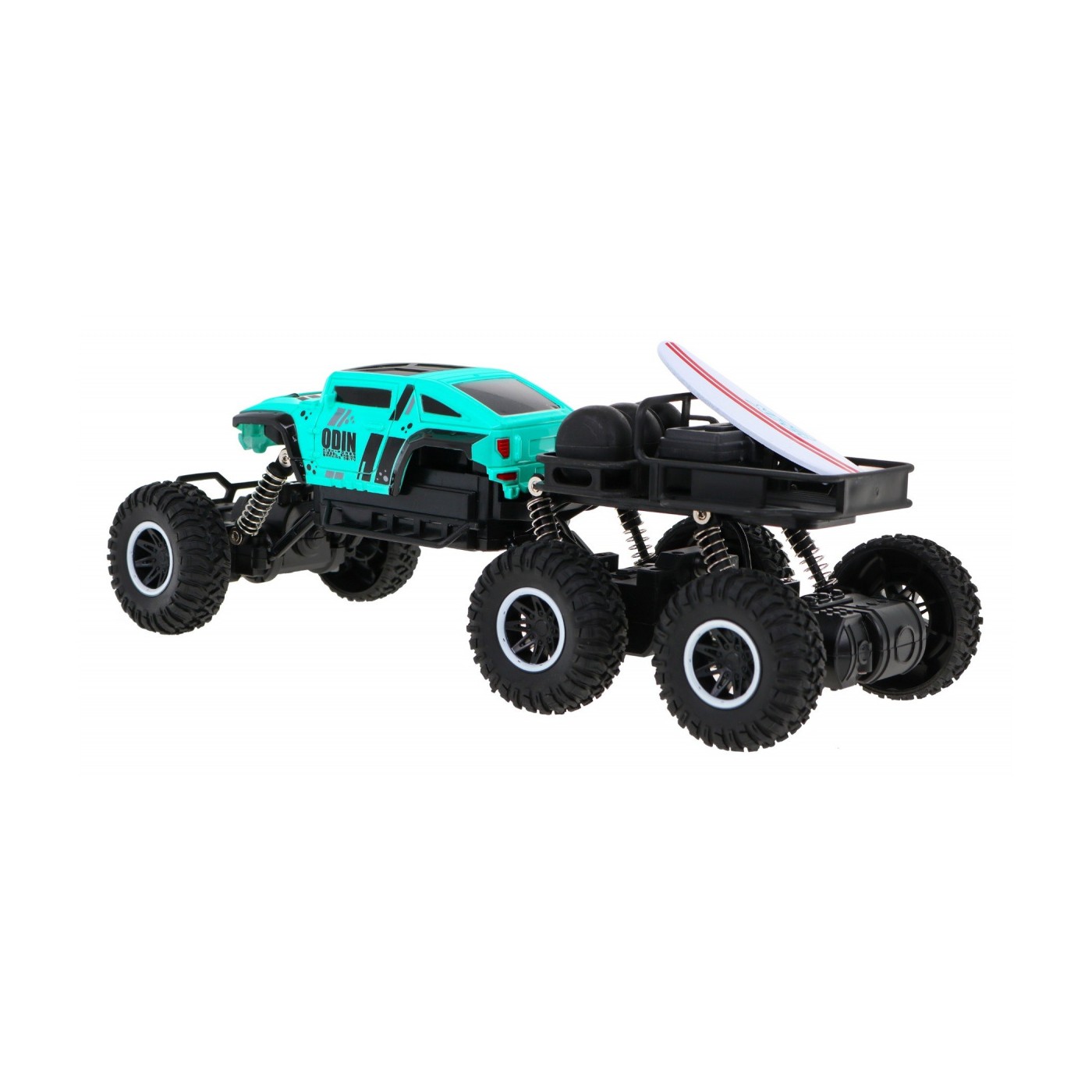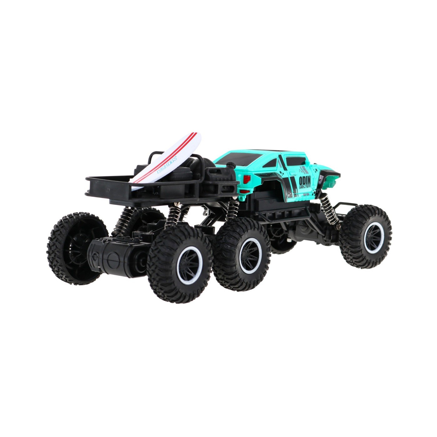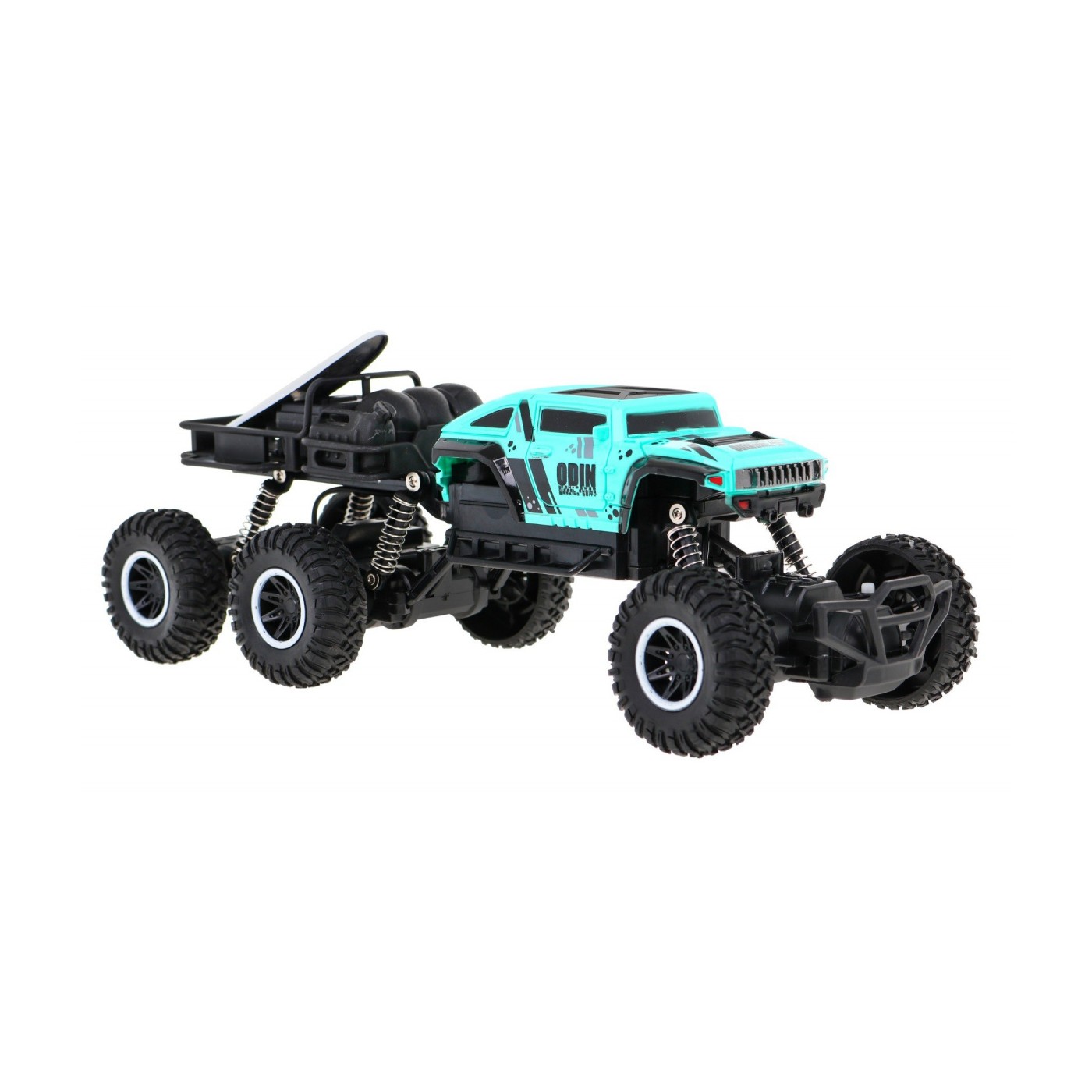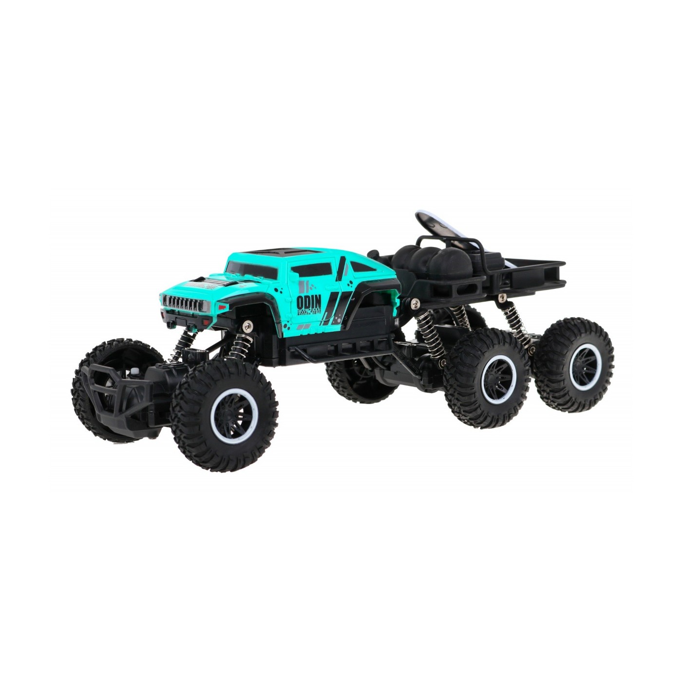 | - jazda w przód i tył, - skręt w prawo i lewo, - podwozie wykonane ze wzmocnionego plastiku, - elektryczny napęd (zasilany bateriami) - napęd na 4 koła, - duże gumowe opony, - amortyzowane zawieszenie na każde koło, - regulacja skrętu kół, - zderzak amortyzujący uderzenia, - częstotliwość pracy 2,4GHz. | |