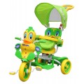 Detský bicykel Green Duck s 3 kolesami + zvuky + strecha + zábrana + opierka na nohy + rukoväť + úložný priestor