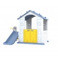Dom so šmykľavkou a umývadlom modrá strecha |