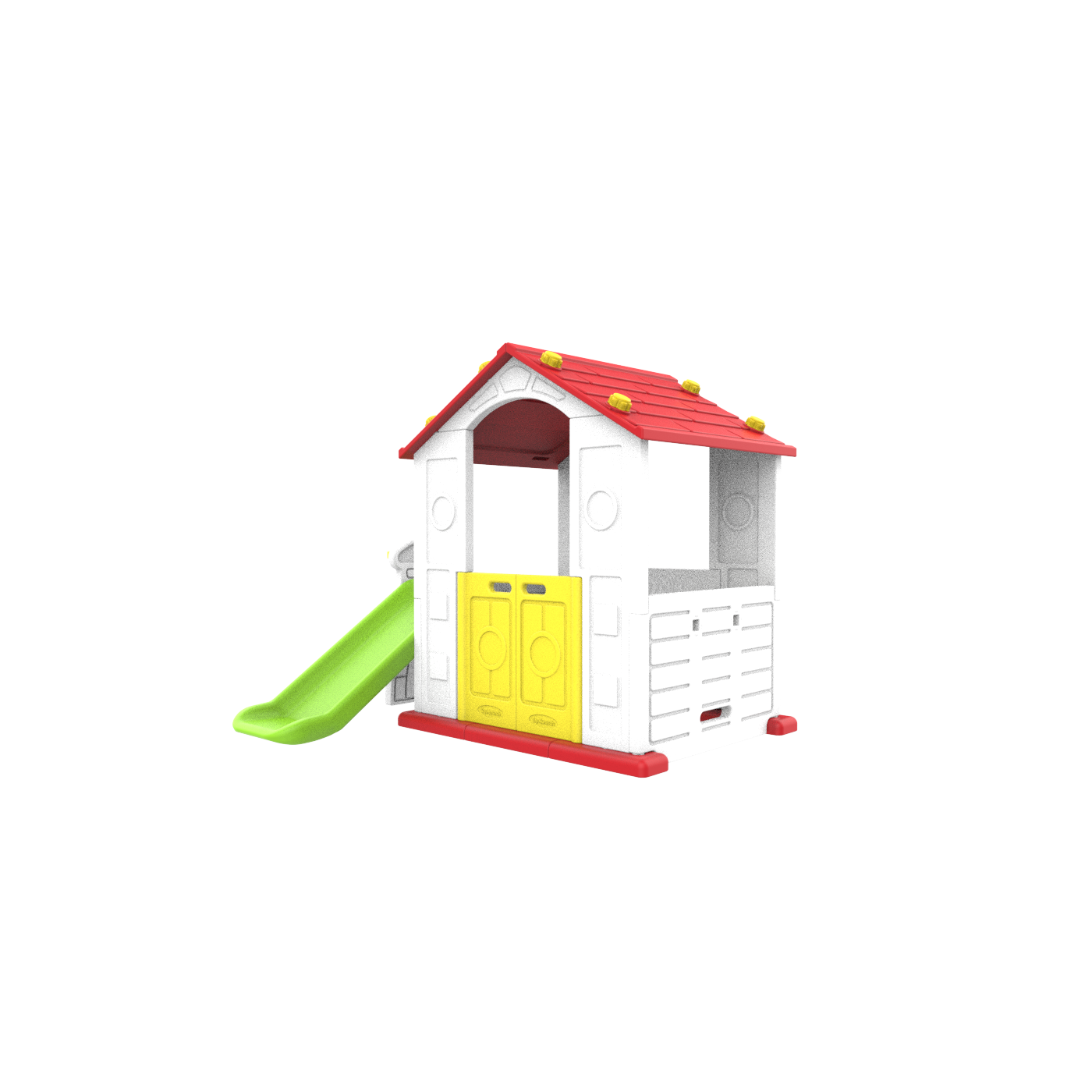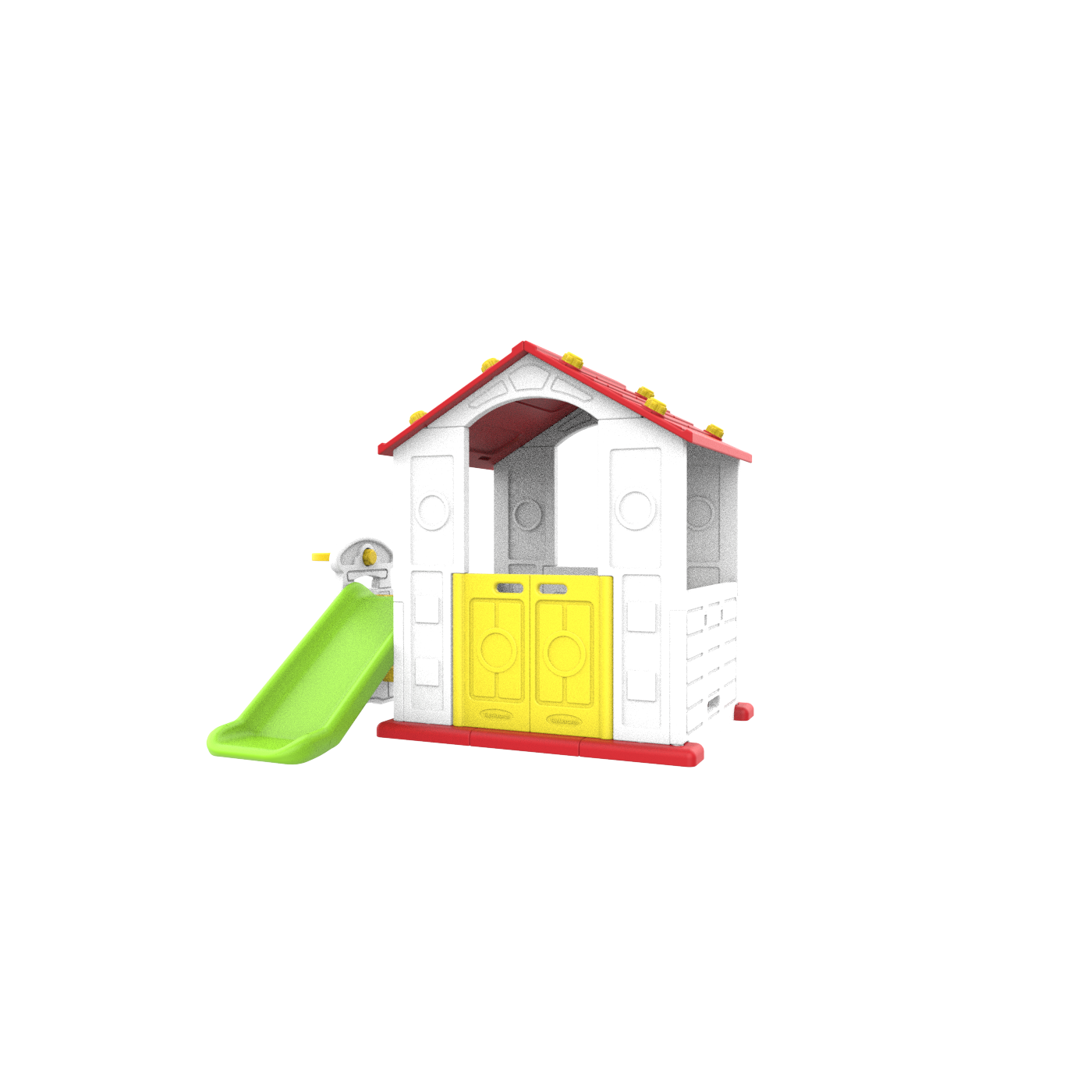 | Wszystkie elementy domku wykonane są z wysokiej jakości materiału HDPE. Jest to polietylen o dużej gęstości, wynoszącej od 0,942 do 0,965 g/cm3. HDPE jest materiałem bardziej elastycznym i odpornym na uszkodzenia mechaniczne w porównaniu z materiałami wykorzystywanymi w innych tego typu konstrukcjach. Wszystkie ścianki jak i elementy składowe wykonane są z podwójnej warstwy plastiku. Daje to dodatkowo możliwość wypełnienia ścianek wkładem typu piasek, kruszywo zapewniając stabilność konstrukcji. Duże elementy składowe ułatwiają montaż. |