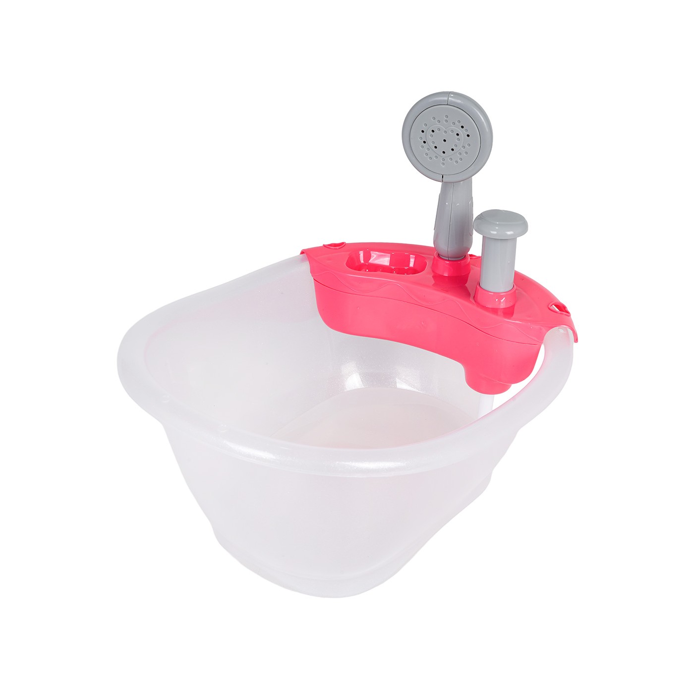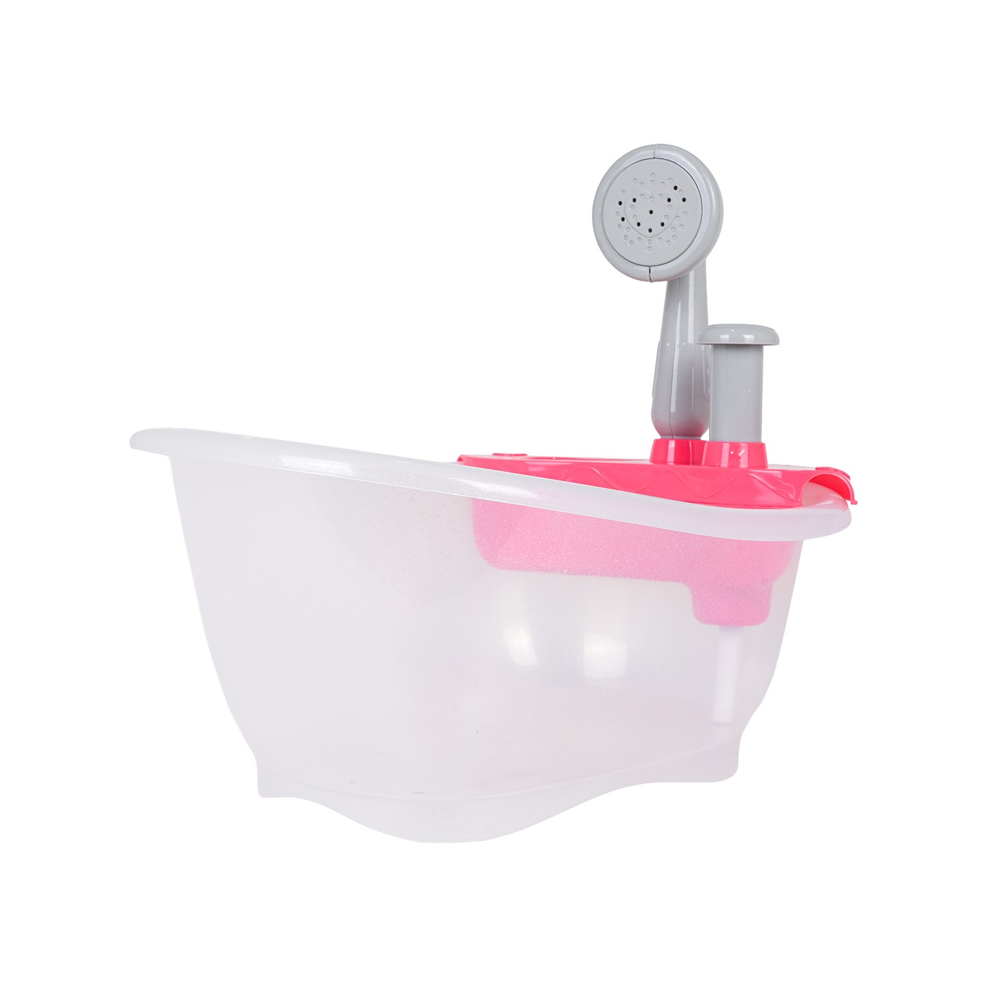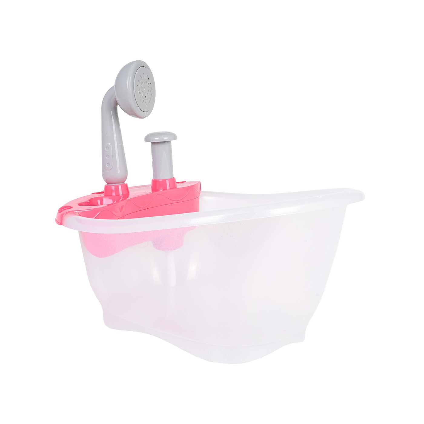 Táto vaňa pre bábiky so sprchou je hračka pre deti od troch rokov. Naplňte vaňu vodou a stlačte pumpičku, aby ste vodu rozstrekli. Súprava je vyrobená z materiálov bezpečných pre deti.