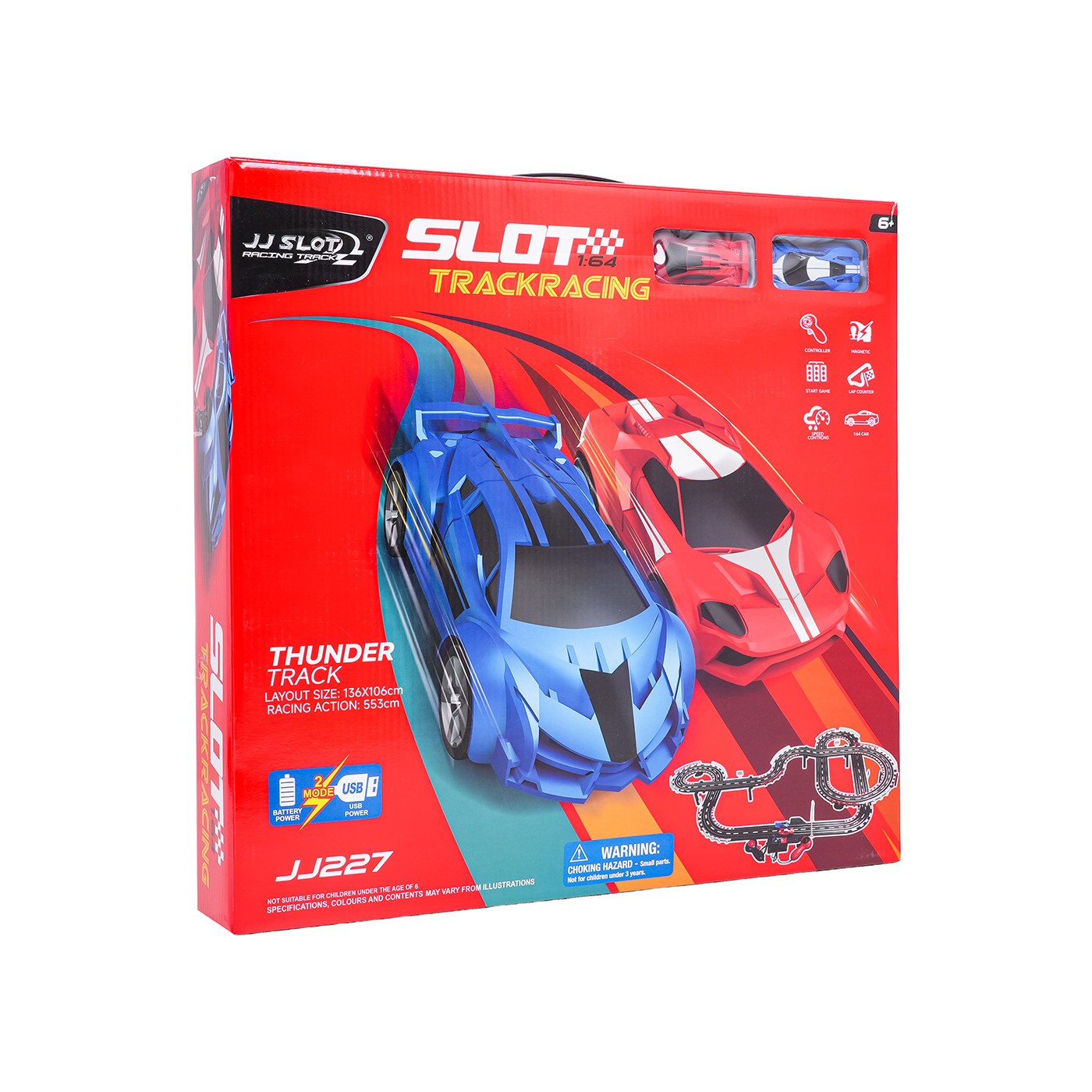 Pretekárska dráha Track Sport je určená pre deti od šiestich rokov. Je vyrobená z najkvalitnejších a odolných materiálov a môže byť napájaná batériami alebo zapojená do zdroja elektrickej energie. Celková dĺžka dráhy je 553 cm. Dráha má tri úrovne a zahŕňa rovné úseky aj ostré zákruty. Ostré zákruty sú tiež vybavené zábranami, ktoré zabraňujú pádu vozidla z dráhy. Sada obsahuje dve vozidlá a dva diaľkové ovládače. Priestor na batérie pojme 4 x 1,5 V AA batérie (nie sú súčasťou balenia).