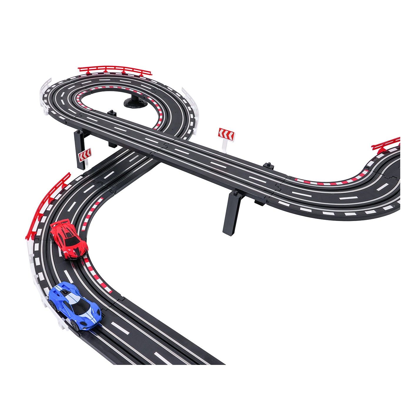 Funkcie sady - vhodné pre deti staršie ako šesť rokov, - vyrobené z ľahkých materiálov, - trať je trojúrovňová a obsahuje rovné úseky, zákruty a špirály, - dráha sa dá pripojiť k zdroju napájania alebo napájať z batérií, - vozidlá vyrobené v mierke 1:64. |