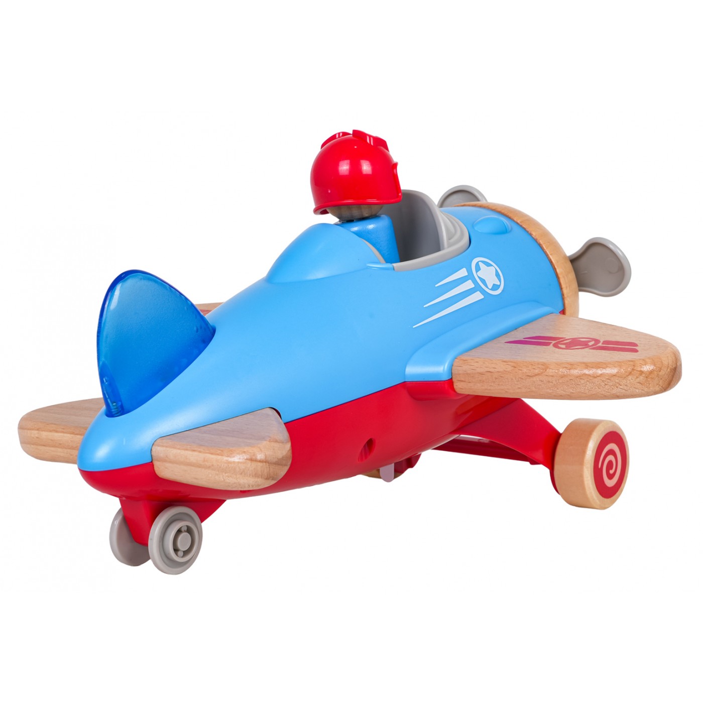 Interaktívne lietadlo so zvukovými a svetelnými funkciami pre deti od osemnástich mesiacov. Lietadlo je vyrobené z najkvalitnejších materiálov: dreva a plastu. Sýte farby priťahujú pozornosť detí a povzbudzujú k hre. Lietadlo má podsvietenie a zvukovú funkciu, ktorá po stlačení figúrky pilota prehráva melódiu a zvuky pripomínajúce vzlet lietadla. Hračka je napájaná 3 batériami AG13 (súčasťou balenia). Vlastnosti: - hračka pre deti od osemnástich mesiacov, - vyrobené z najkvalitnejších materiálov: dreva a plastu, - bezpečné, bez ostrých koncov, - zvukové efekty: melódie, zvuky vzlietajúceho lietadla, - svetelné efekty: osvetlené krídlo v zadnej časti lietadla, - pohyblivé kolesá, - pohyblivé predné vrtule lietadla. |