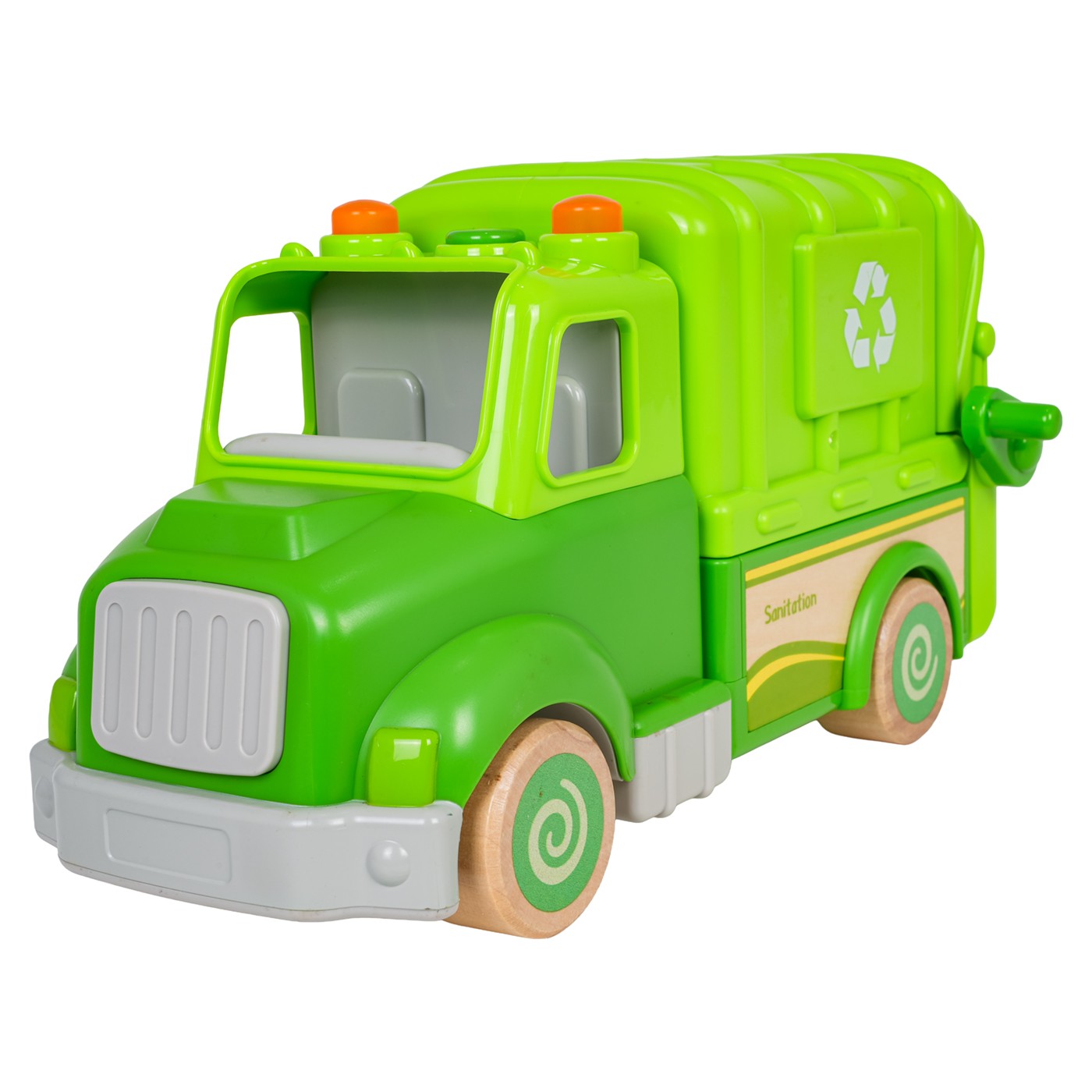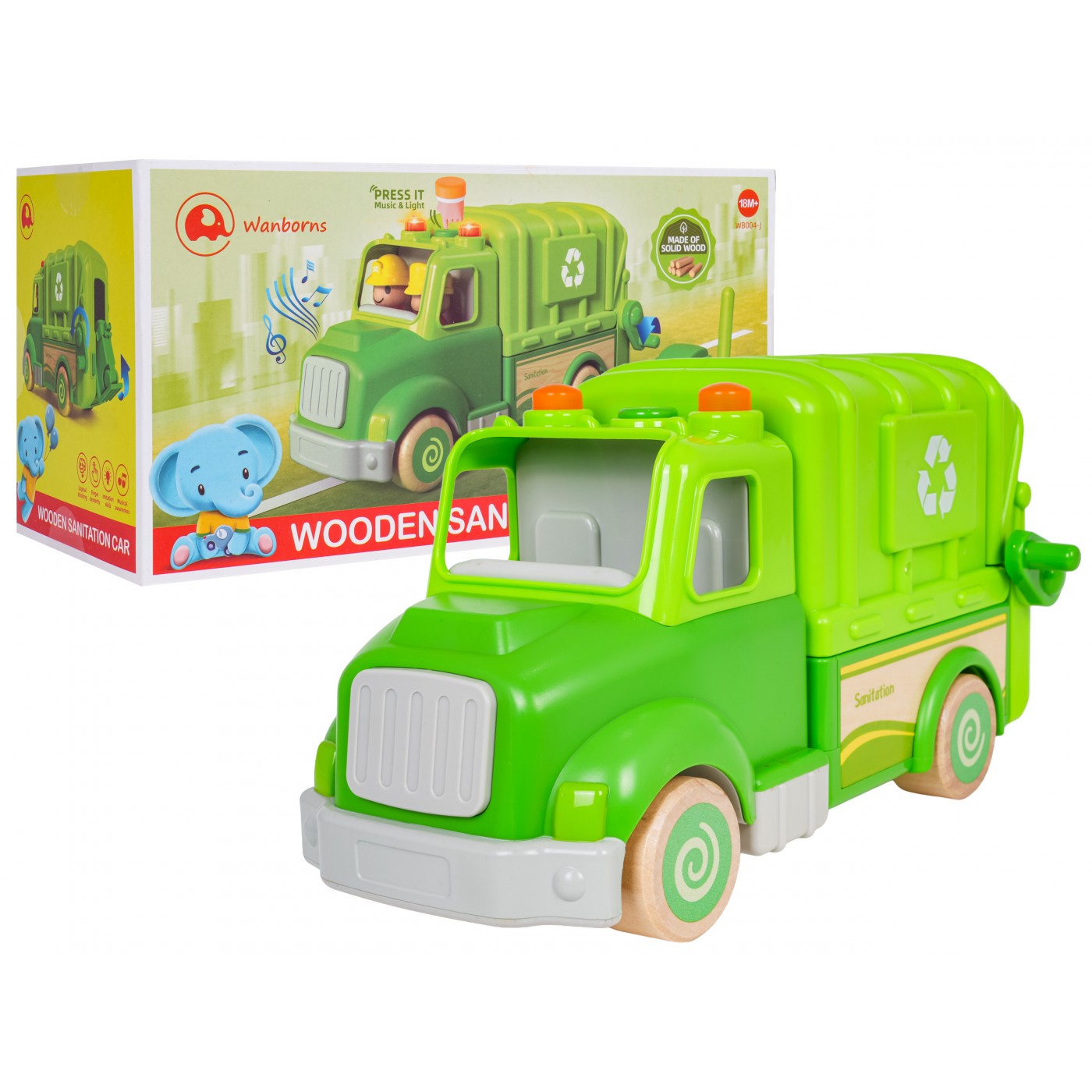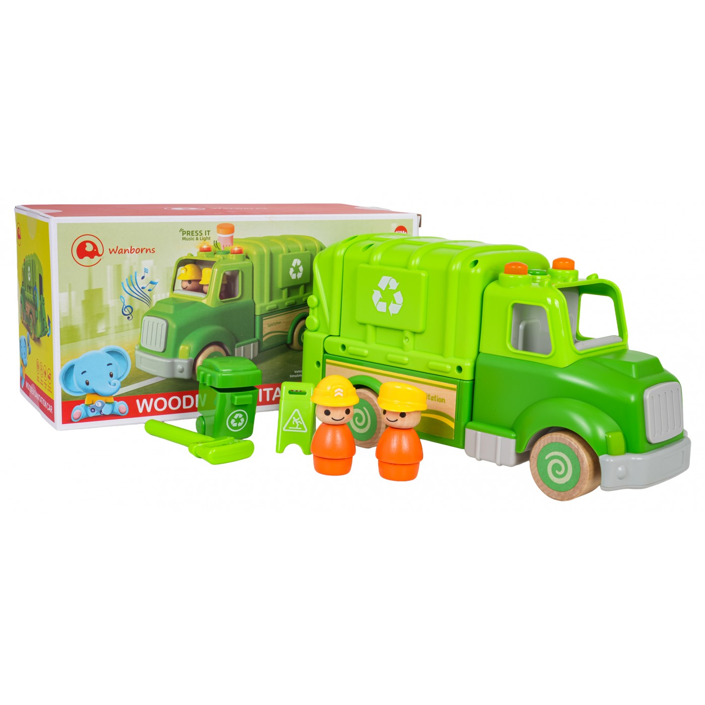 Interaktívne smetiarske auto so zvukovými a svetelnými funkciami pre deti od osemnástich mesiacov. Hračka je vyrobená z najkvalitnejších materiálov: dreva a plastu. Nemá žiadne ostré hrany. Smetiarske auto má funkčný zdvíhací mechanizmus na smetiaky (kľuku) a funkciu vyprázdňovania. Tlačidlo na streche smetiarskeho auta aktivuje melódie a blikajúce svetelné efekty. Sada obsahuje dve figúrky, smetiak, zametač a výstražnú tabuľu. Hračka je napájaná 3 batériami AG13 (súčasťou balenia). Vlastnosti: - hračka pre deti od troch rokov, - vyrobené z vysoko kvalitných materiálov, plastu a dreva, - pohyblivé drevené kolesá, - funkcia zdvíhania odpadkového koša a vysypávania odpadu (manuálne), - odpadkový kôš, ktorý sa dá otvárať, zatvárať a zdvíhať hore a dole, - príslušenstvo je súčasťou balenia, - zvukové efekty: melódie, zvuky štartovania vozidla, zvuky jazdy, klaksón, - svetelné efekty: blikajúce svetlá, - háčik na sťahovanie šnúrky. |