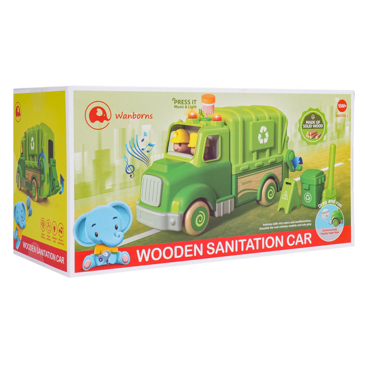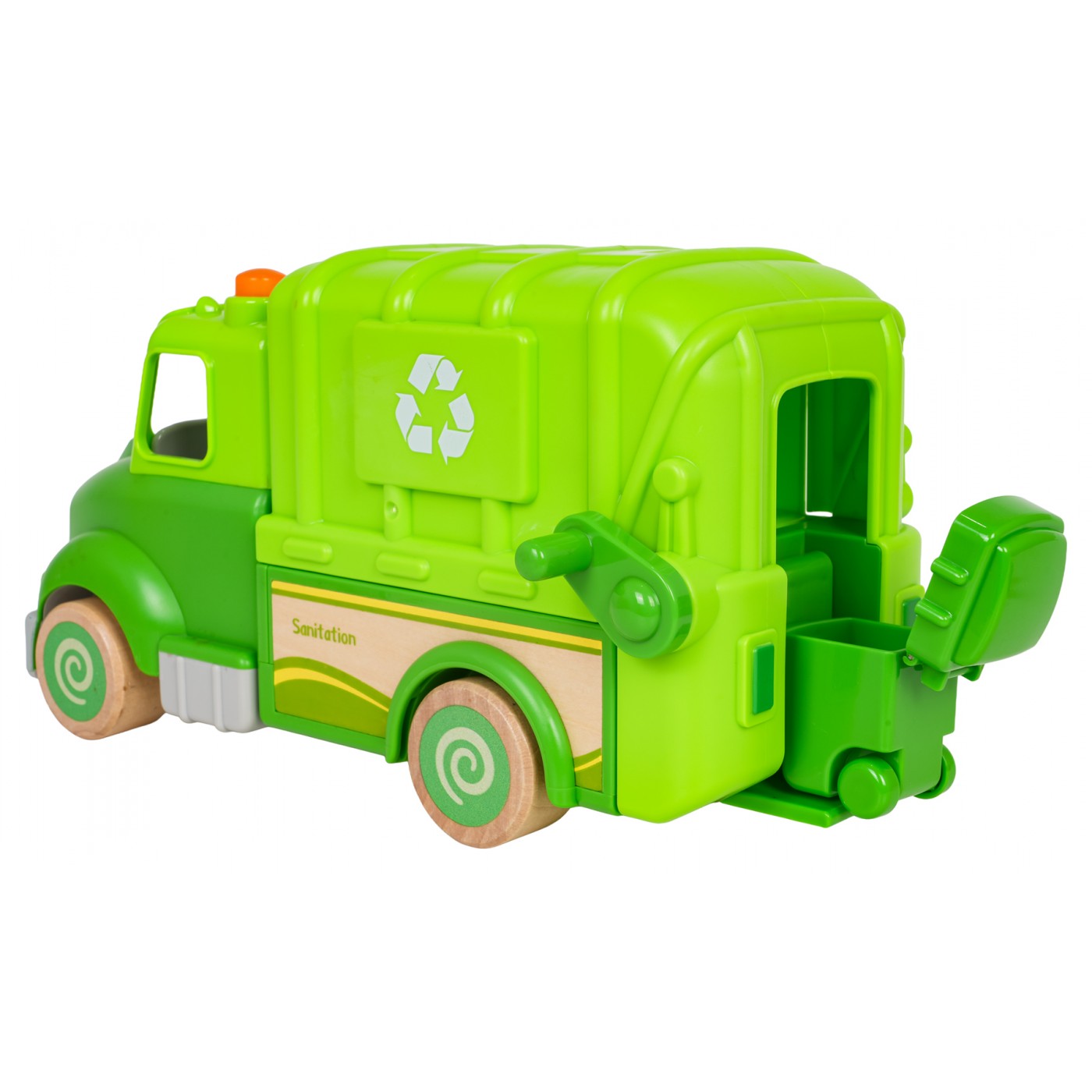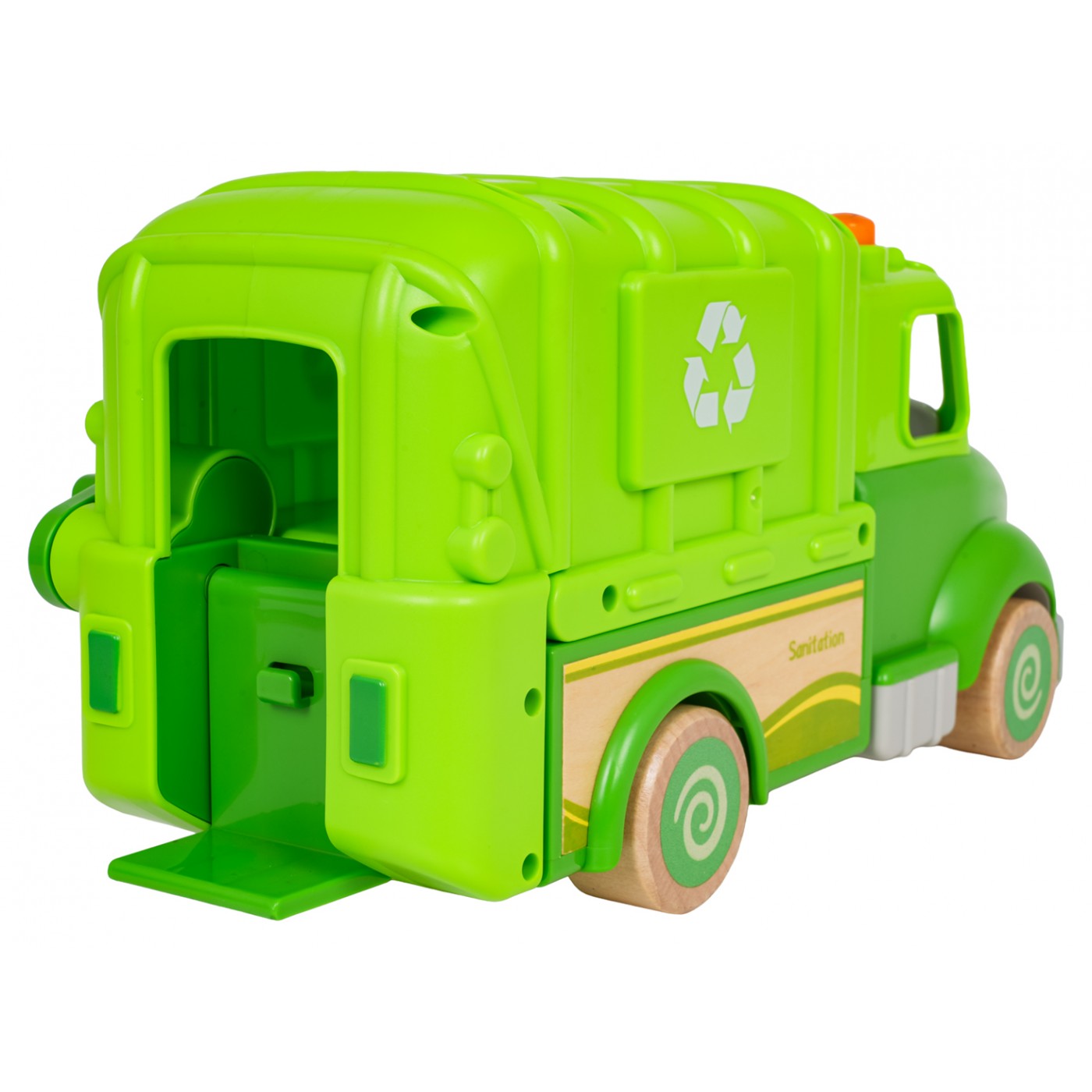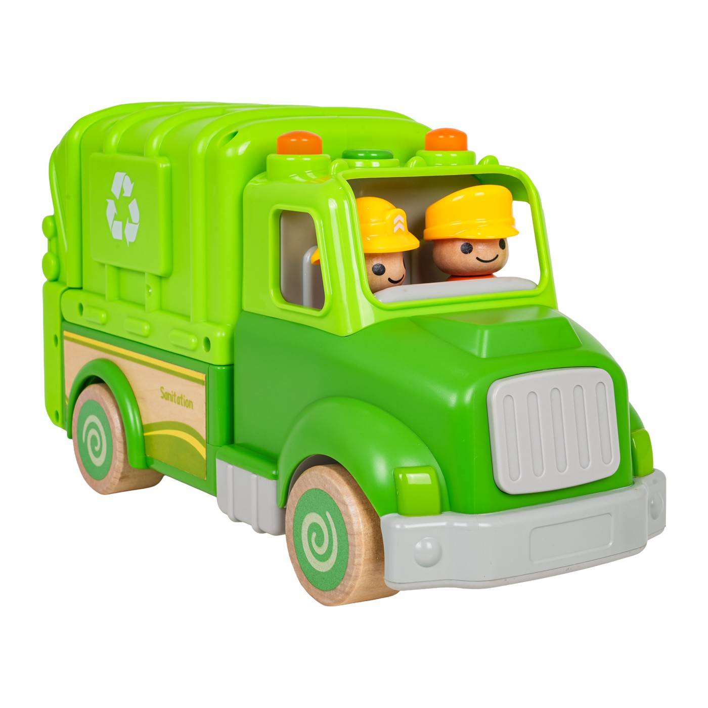 Interaktívne smetiarske auto so zvukovými a svetelnými funkciami pre deti od osemnástich mesiacov. Hračka je vyrobená z najkvalitnejších materiálov: dreva a plastu. Nemá žiadne ostré hrany. Smetiarske auto má funkčný zdvíhací mechanizmus na smetiaky (kľuku) a funkciu vyprázdňovania. Tlačidlo na streche smetiarskeho auta aktivuje melódie a blikajúce svetelné efekty. Sada obsahuje dve figúrky, smetiak, zametač a výstražnú tabuľu. Hračka je napájaná 3 batériami AG13 (súčasťou balenia). Vlastnosti: - hračka pre deti od troch rokov, - vyrobené z vysoko kvalitných materiálov, plastu a dreva, - pohyblivé drevené kolesá, - funkcia zdvíhania odpadkového koša a vysypávania odpadu (manuálne), - odpadkový kôš, ktorý sa dá otvárať, zatvárať a zdvíhať hore a dole, - príslušenstvo je súčasťou balenia, - zvukové efekty: melódie, zvuky štartovania vozidla, zvuky jazdy, klaksón, - svetelné efekty: blikajúce svetlá, - háčik na sťahovanie šnúrky. |