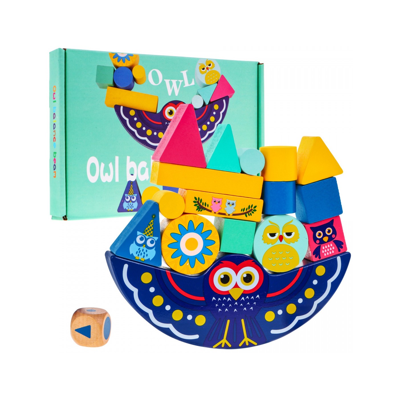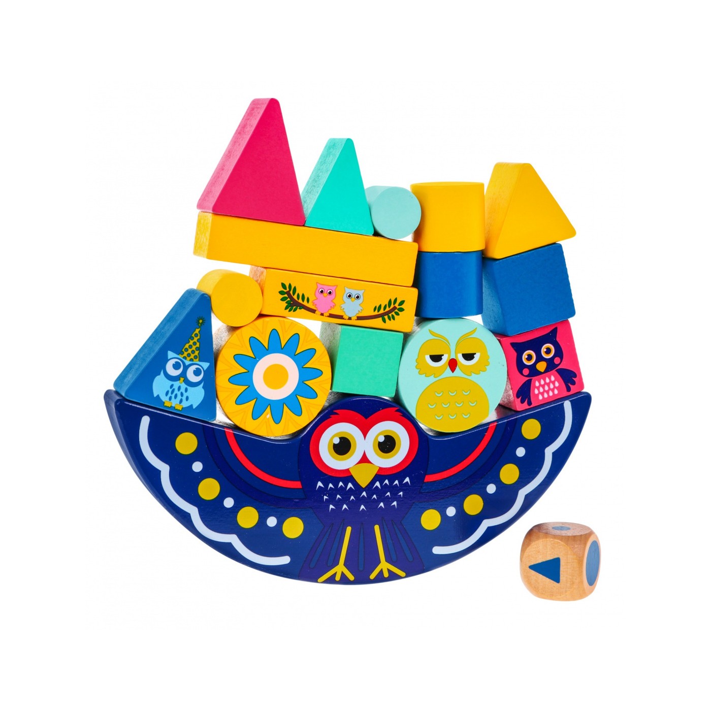 | | Gra zręcznościowa przeznaczona dla dzieci już od 3-go roku życia. Rozwija cierpliwość, koncentrację, zdolność logicznego myślenia, zdolności manualne, zręczność, ćwiczy koordynację wzrokowo-ruchową. Wykonana została w całości z drewna, pomalowana bezpiecznymi, nietoksycznymi farbami w żywych kolorach które przyciągają uwagę maluszka i zachęcają do zabawy. Zabawa polega na układaniu drewnianych elementów na balansującej podstawce w kształcie sowy. Zawodnik rzuca kostką a następnie zgodnie z wylosowanymi elementami układa je na podstawce. Wygrywa ten, któremu uda się umieścić na podstawie najwięcej elementów a konstrukcja nie ulegnie zniszczeniu. |